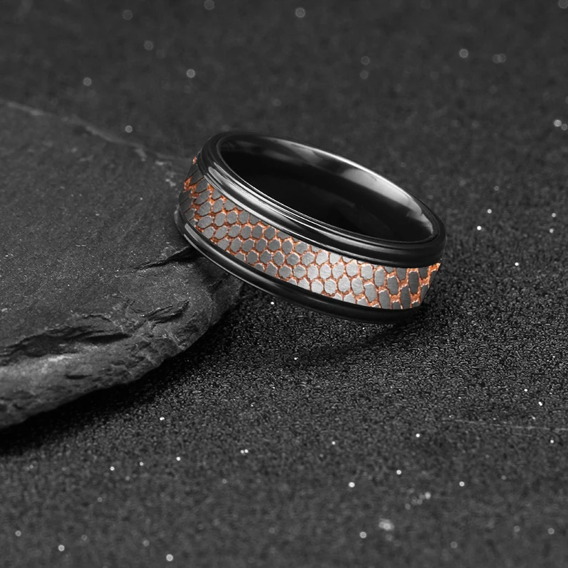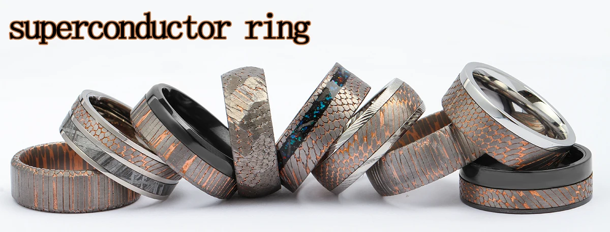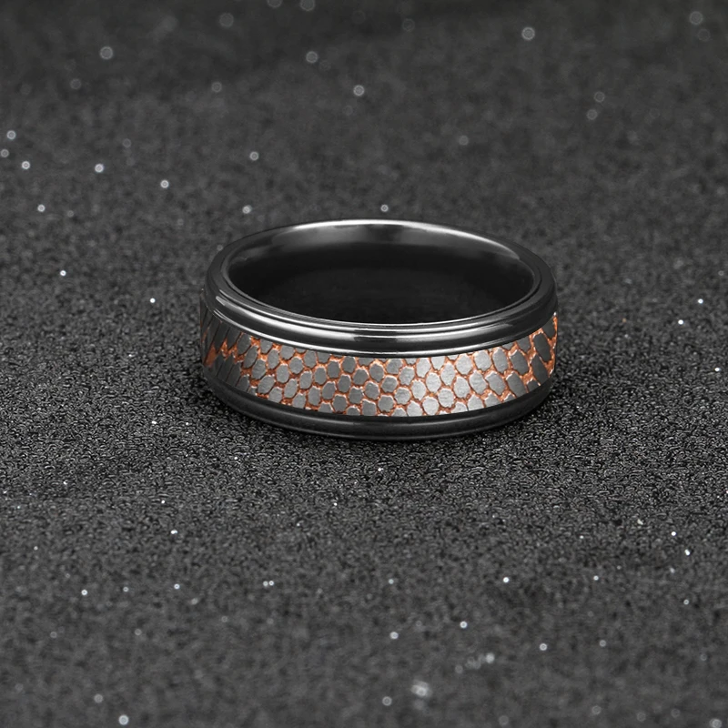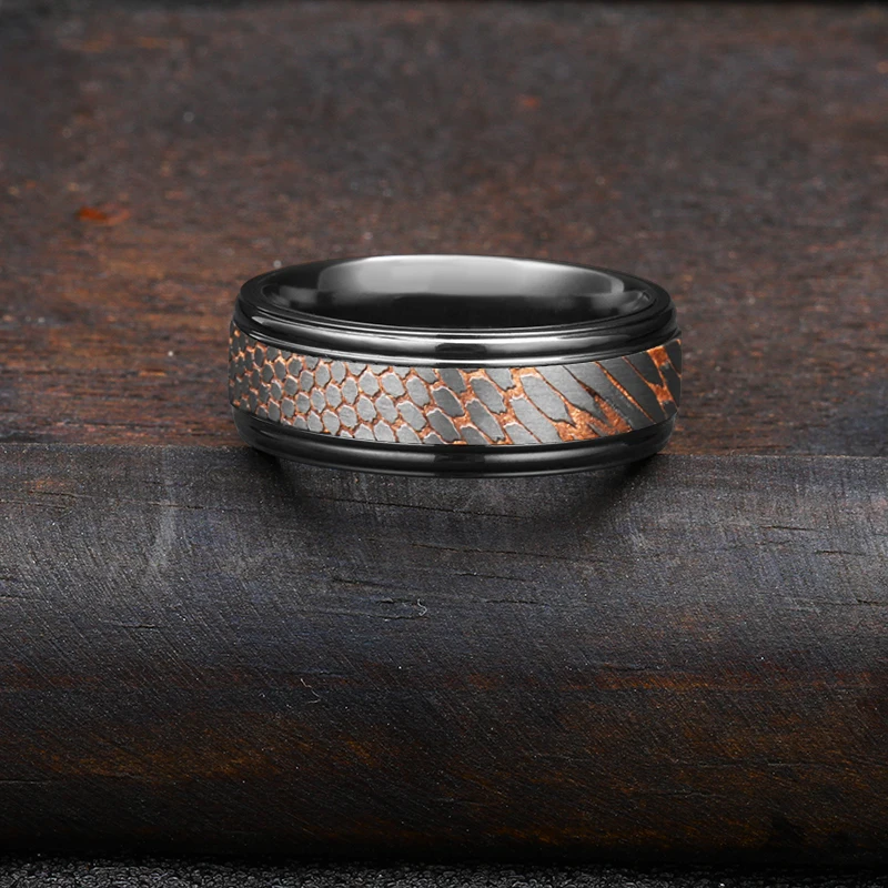 8mm Comfort Fit Alternative Metal Ring Etched Custom Made Titanium-Niobium and Copper Band Superconductor Black Zirconium Ring