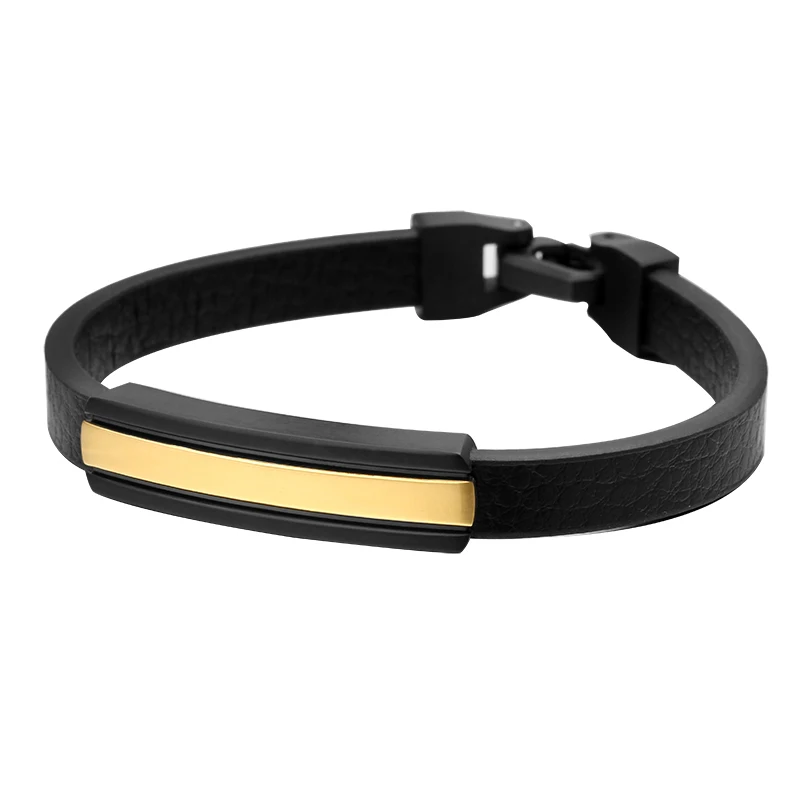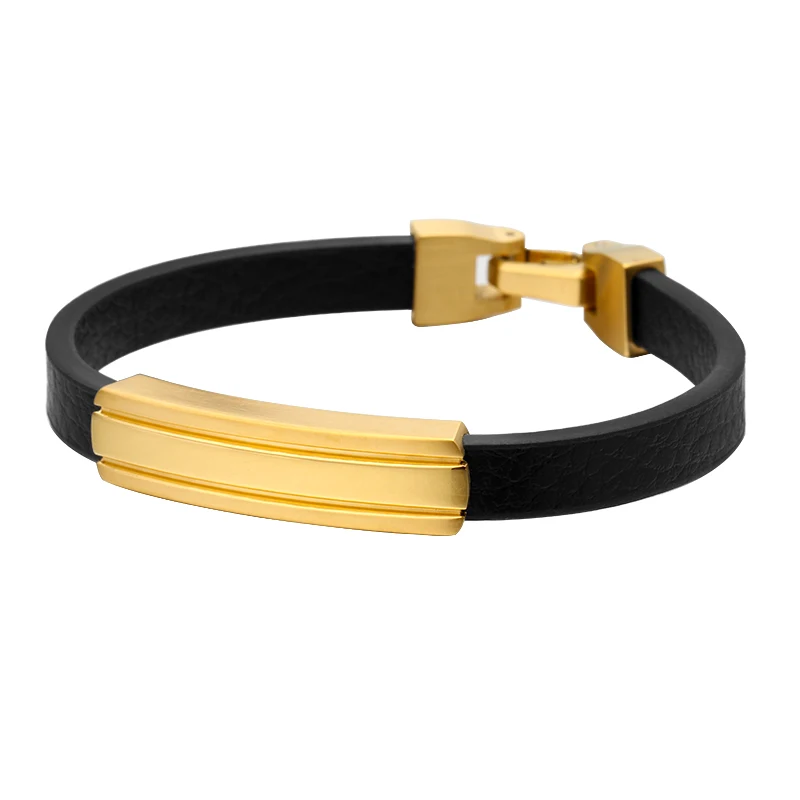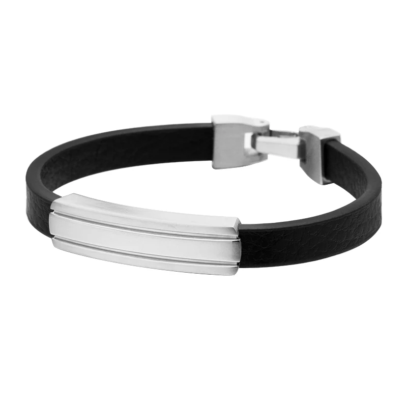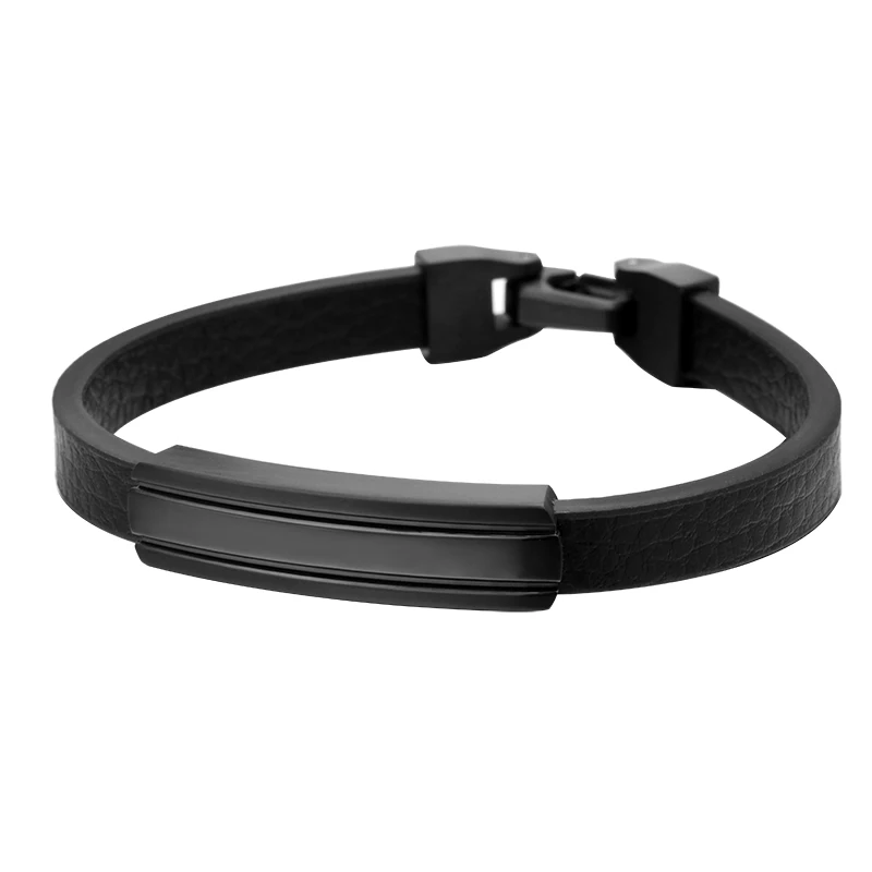 Wholesale Custom Engraving Design Stainless Steel Men's Leather Charm Bracelet Jewelry