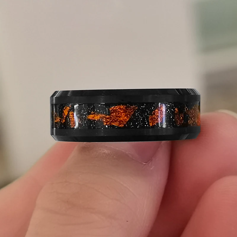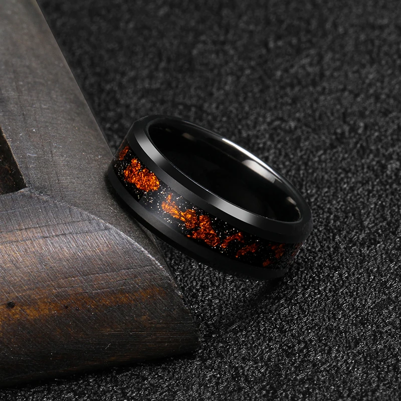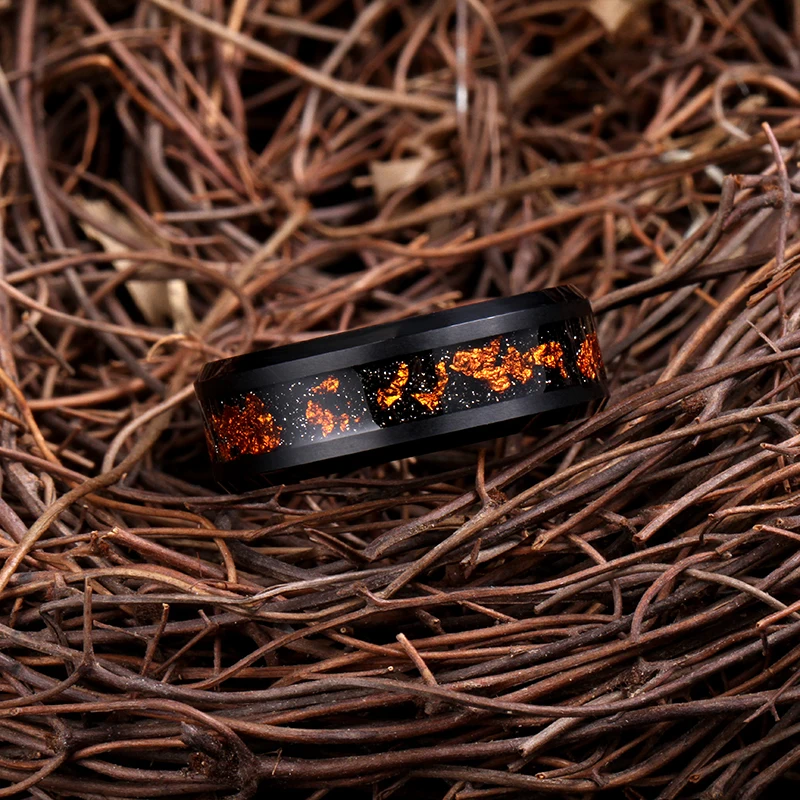 Gold Foils Black Sandstone Tungsten Wedding Ring Bevel Edges Black Zirconium Eternity Tizti Rings