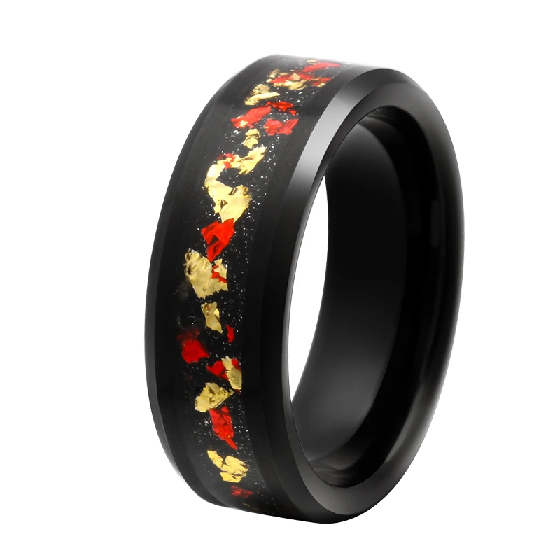 Men's Dome Black Galaxy Ring Nebula Red & Purple Fire Opal Tungsten Wedding & Engagement Promise Bands
