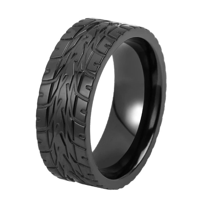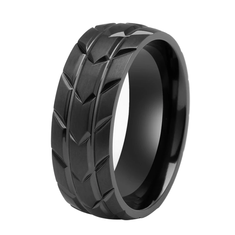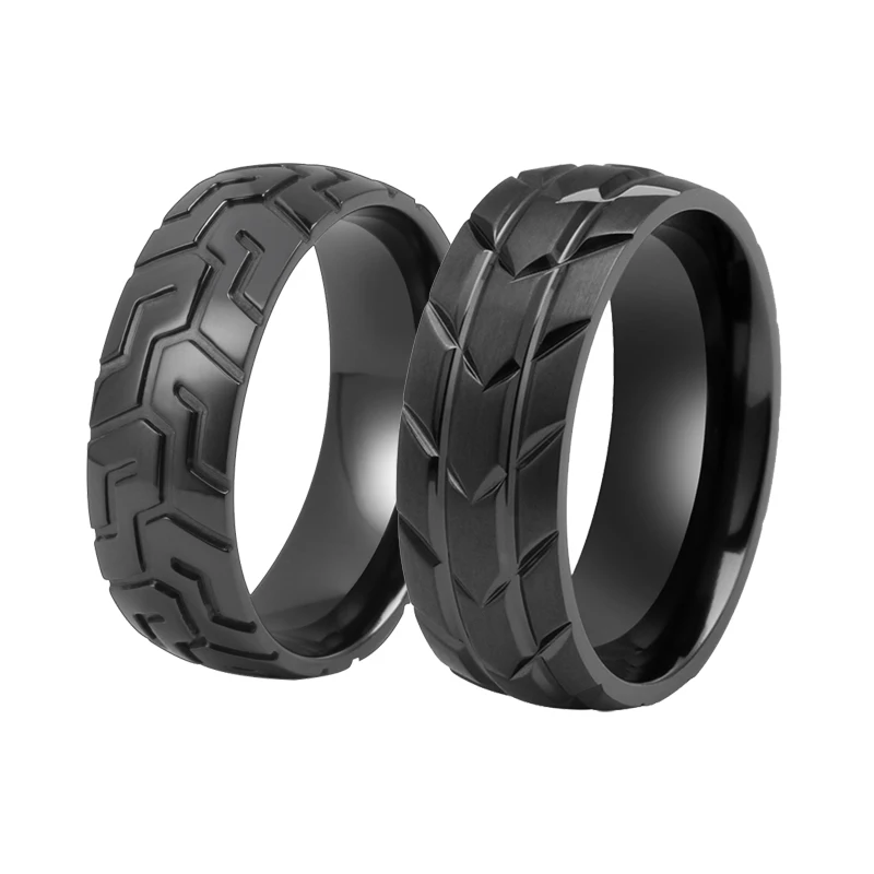 Titanium Rings for Men Distressed Black Zirconium Wedding Band Car/Motorcycle Tire Tread Ring