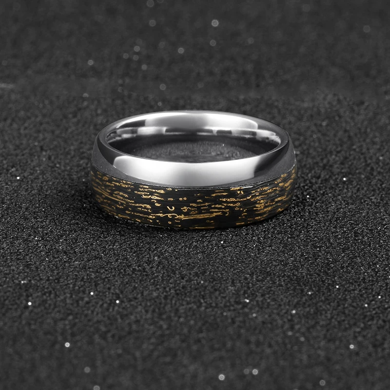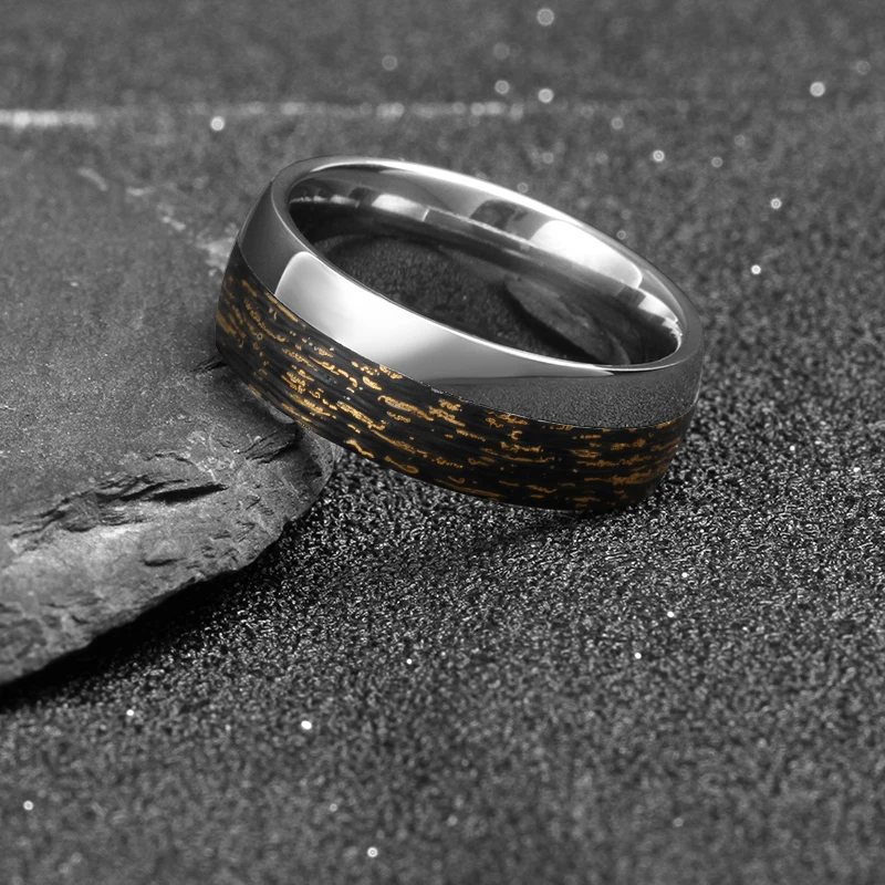8mm Contemporary Unique Dome Carbon Fiber Wedding Band with Red Copper Mixed Center Tungsten Ring
