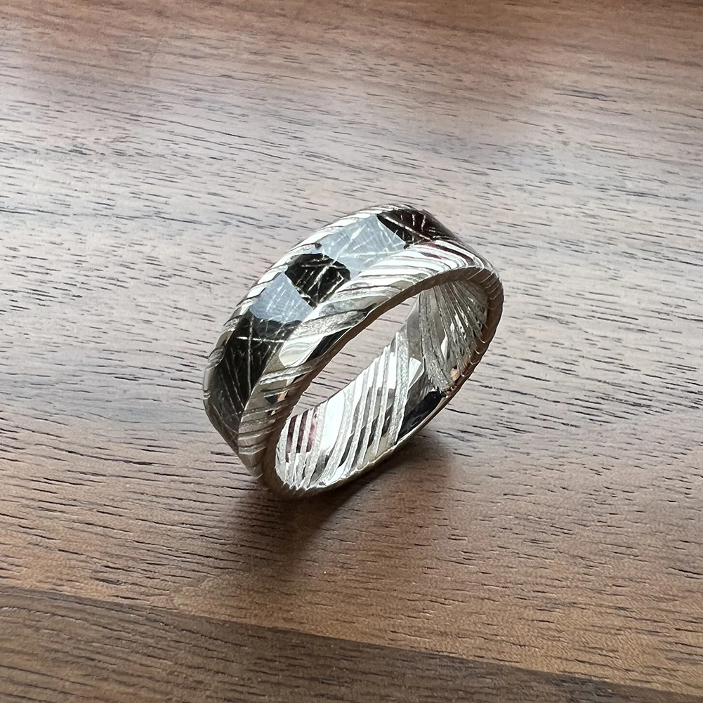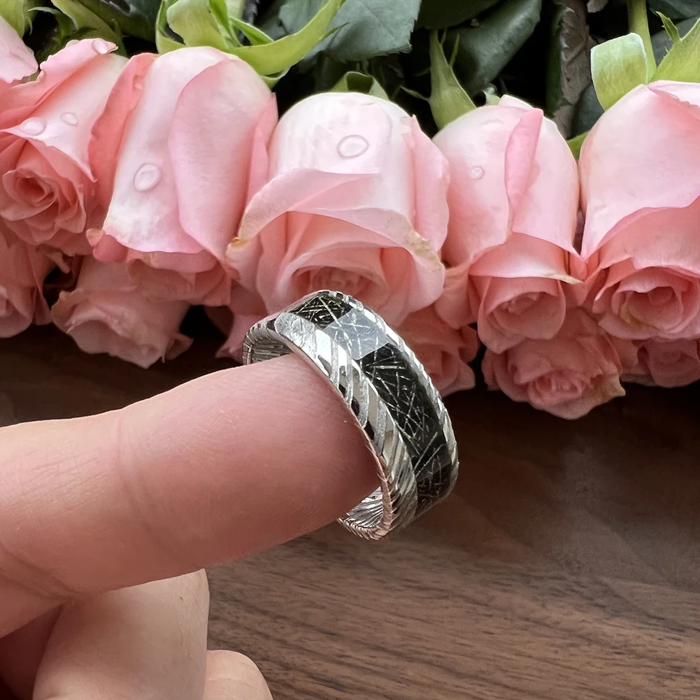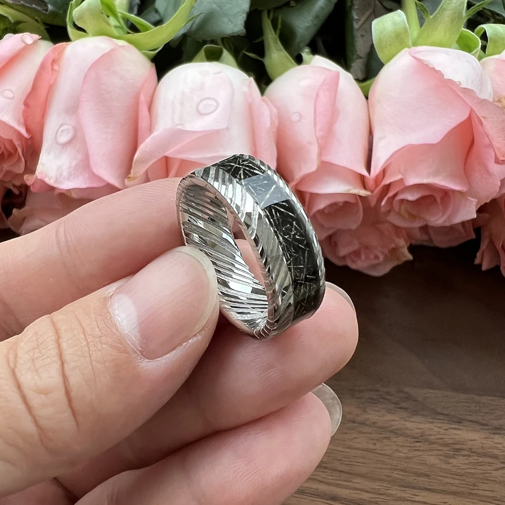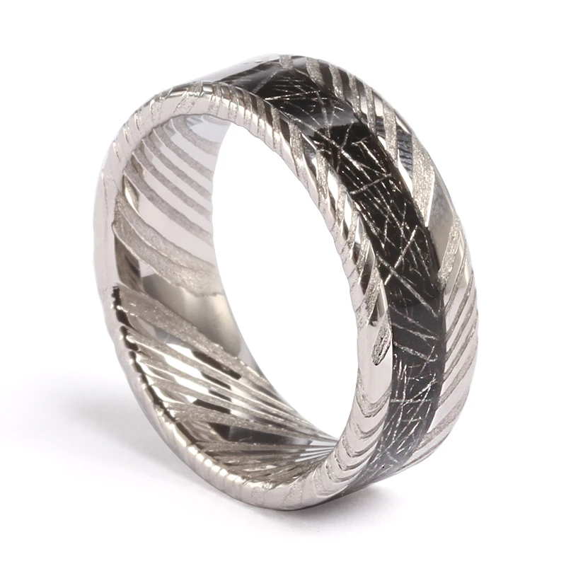 48-Layer Unique Etched Pattern Fashion Style Stainless Damascus Wedding Band Titanium Meteorite Ring Men's Fashion Jewelry