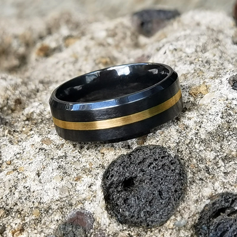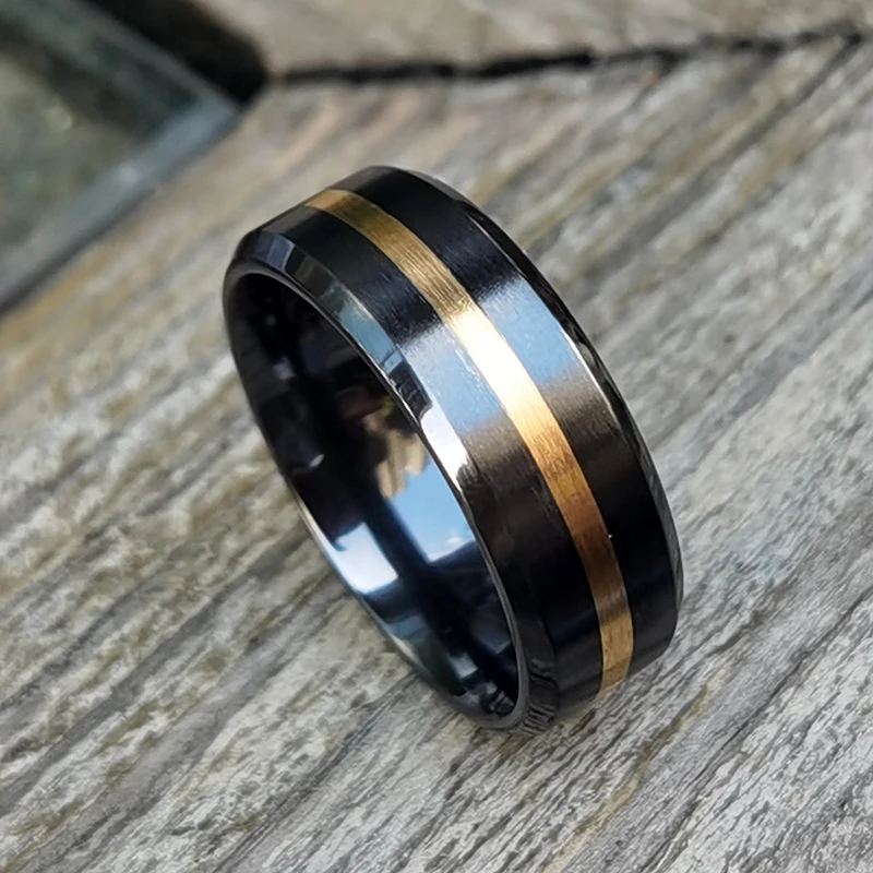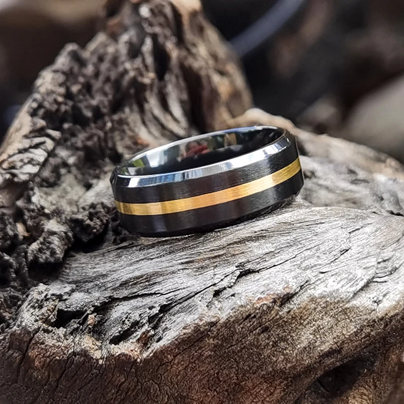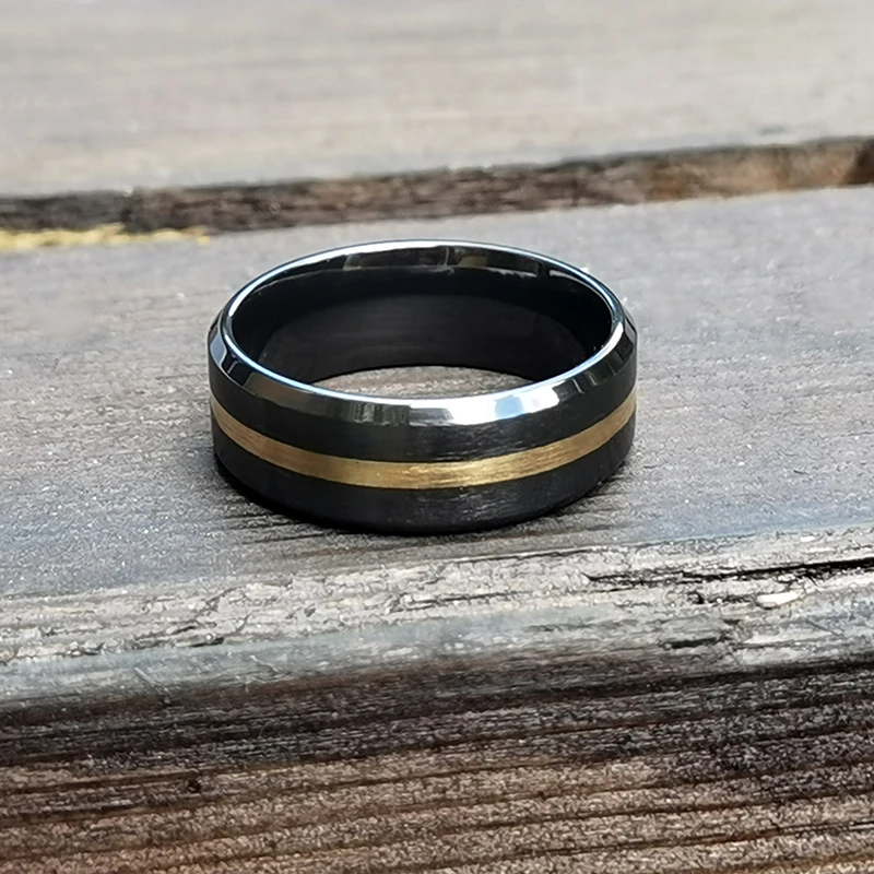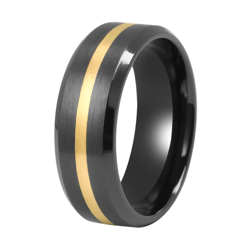 8mm Men's Brushed Center Fashion Jewelry Two-Tone Tungsten Ring 14K Real Gold Black Ceramic Zirconium Wedding Band