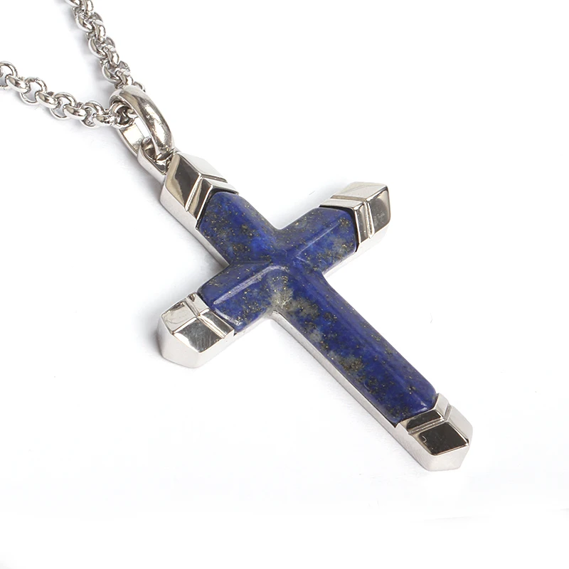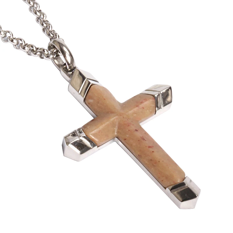 18K Yellow Gold Plated Tiger Eye Black Onyx Gemstone Pendant Necklace Men Stainless Steel Cross Pendant