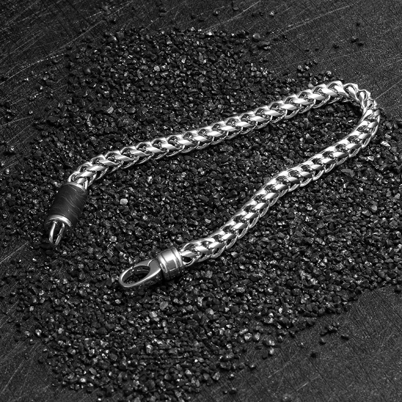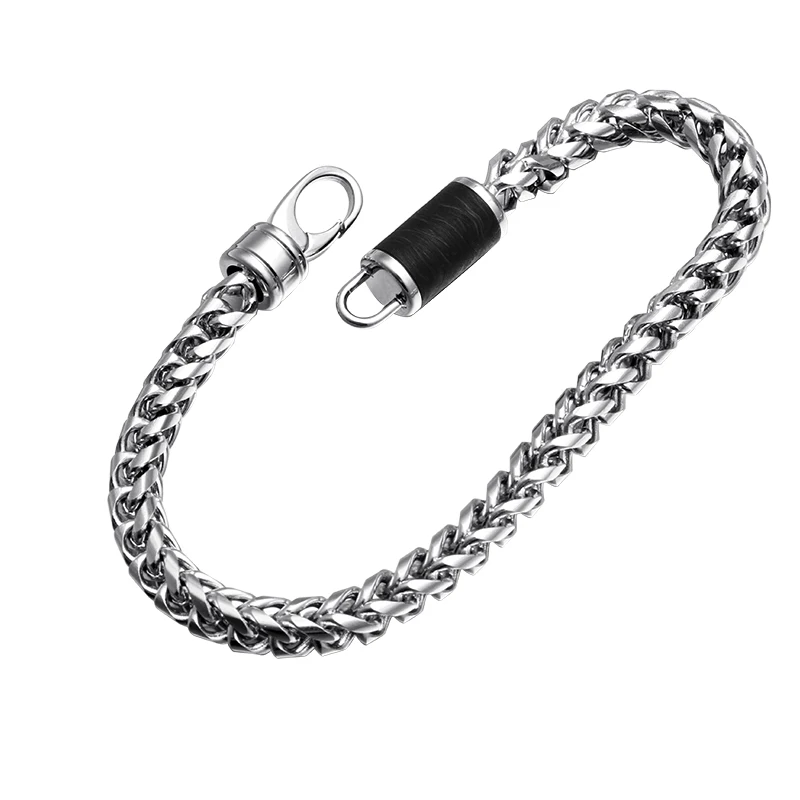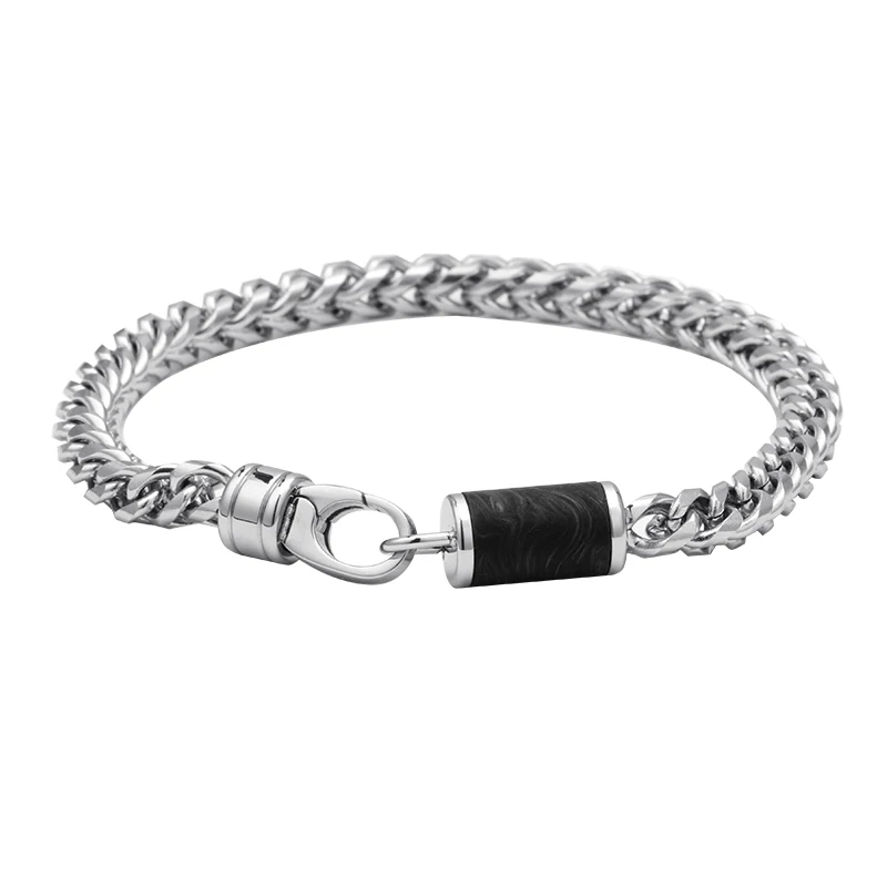 Factory Custom Mens Stainless Chain Bracelet with Forged Carbon Fiber Inlay Men Jewelry Bracelets Accessories