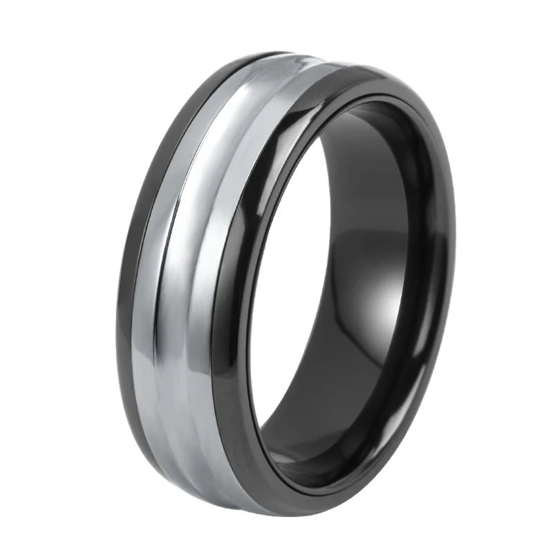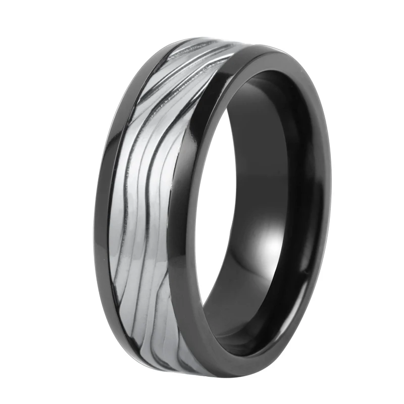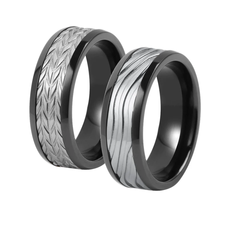 Black Zirconium Sleeve Carved Natural Grey Pure Tantalum Ring Set Wedding Rings for Men