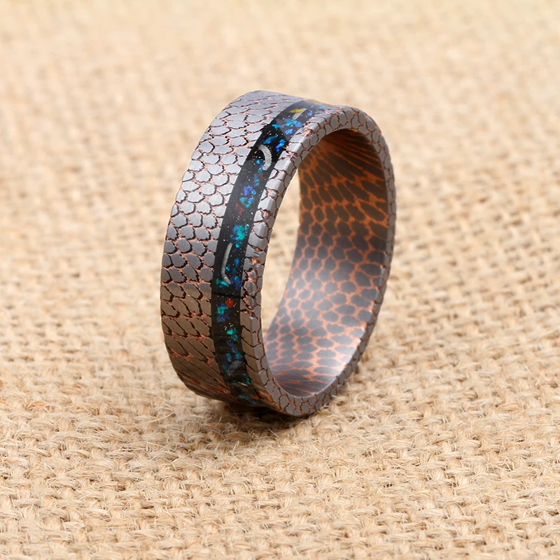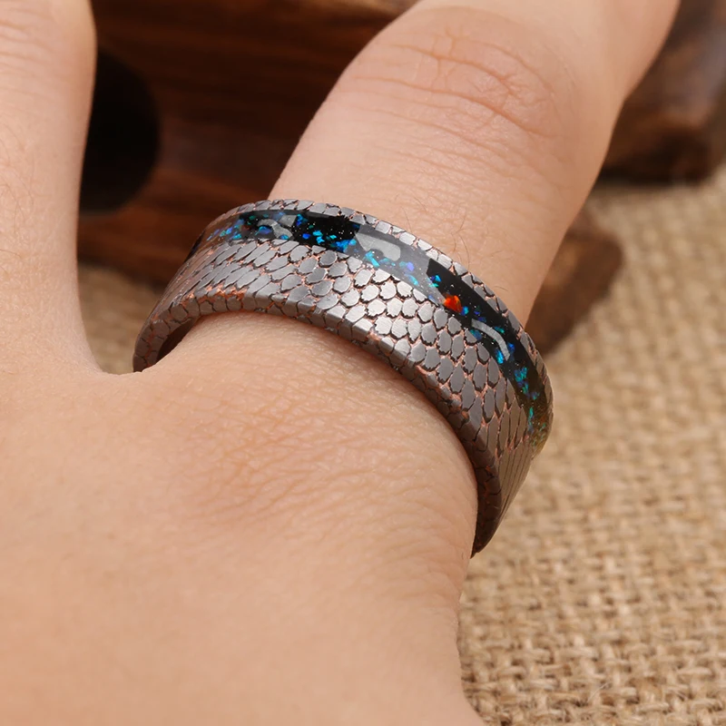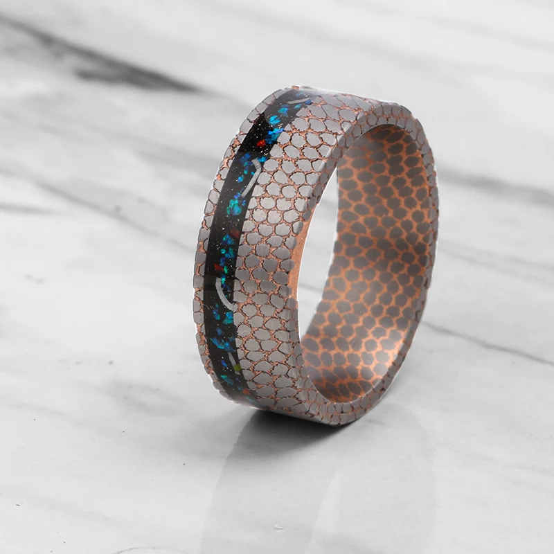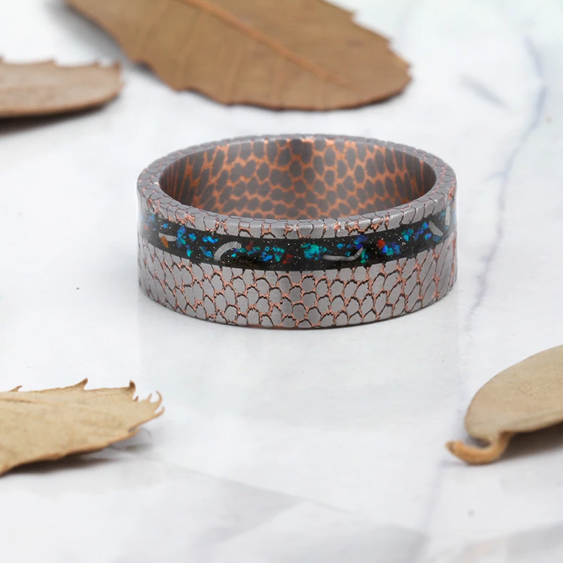 Crushed Opals Real Meteorite Shavings Bezel Setting Fashion Niobium Titanium Copper Wedding Band Superconductor Ring Jewelry