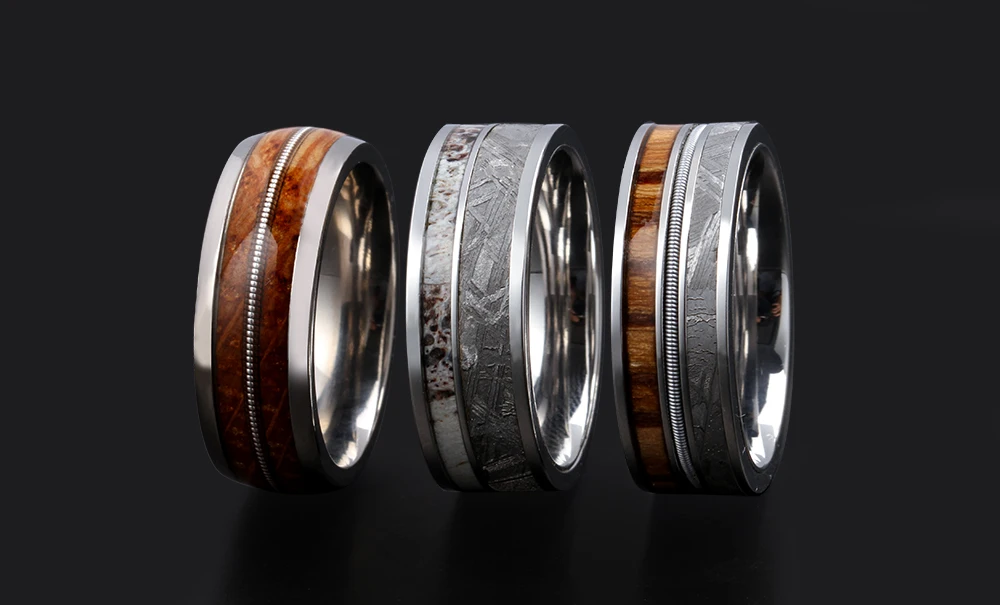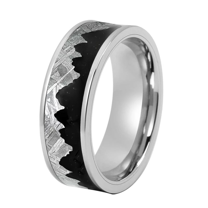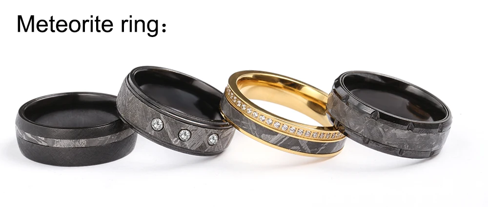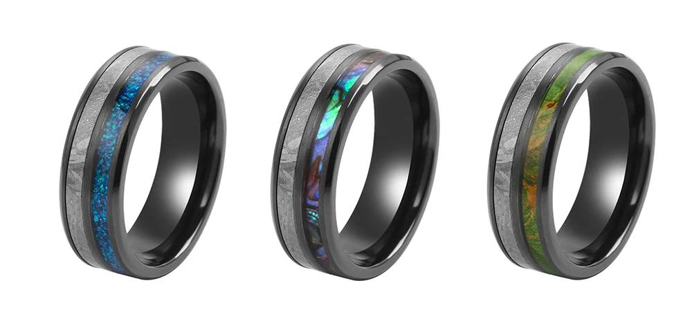 6mm Trendy Style Men's Titanium Wedding Bands Black Enamel Real Muonionalusta Meteorite Accessories Tungsten Ring Designs