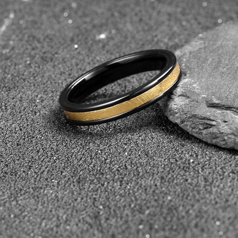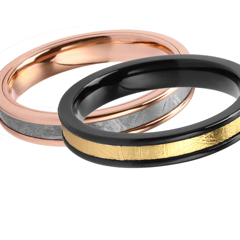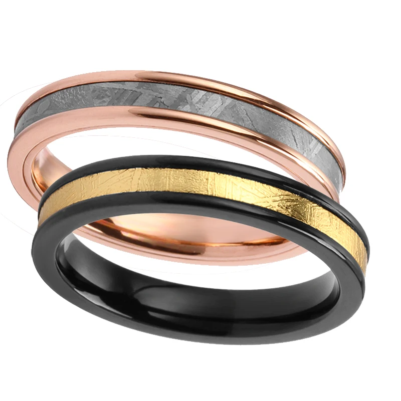 4mm Two Tone Muonionalusta Meteorite Ring Stainless Steel Titanium Couple Mens Womens Wedding Bands