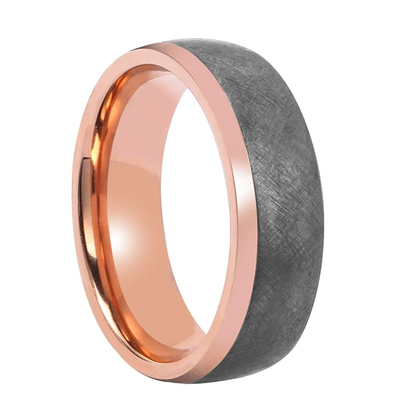 8mm Contemporary Natural Grey Rose Gold Mixed Brushed 2.0mm CZ Stainless with Pure Tantalum Ring Couple Ring Mens Womens