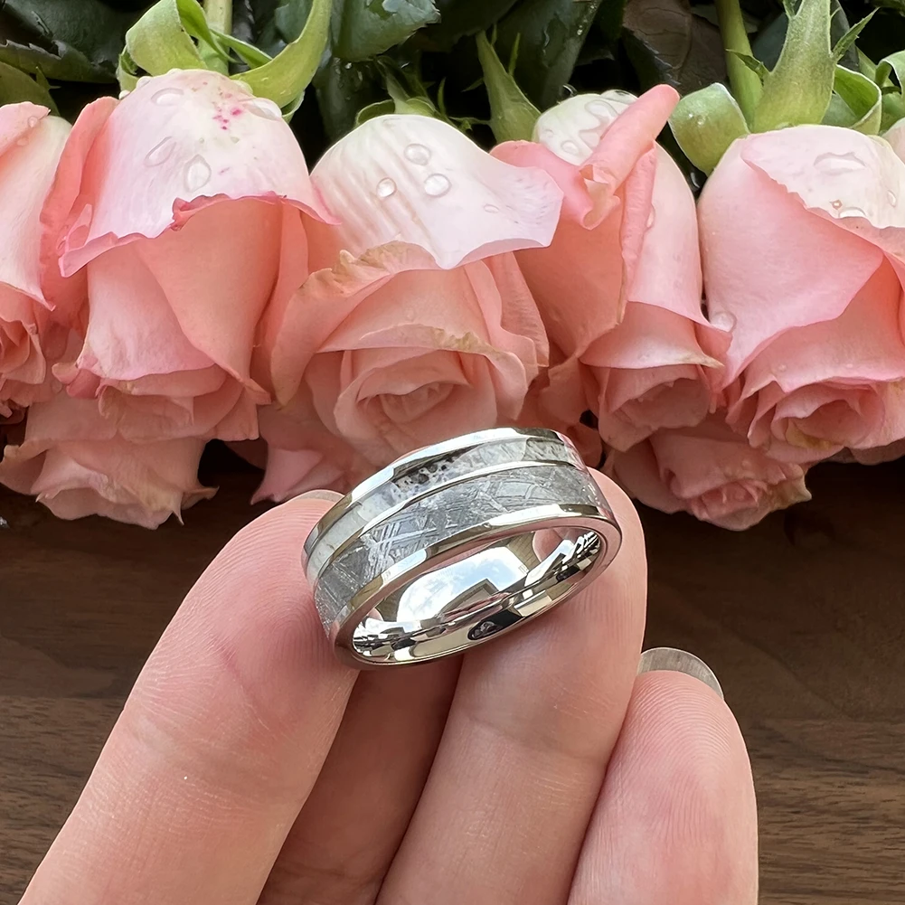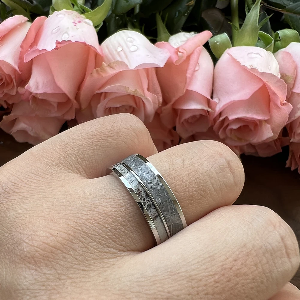 Titanium Stainless Steel Natural Dear Antler Wholesale Price Men Meteorite Tungsten Wedding Ring