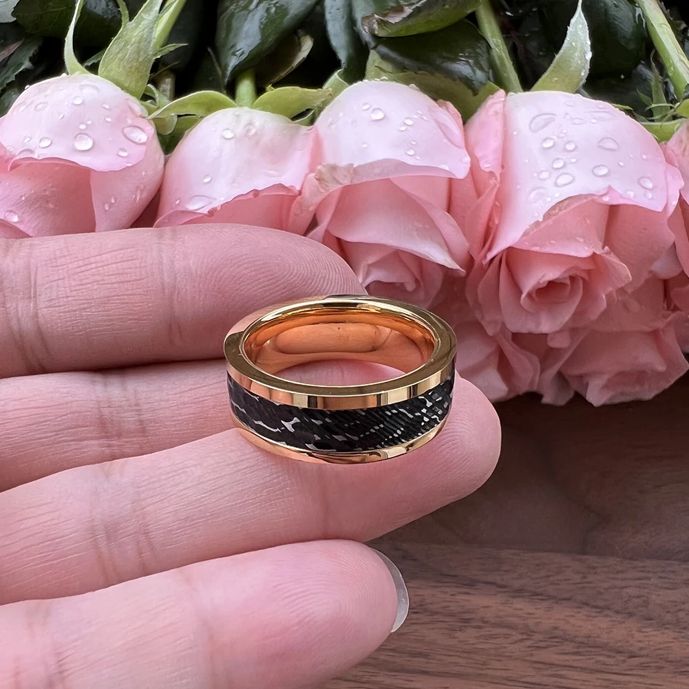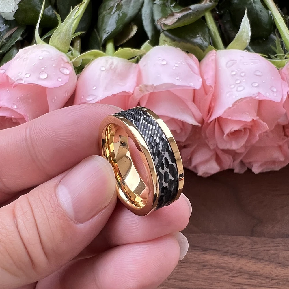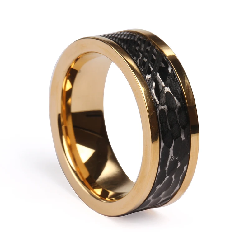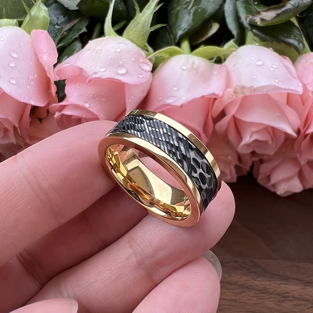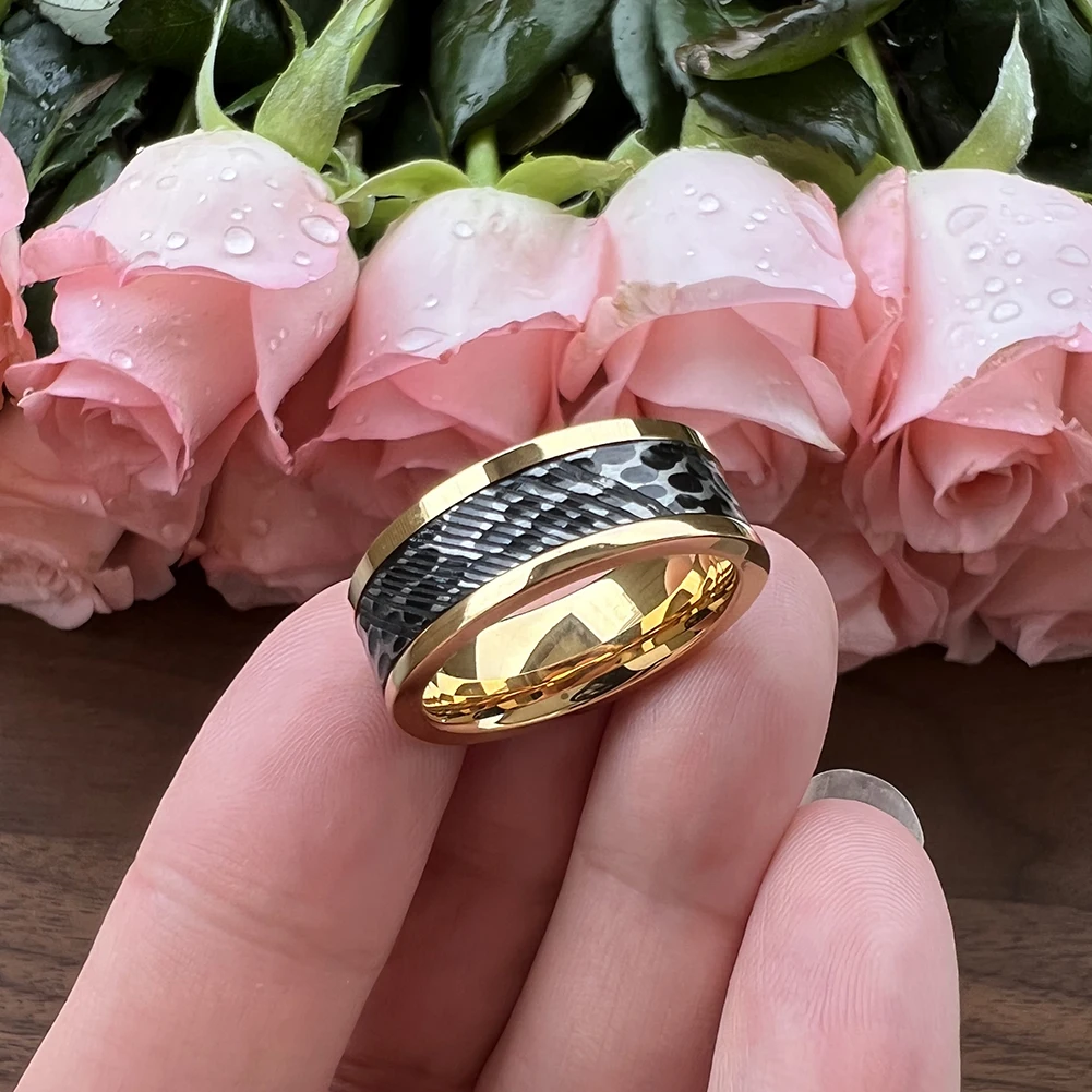 8MM Hammered Unique Etched Fashion Ring Jewelry Rings Man Stainless Damascus Wedding Bands