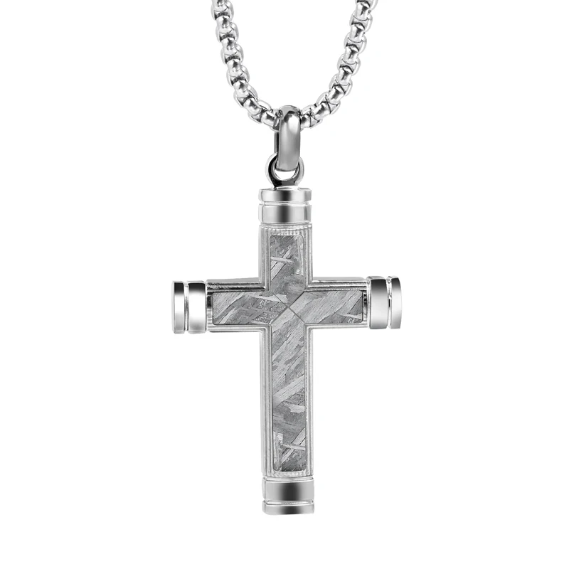 IP Black Muonionalusta Meteorite Jewelry Men Pendant Stainless Steel Cross Necklace Accessories Chain Pendant Charms