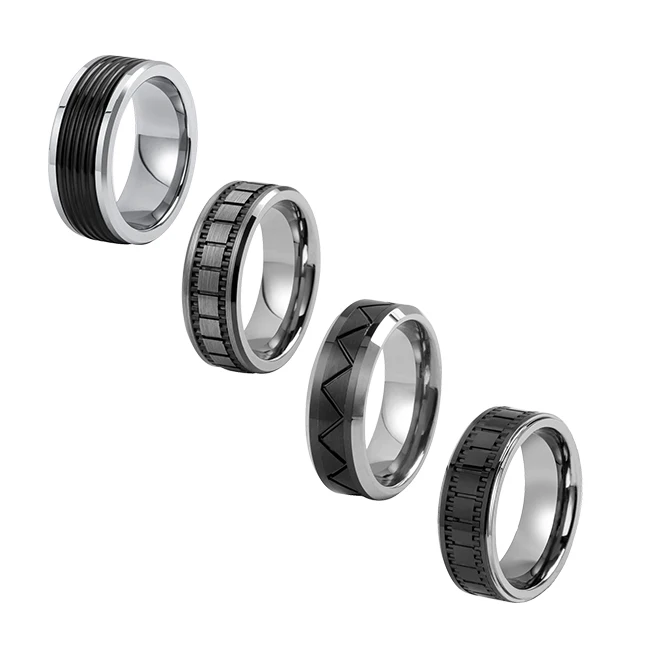8mm Tizti Factory CNC Titanium Band Black Center Mens Wholesale Tungsten Wedding Rings Jewelry