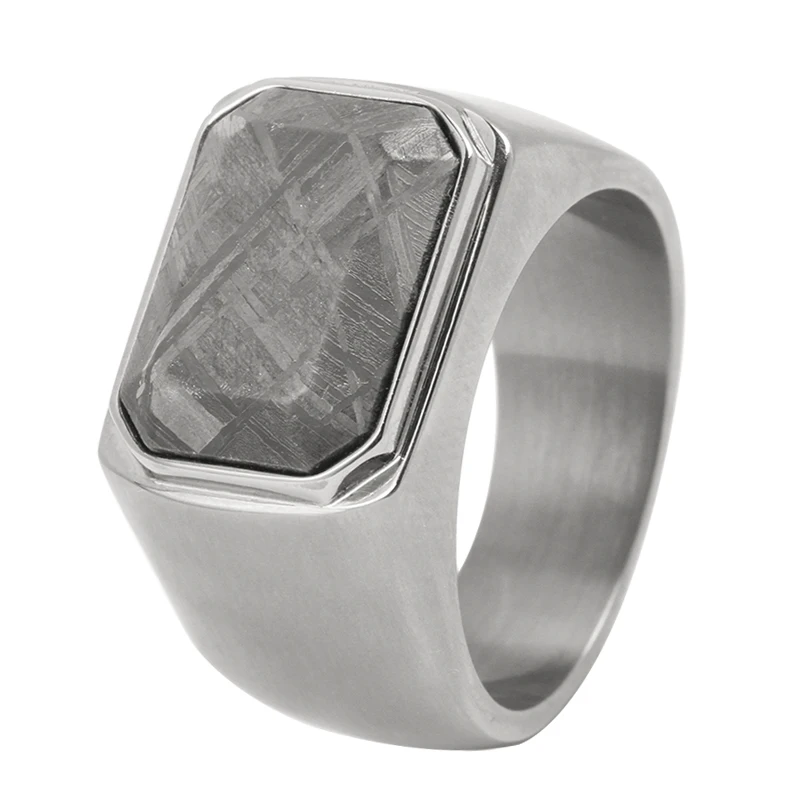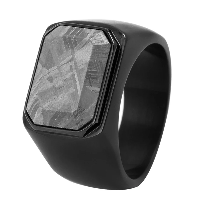 TIZTI Ring Jewelry Men's Signet Ring with Meteorite Inlay Titanium Steel Luxury Men Wedding Bands