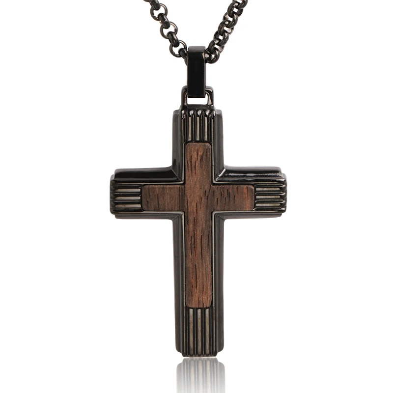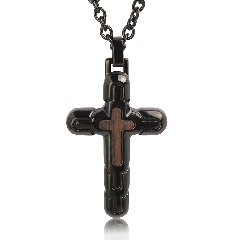 Ebony Wood Cross Pendant Necklace Black Double Crosses Men Accessories TIZTI Pendants