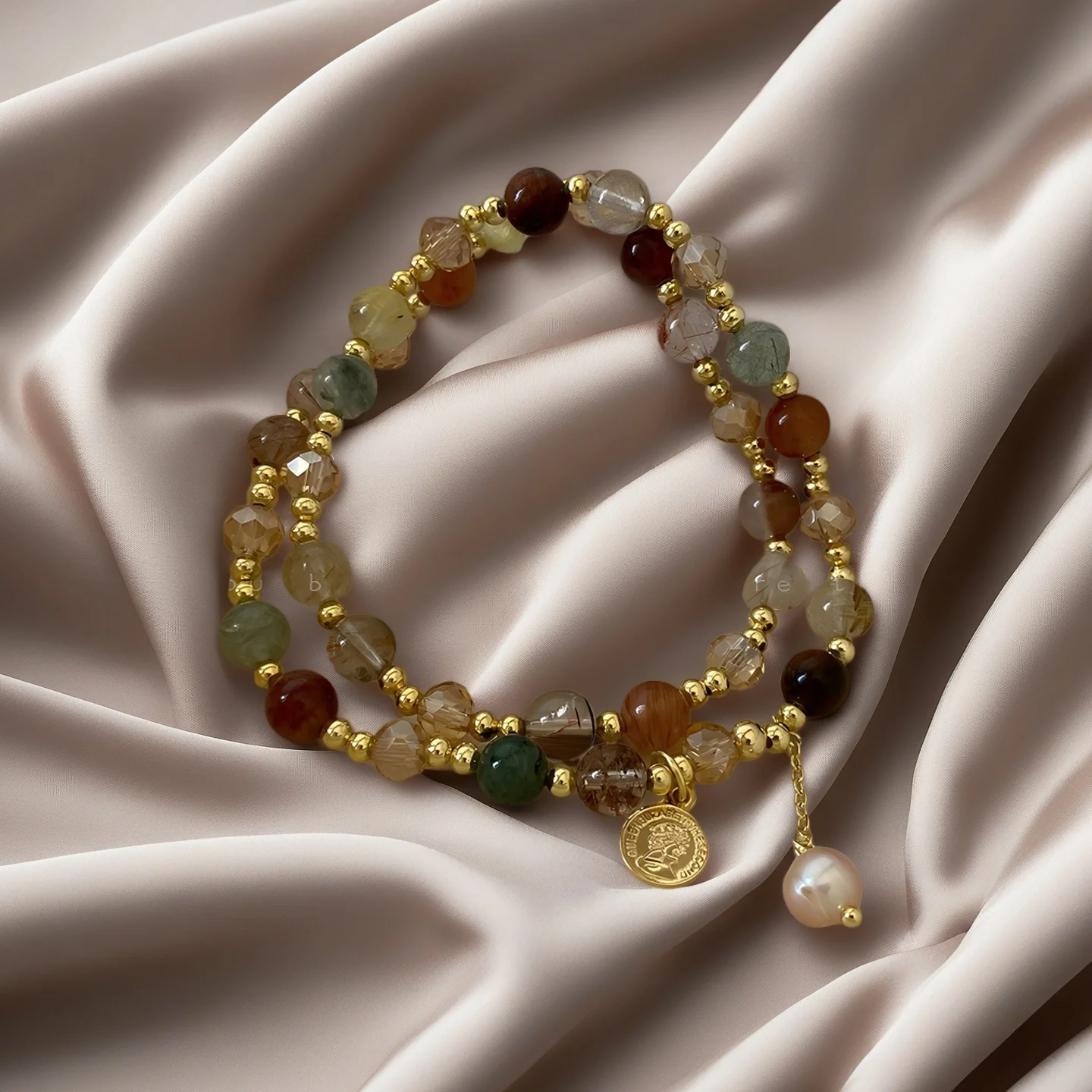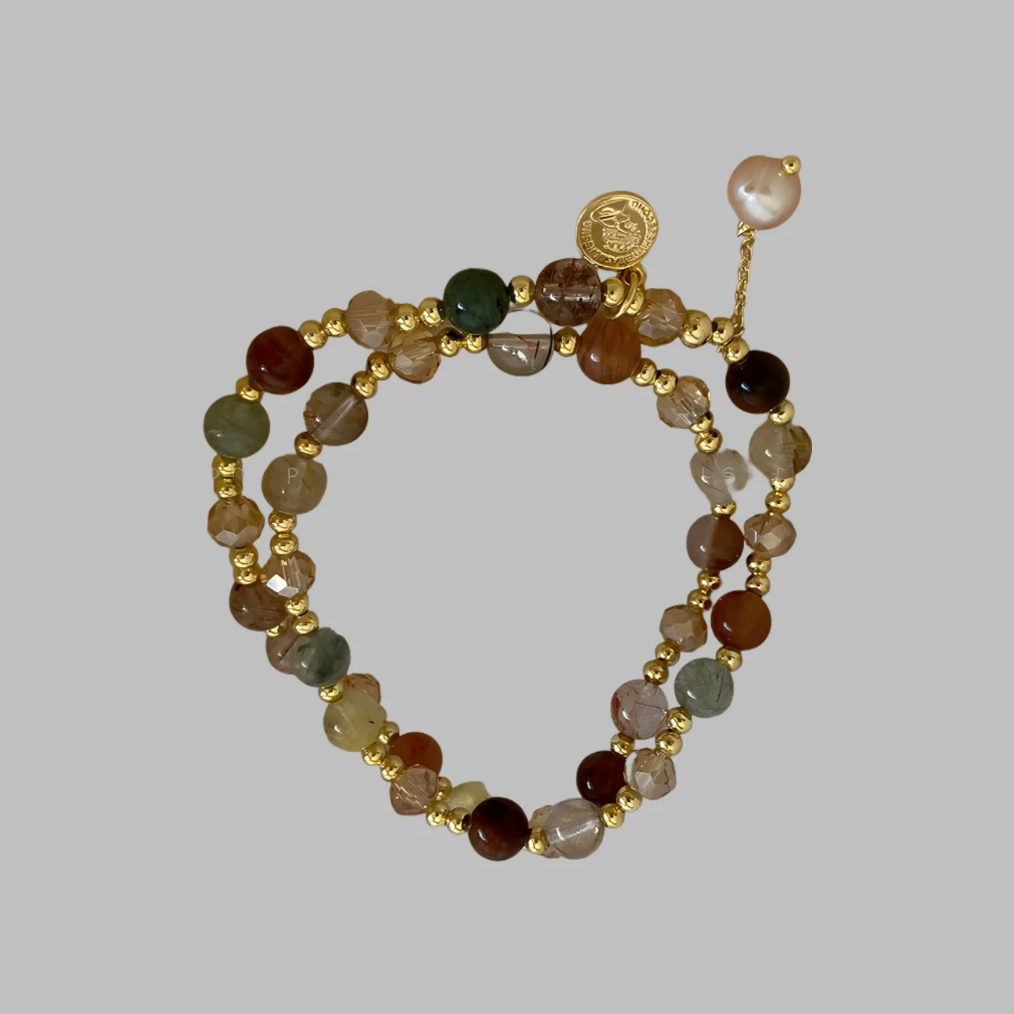 Muxcor Pink Natural Stone Beaded Brown Bracelet Classic Fashion Fancy Alloy Crystal Jewellery for Ladies Women