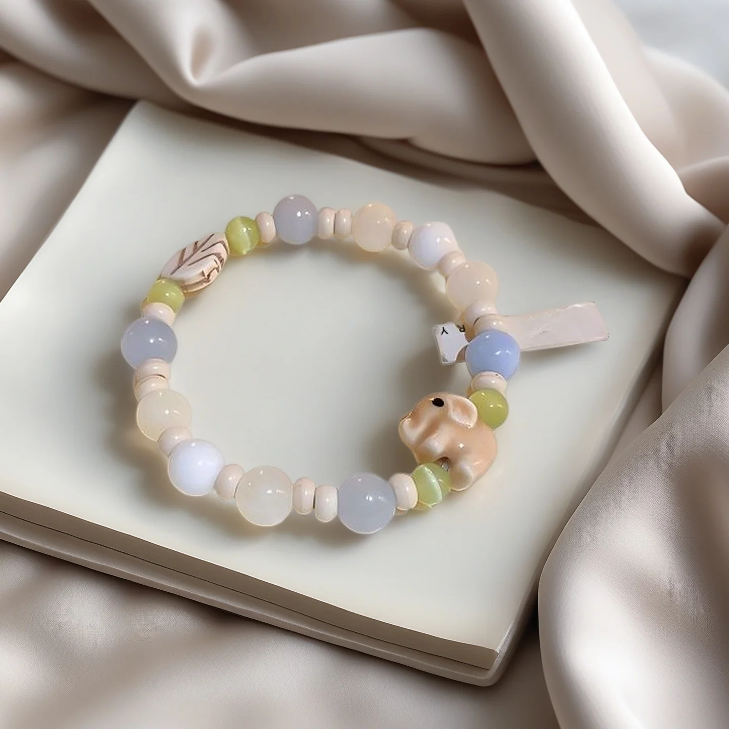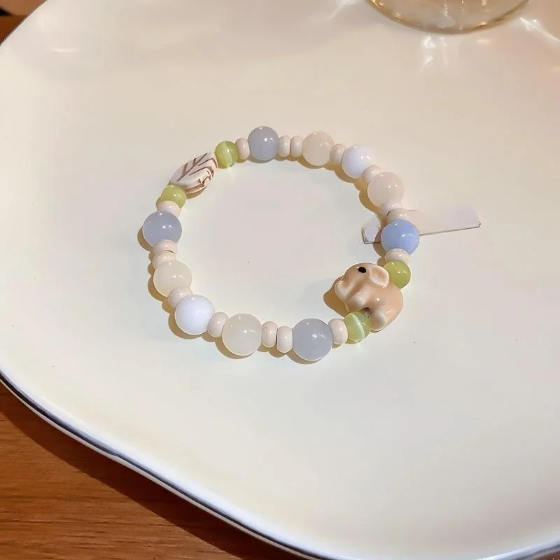Muxcor Beaded Innocence Bracelet Fashion Fancy Jewellery for Ladies Women Colorful Leaf Elephant Ceramic Cat's Eye Stone