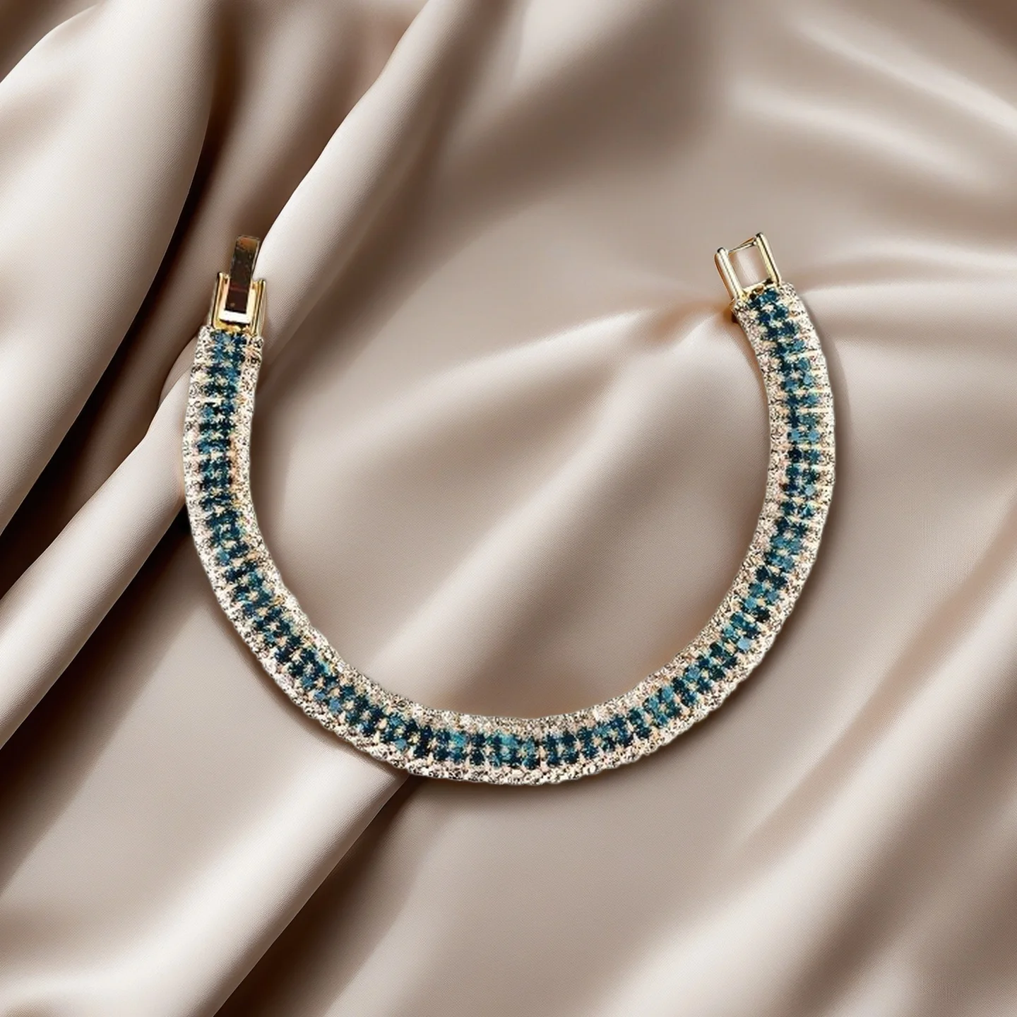 Muxcor Women's Fashion Chain & Link Bracelets Gold Plated Copper Alloy Rhinestone Blue Bracelet Jewelry