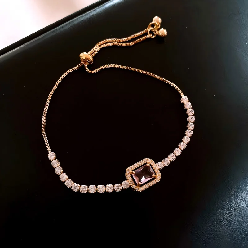 2026 Women's Tennis Bracelets Fashion Charm Sugar Cube Diamond Zircon Adjustable Gold Plated Copper Jewelry for Wedding Girls