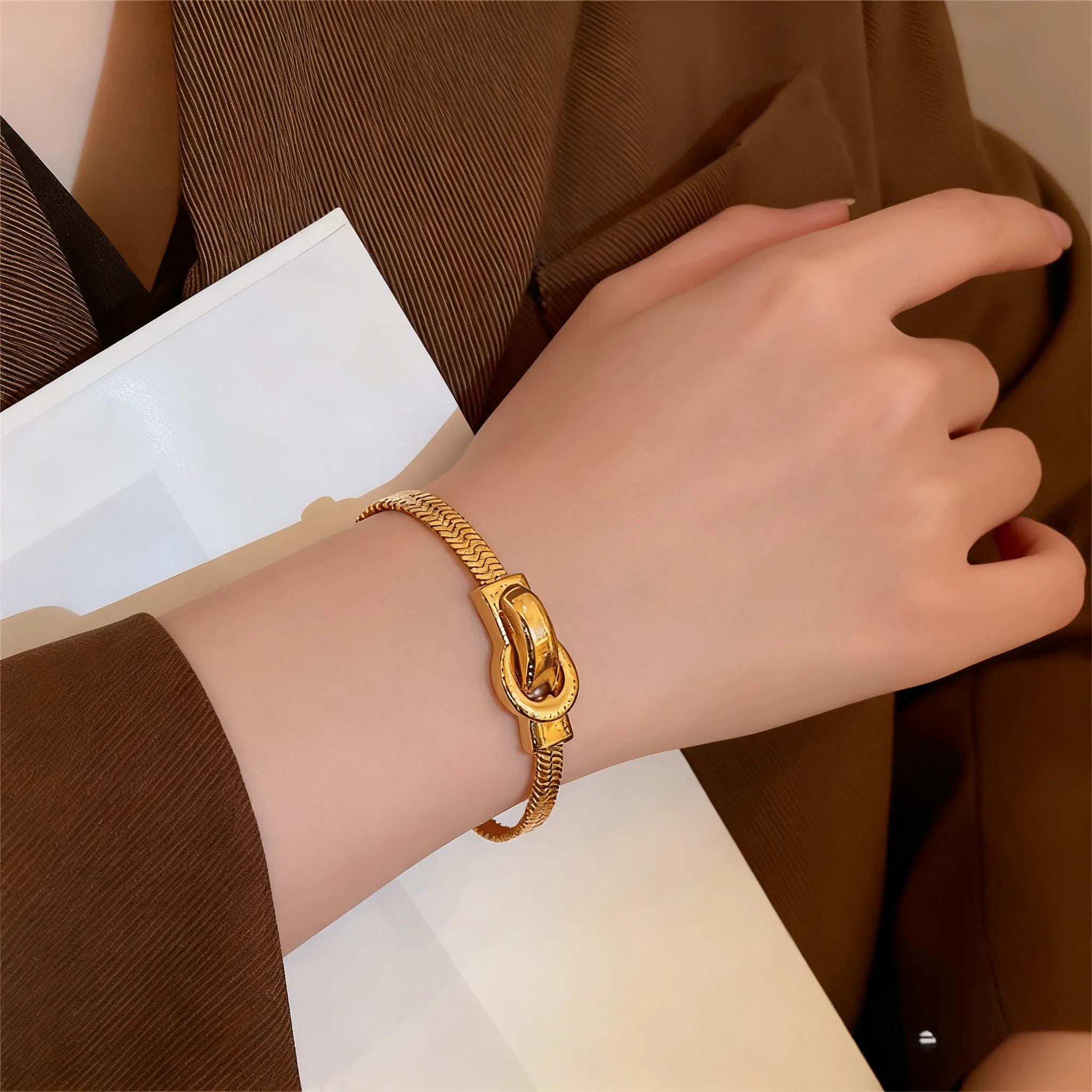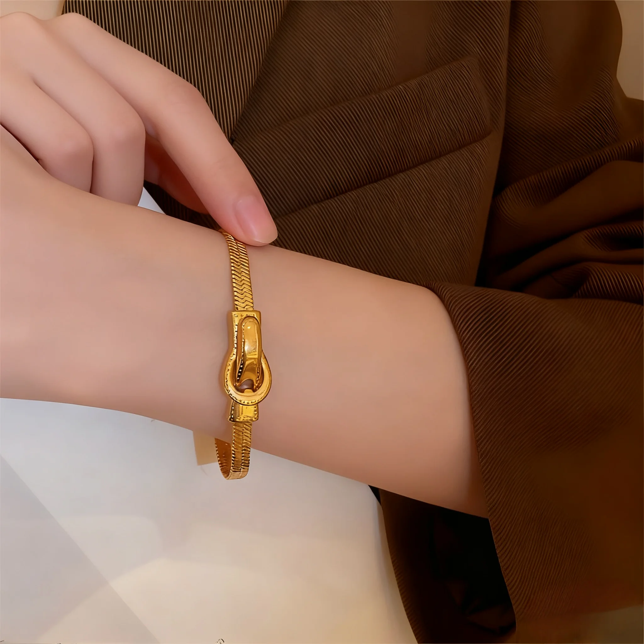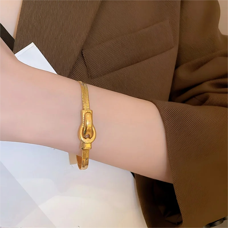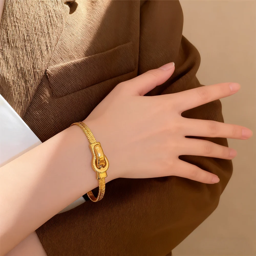 Muxcor Punk Snake Chain Charm Fashion Chain & Link Bracelets Gold Titanium Steel Bracelet Classic Jewelry for Women Men Couple