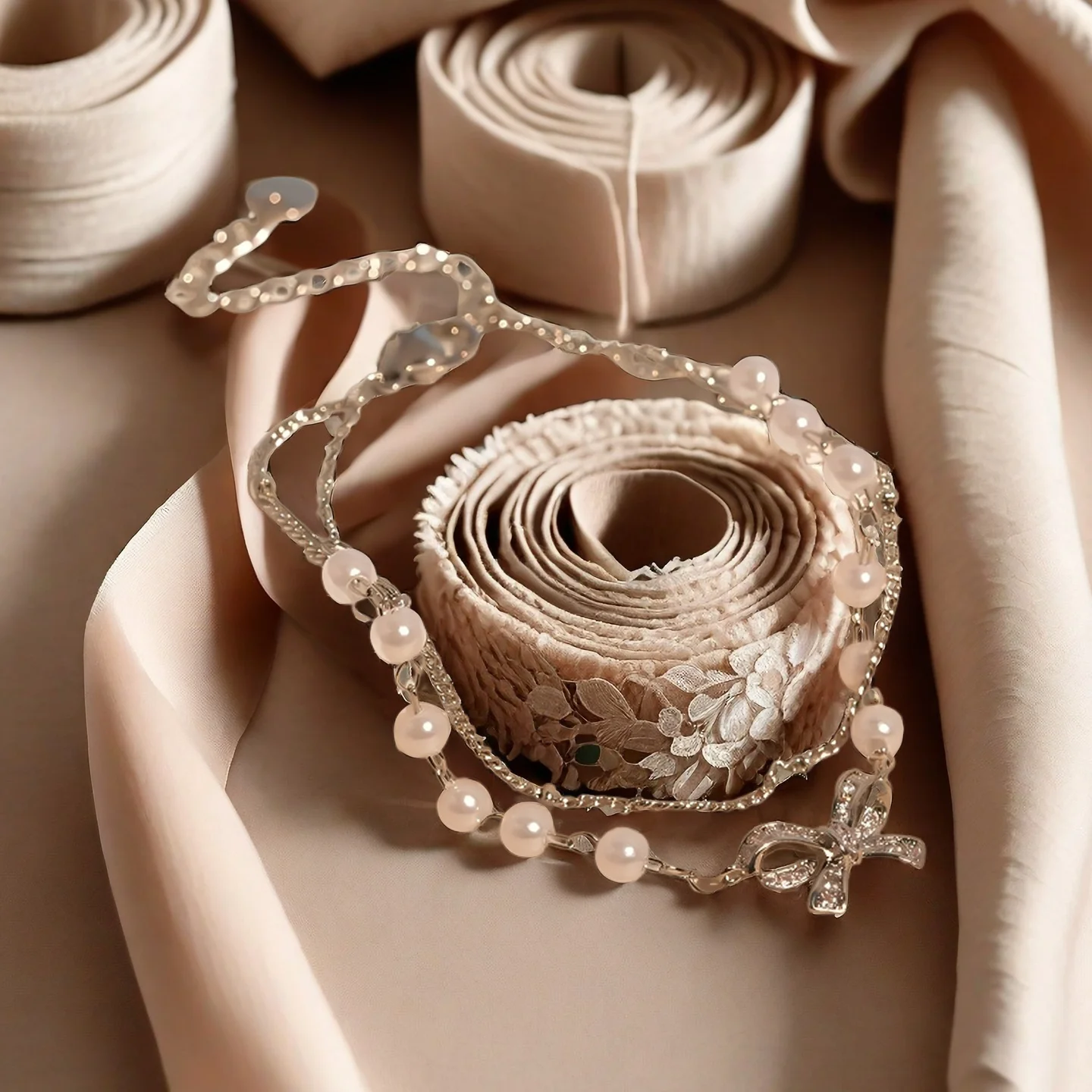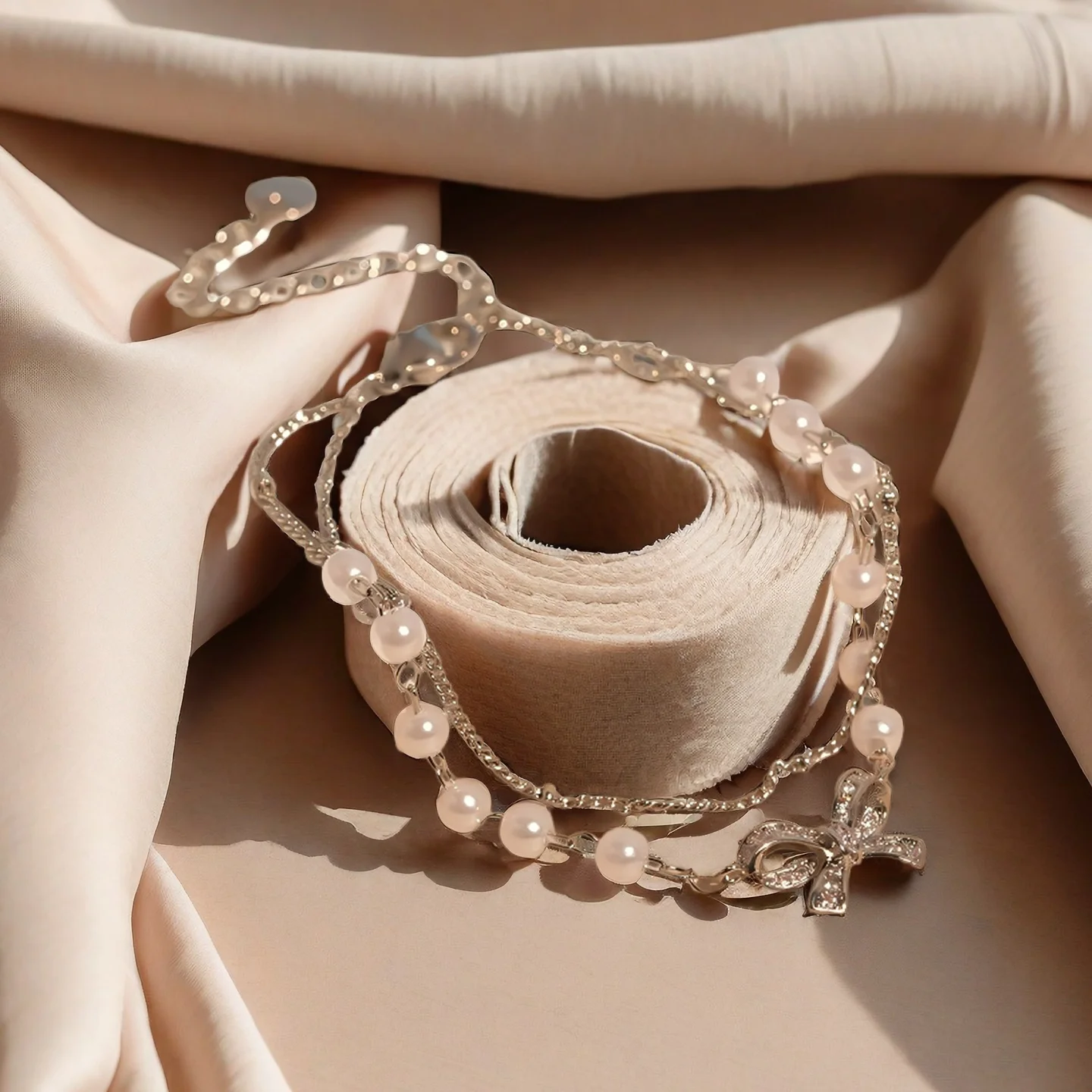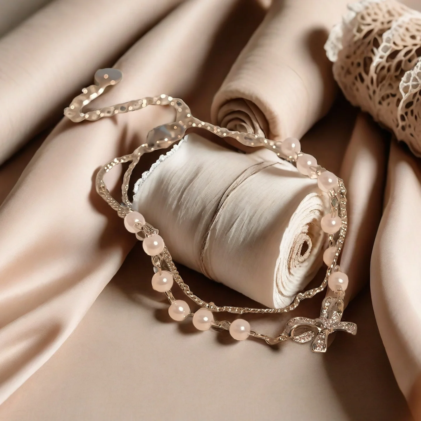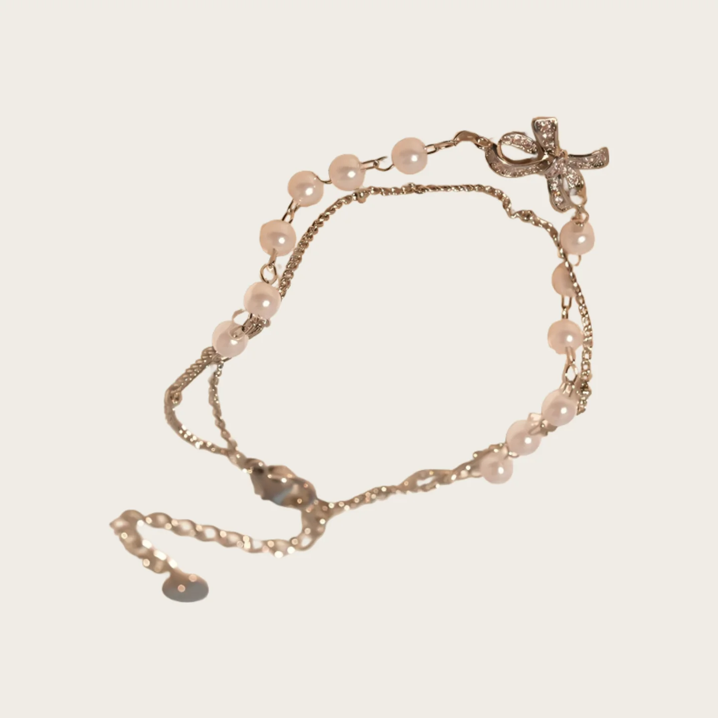 Muxcor Fashion Chain & Link Bracelets Artificial Pearl Bow Double-layered Interlocking Bracelet Women Lady Copper Jewelry