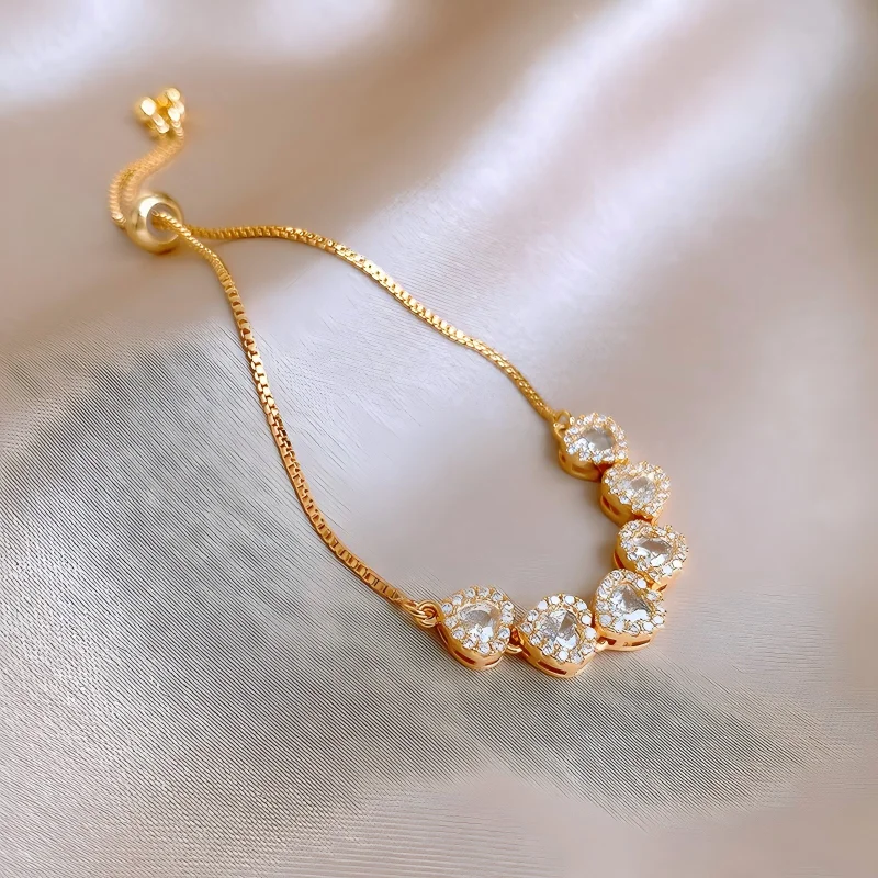 Muxcor Factory Women's Tennis Bracelets Fashion Heart Diamond Zircon Adjustable Gold Plated Copper Charm Wedding Girls Jewelry