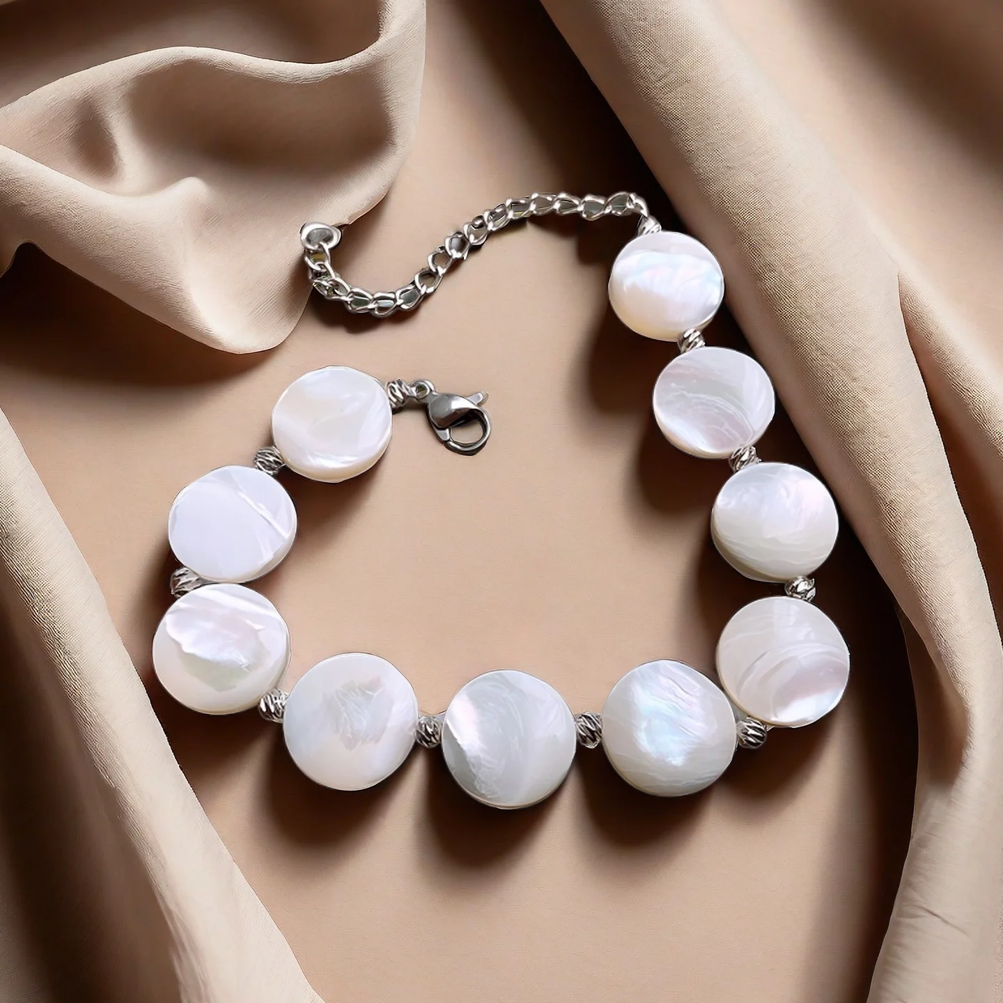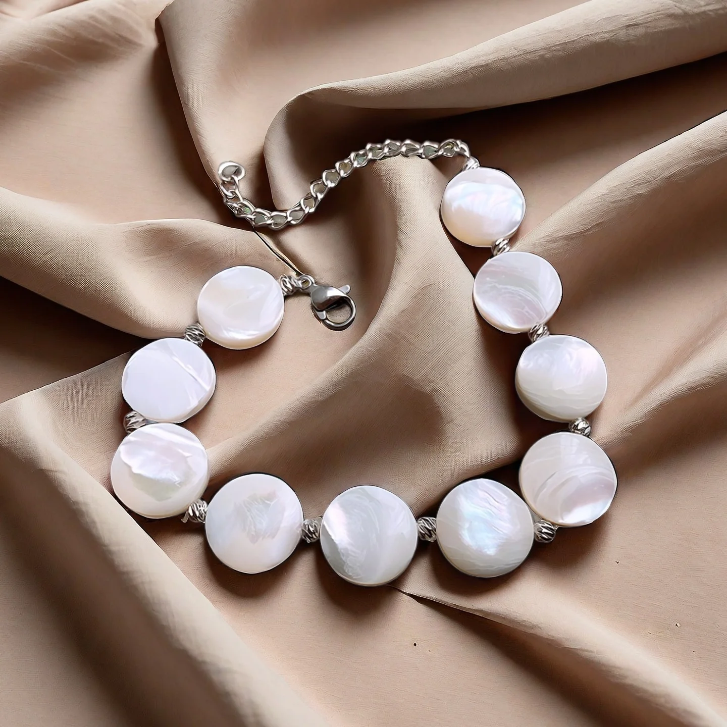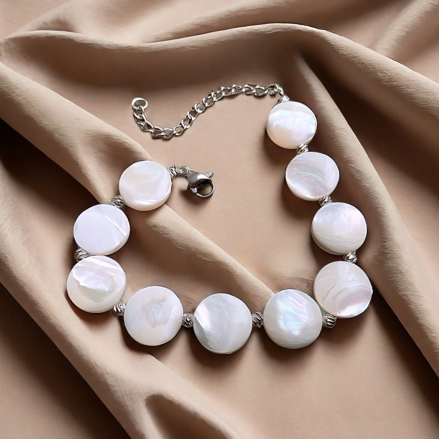 Women Custom Fashion Chain Round Beaded Mother-of-pearl Bracelet Bracelets Accessory Designer Inspired Wedding Jewelry