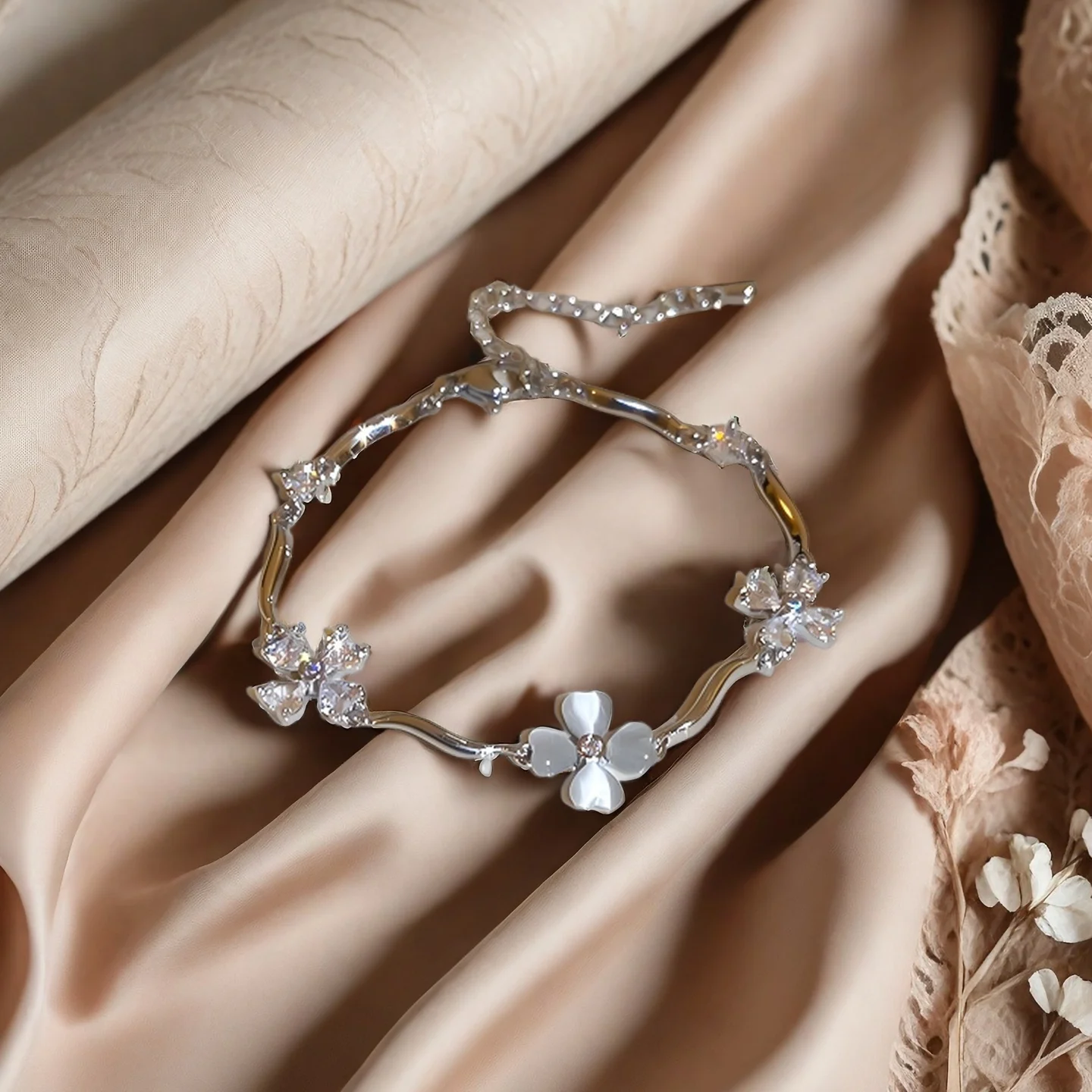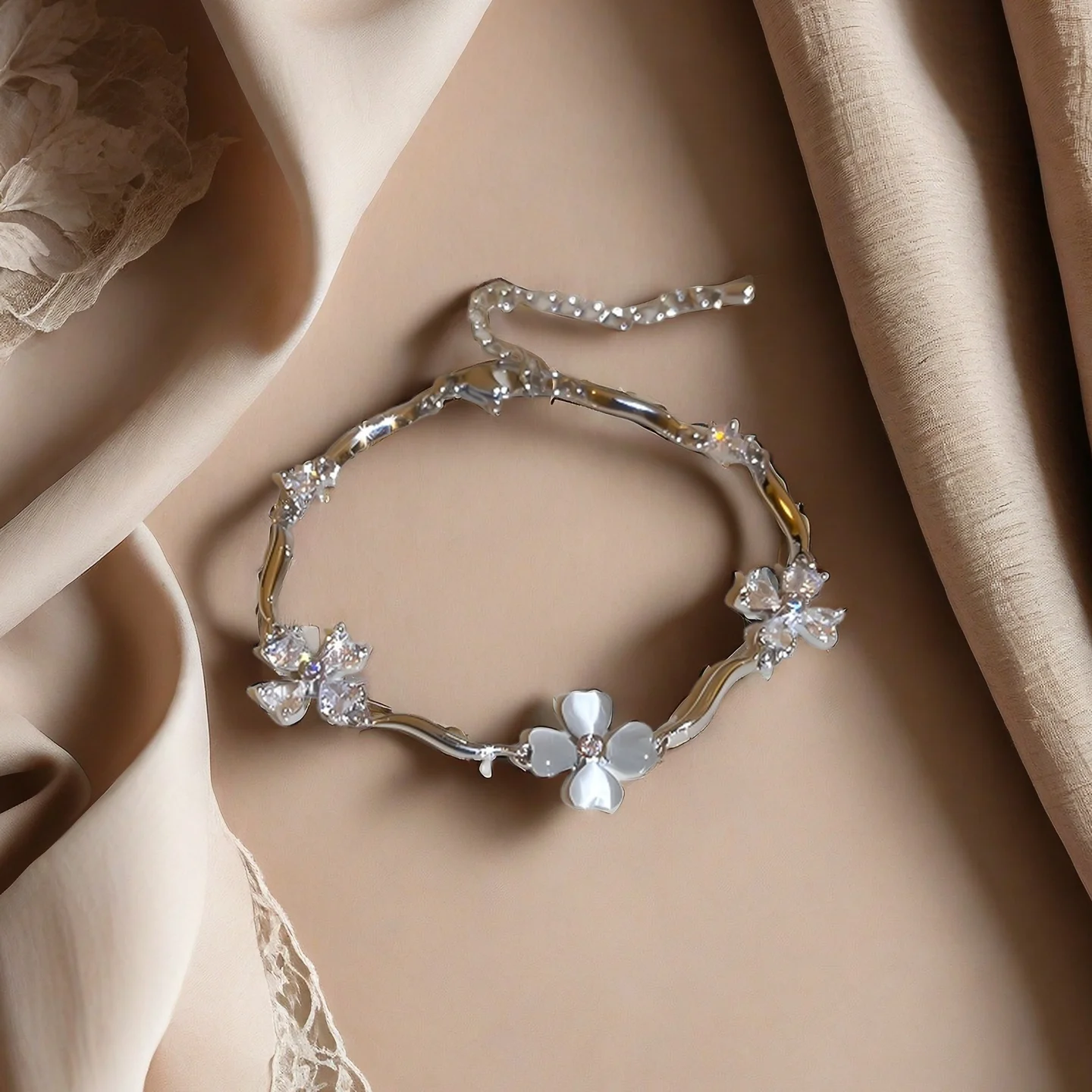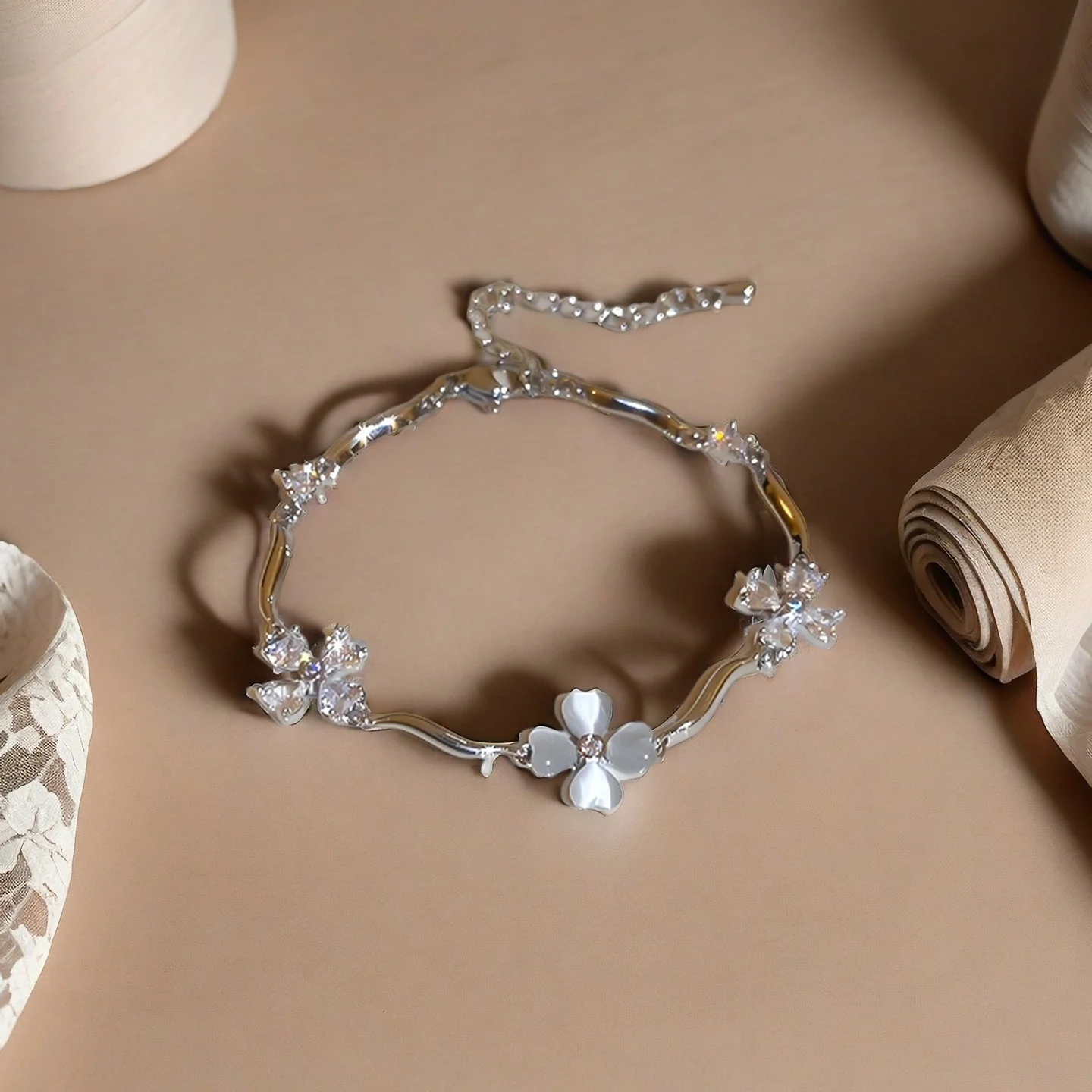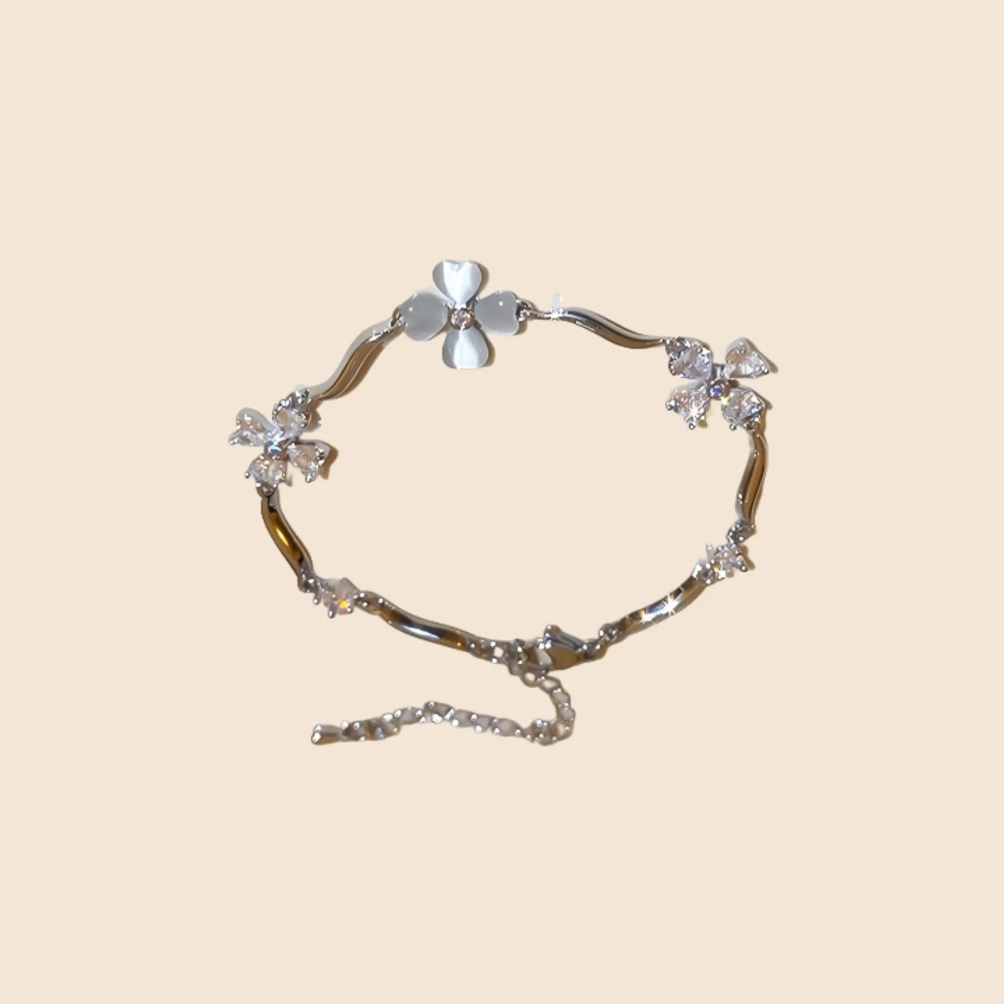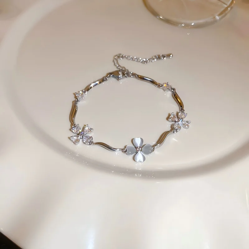 Muxcor Trendy Fashion Bracelets for Women 4 Leaf Clover Chain Link Classic Flower Copper Silver Color Fancy Jewellery for Ladies