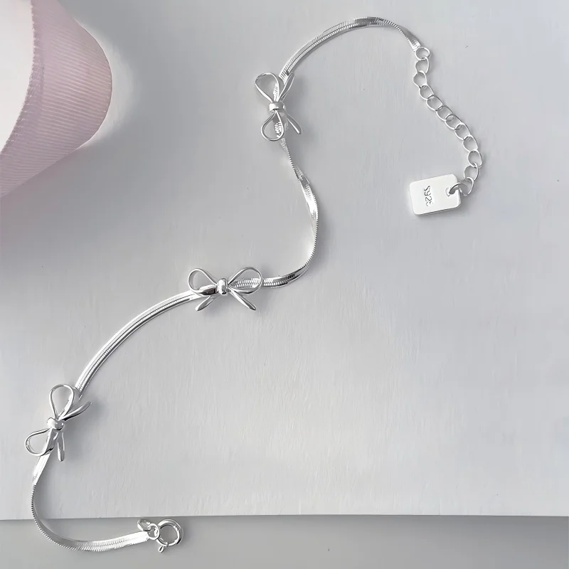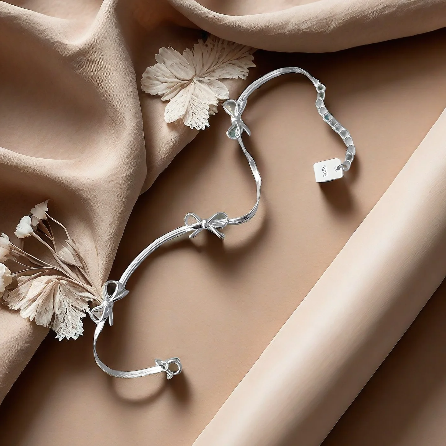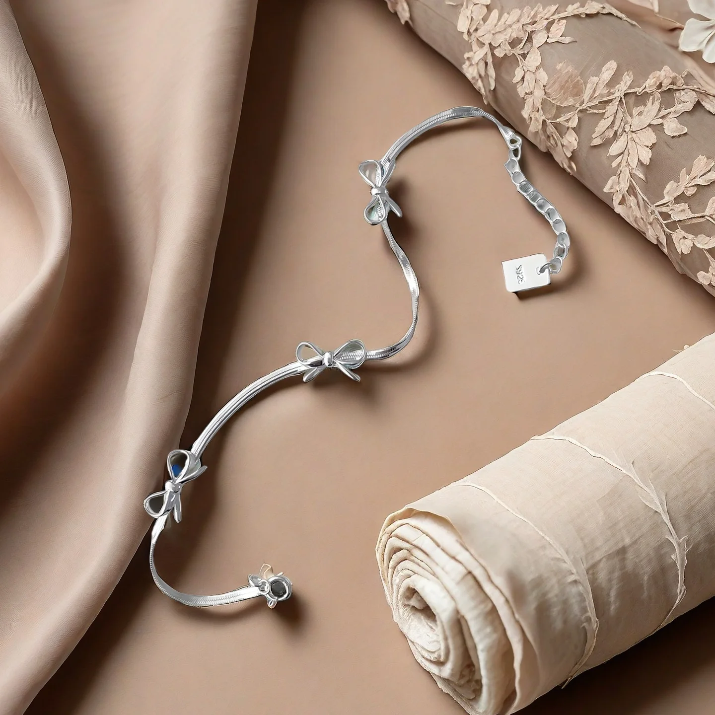 Silver Bowknot Bracelet Women Elegant Ribbon Chain Design Delicate Fashionable Perfect for Daily Wear Party Ideal Jewelry Gift