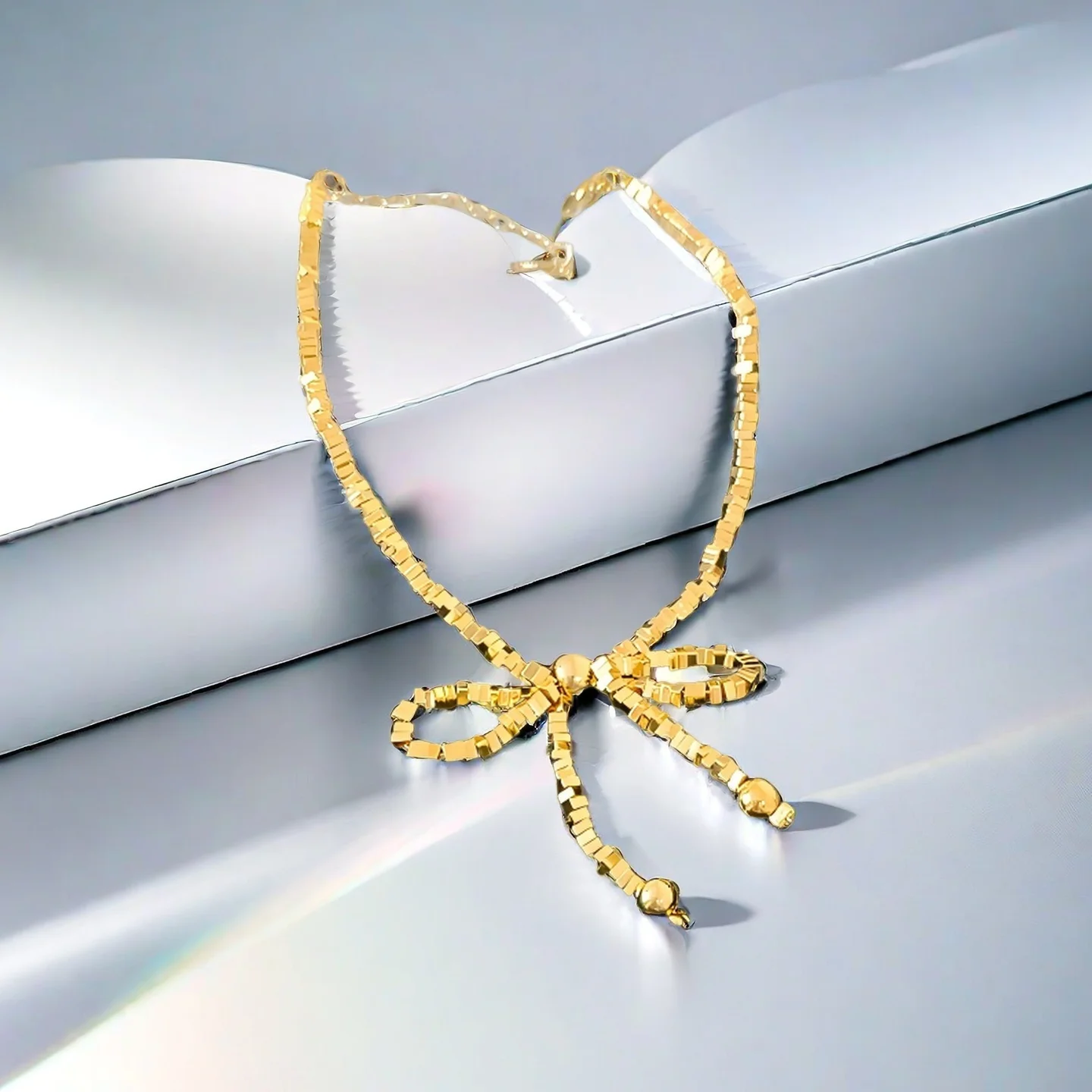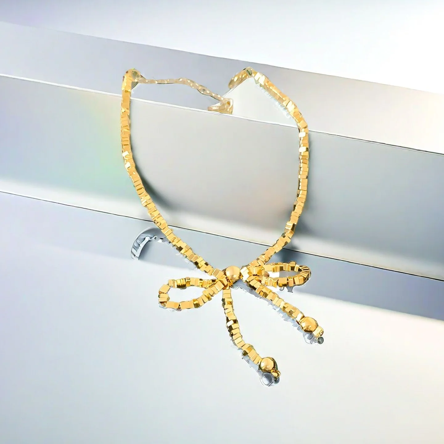 Golden Bow Bracelet Stylish Geometric Bead Adjustable Chain Length Lightweight Durable Trendy Jewelry Women Daily Outfit Party