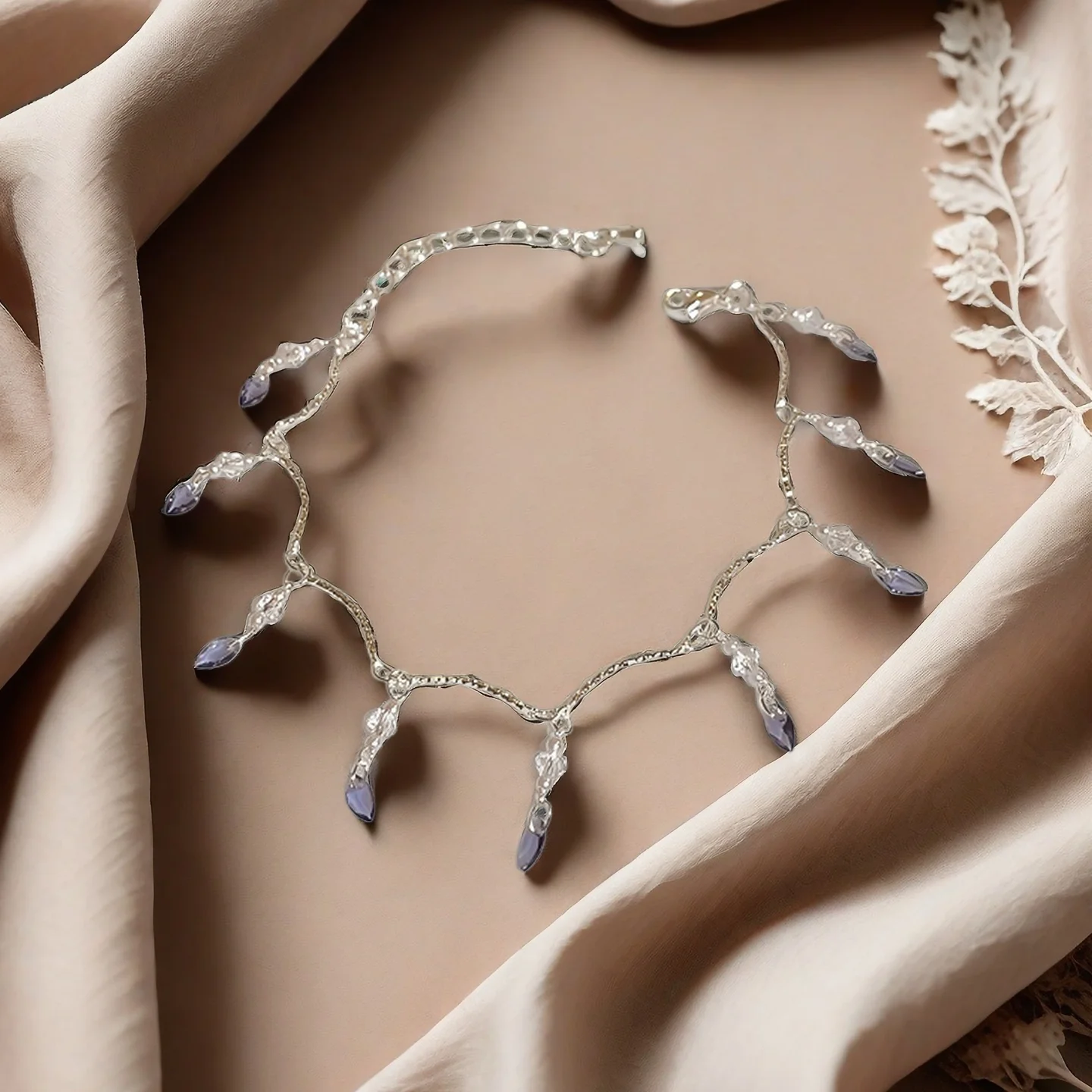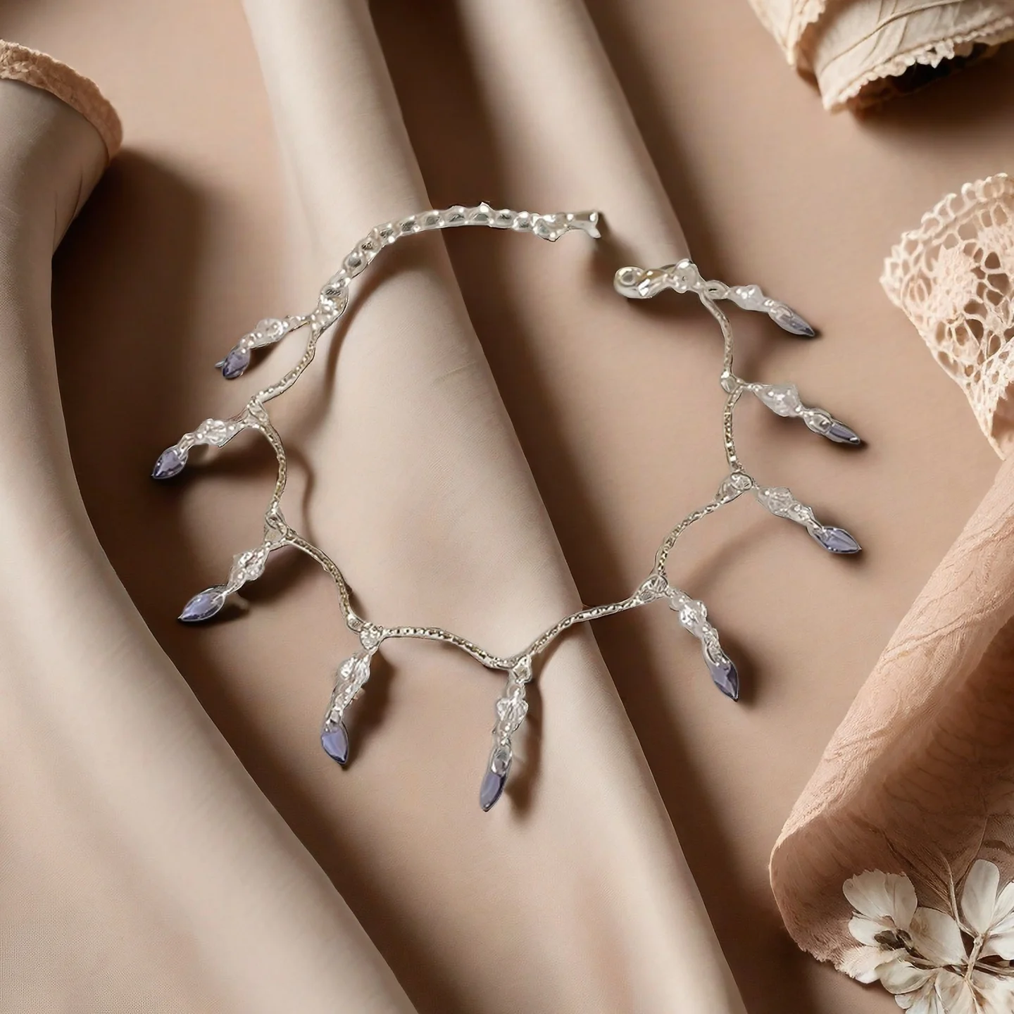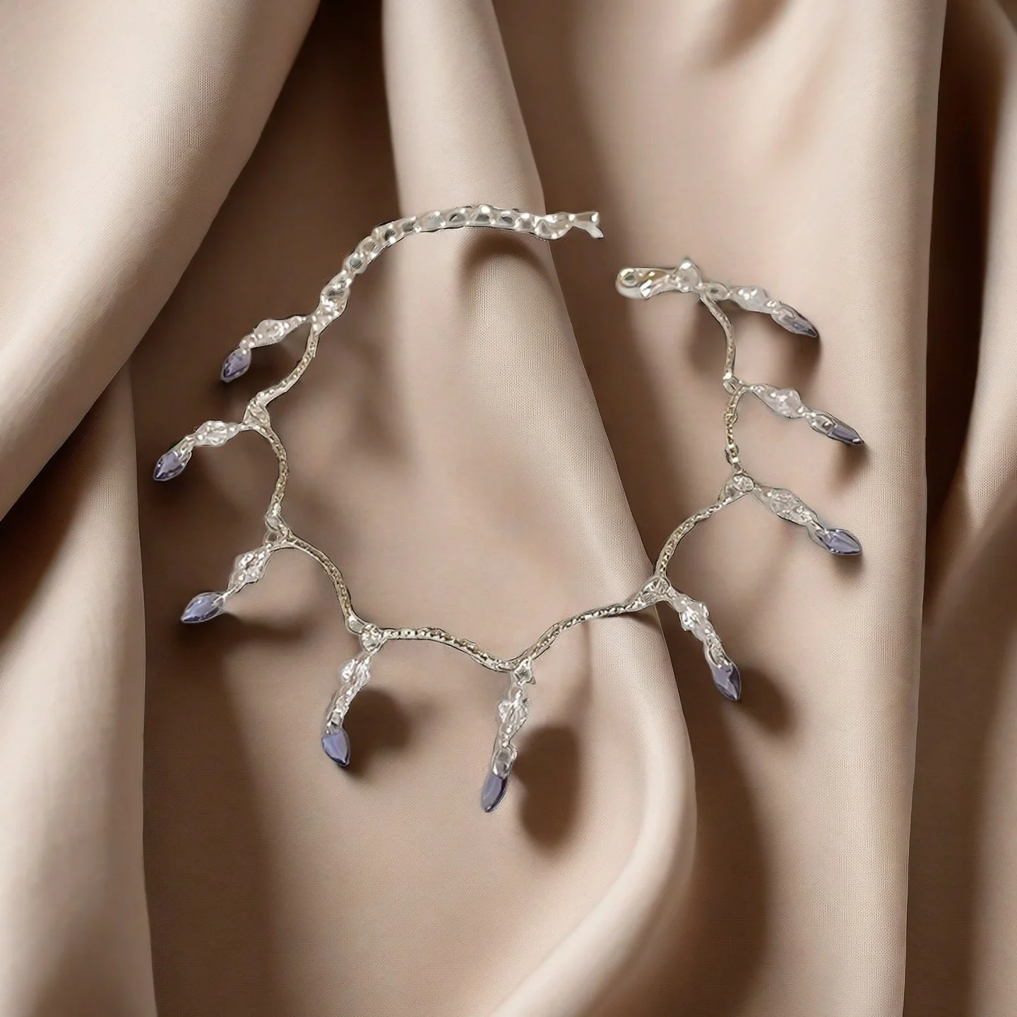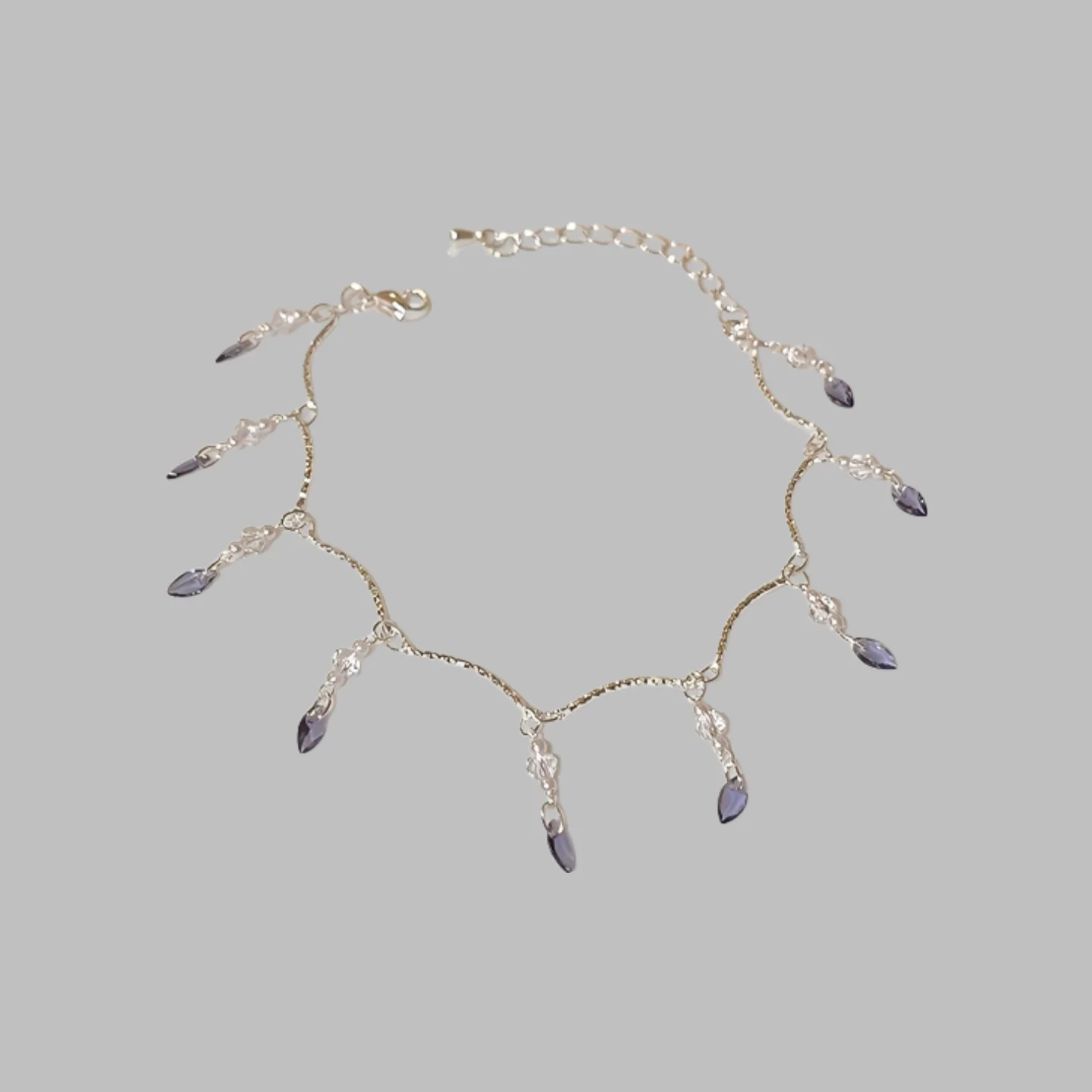 Exquisite Silver Bracelet with Purple Crystal Tassels Delicate Chain Fashionable Jewelry for Women Summer Beach Daily Wear