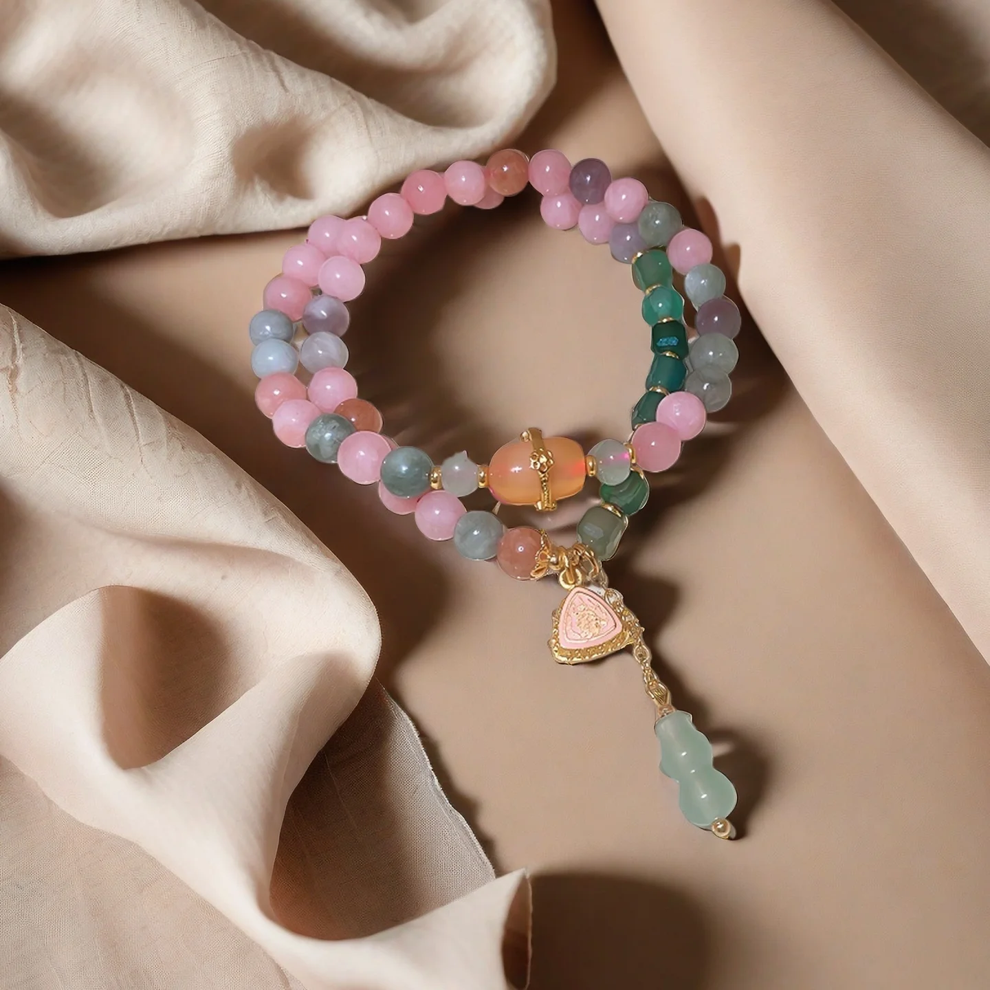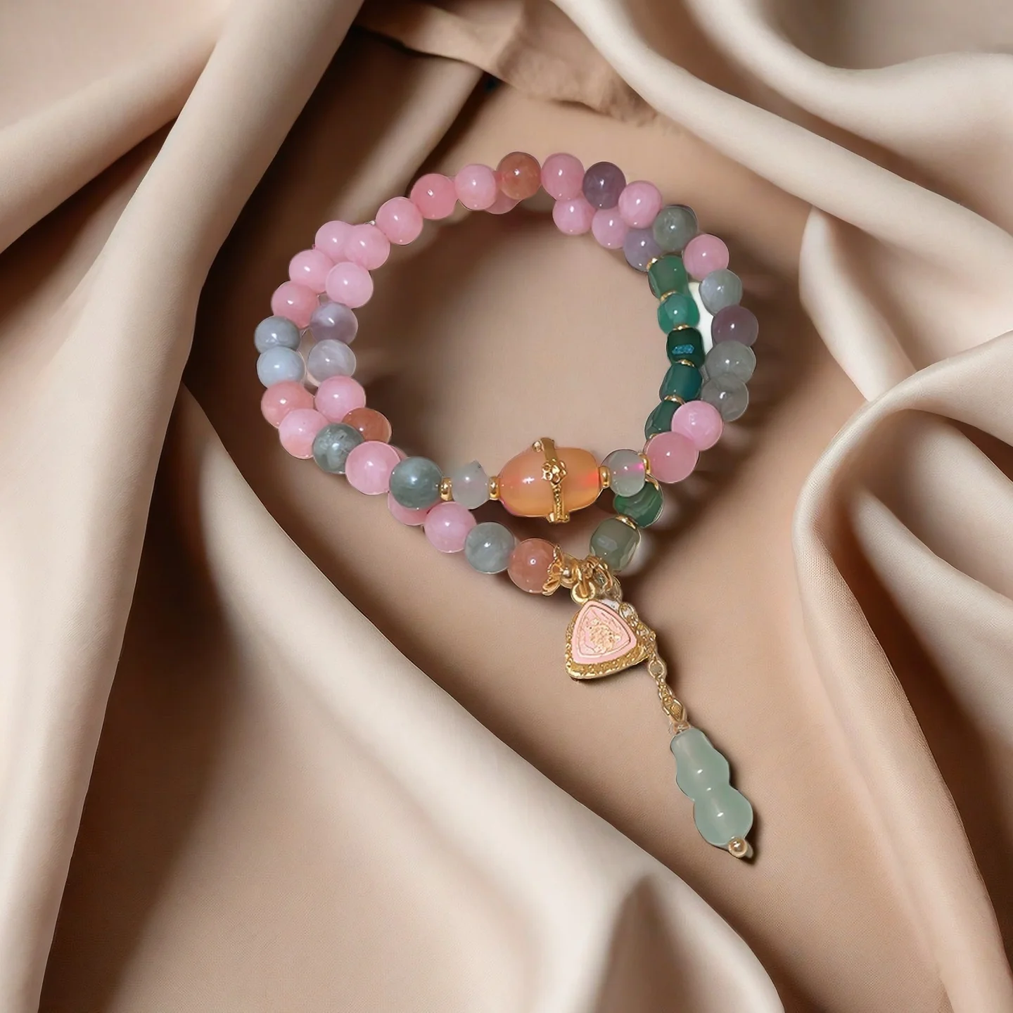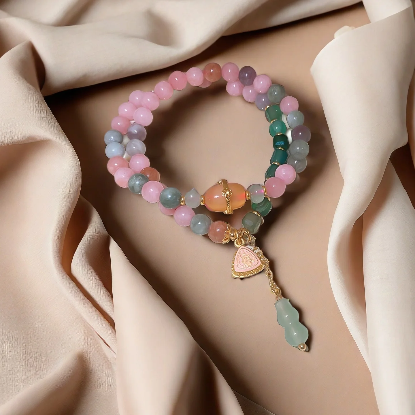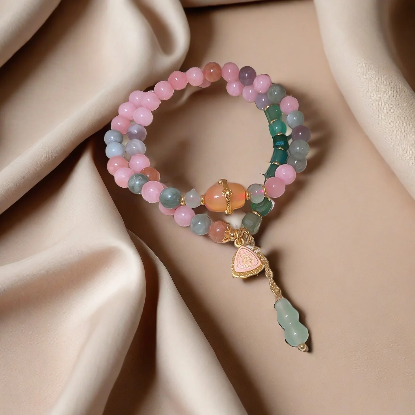 Exquisite Natural Stone Beaded Bracelet with Triangular Charm Gourd Pendant Elegant Multicolor Design Women's Daily Wear Gifting