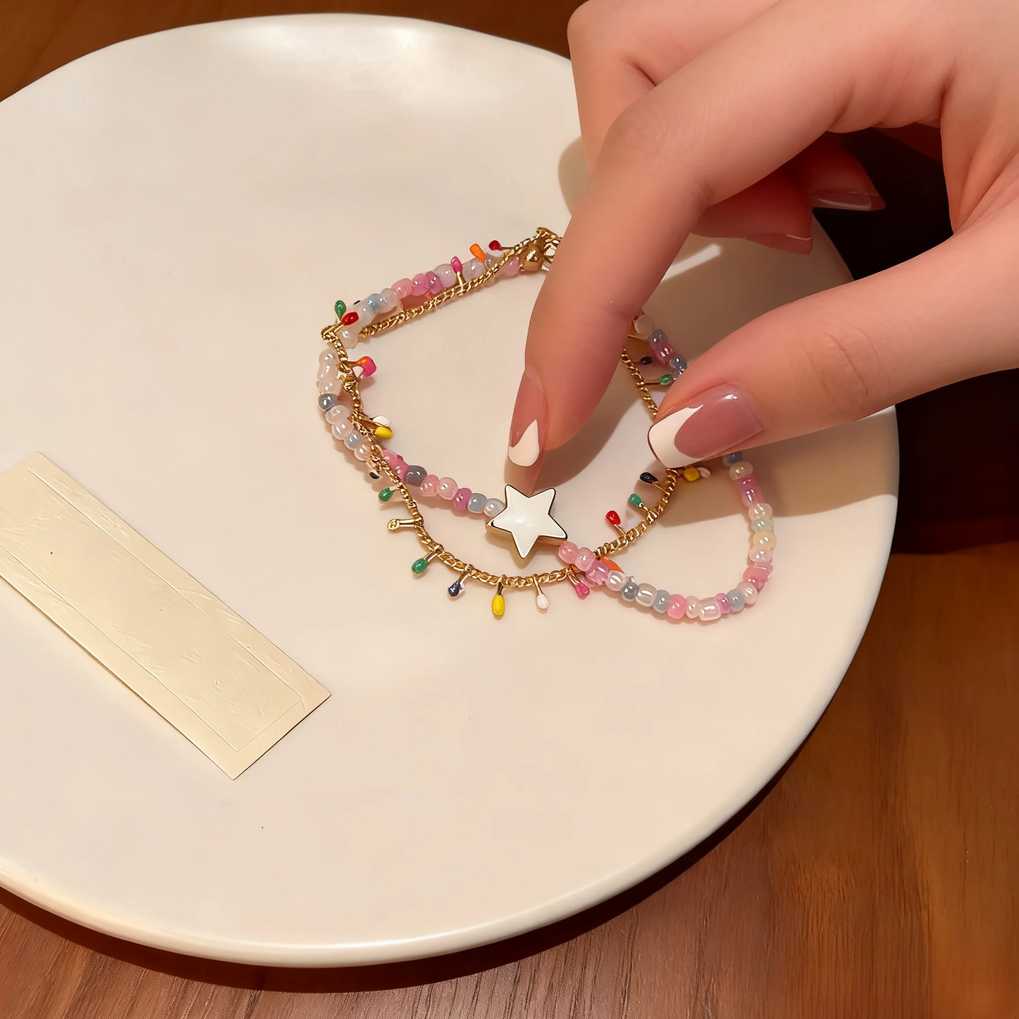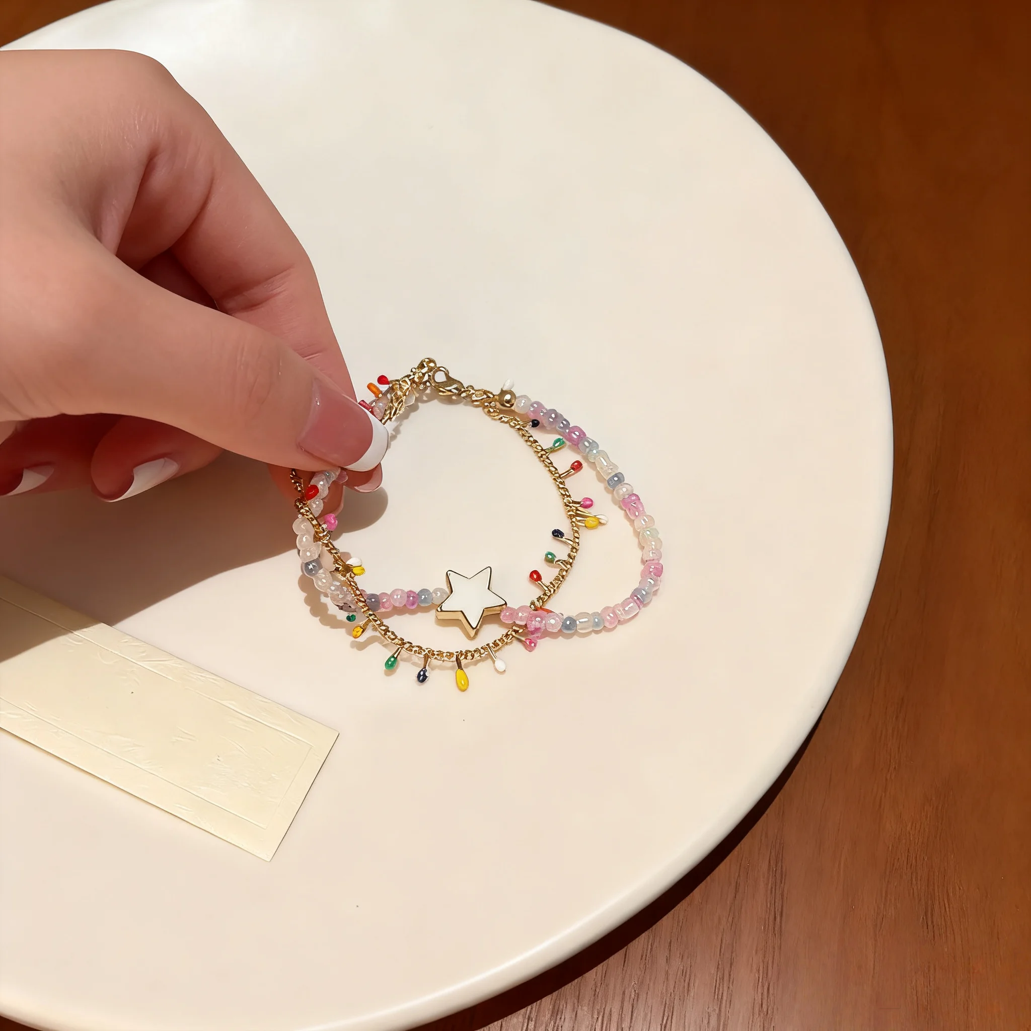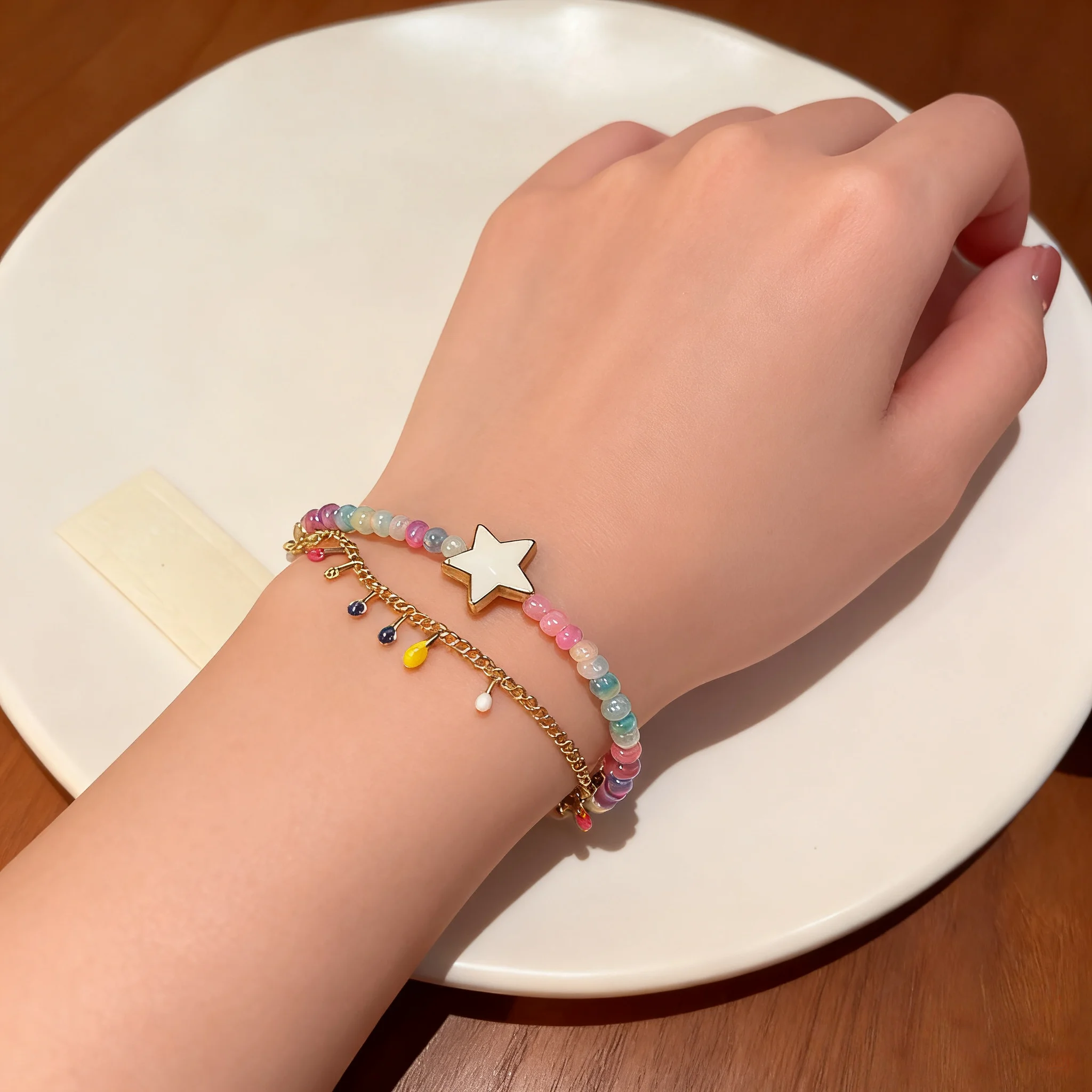 Bohemian Layered Beaded Bracelet Set with Star Charm Colorful Crystal Beads Gold Tone Chain Trendy Jewelry for Women