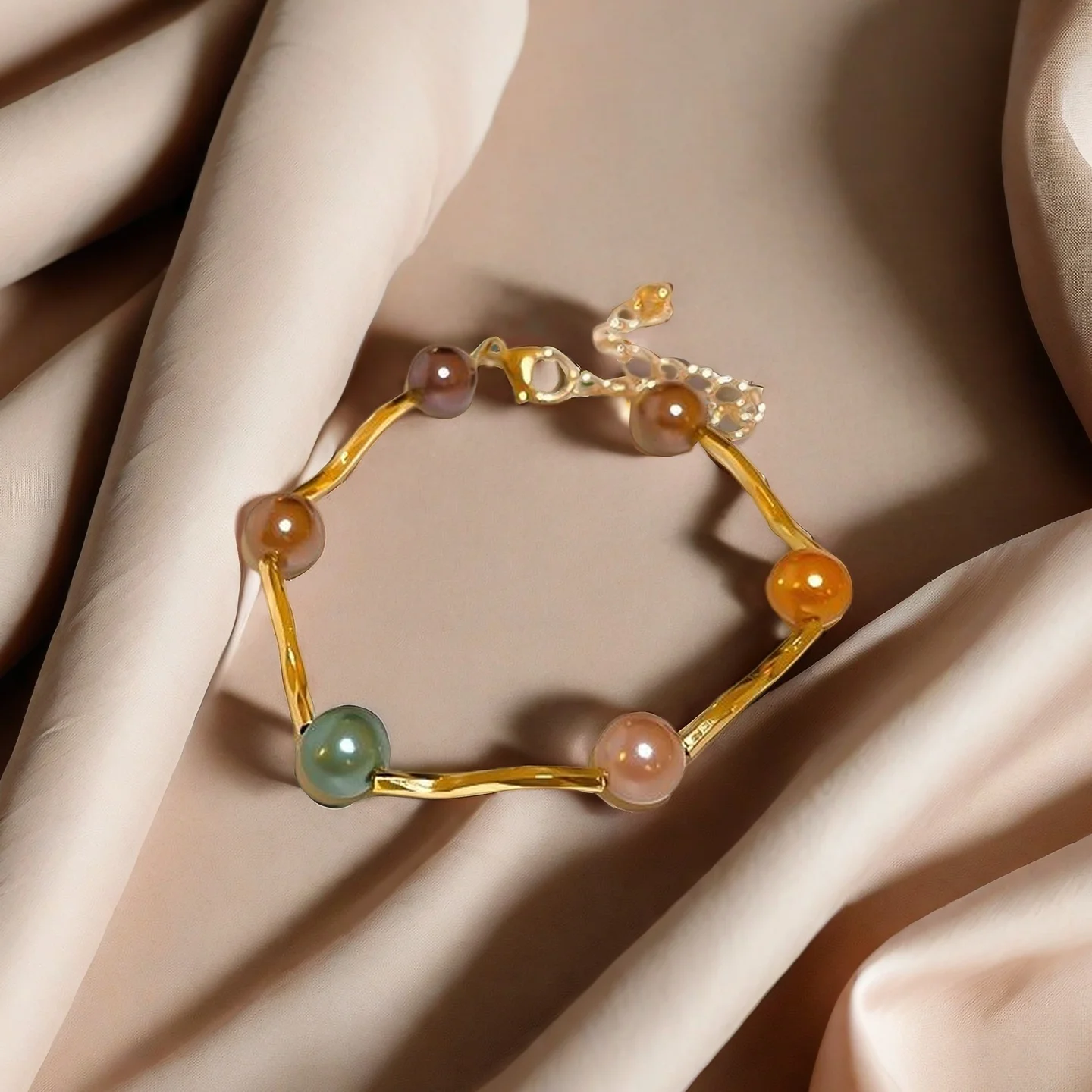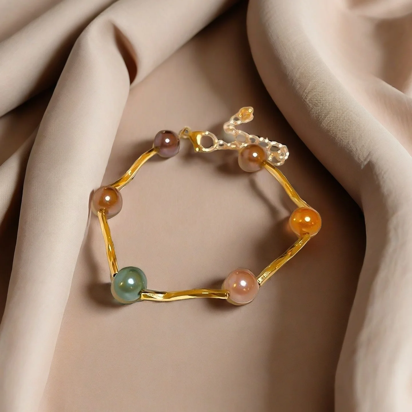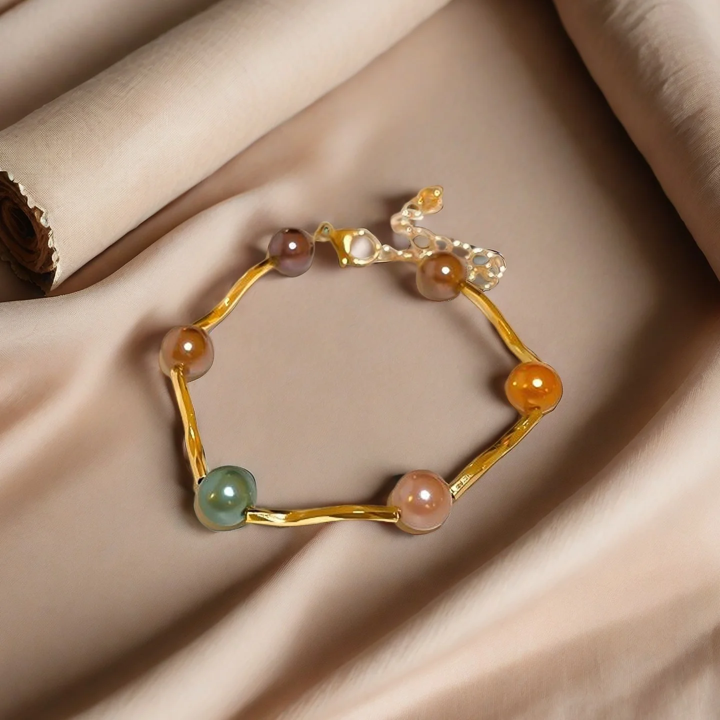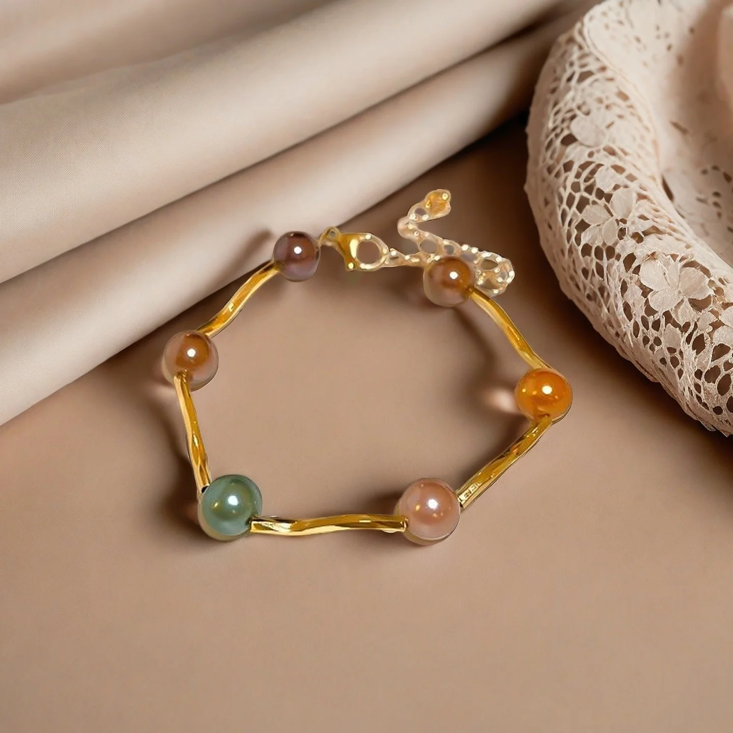 Colorful Pearl Bracelet with Gold Plated Links Adjustable Chain Elegant Handmade Jewelry for Women Ideal for Party Daily Wear