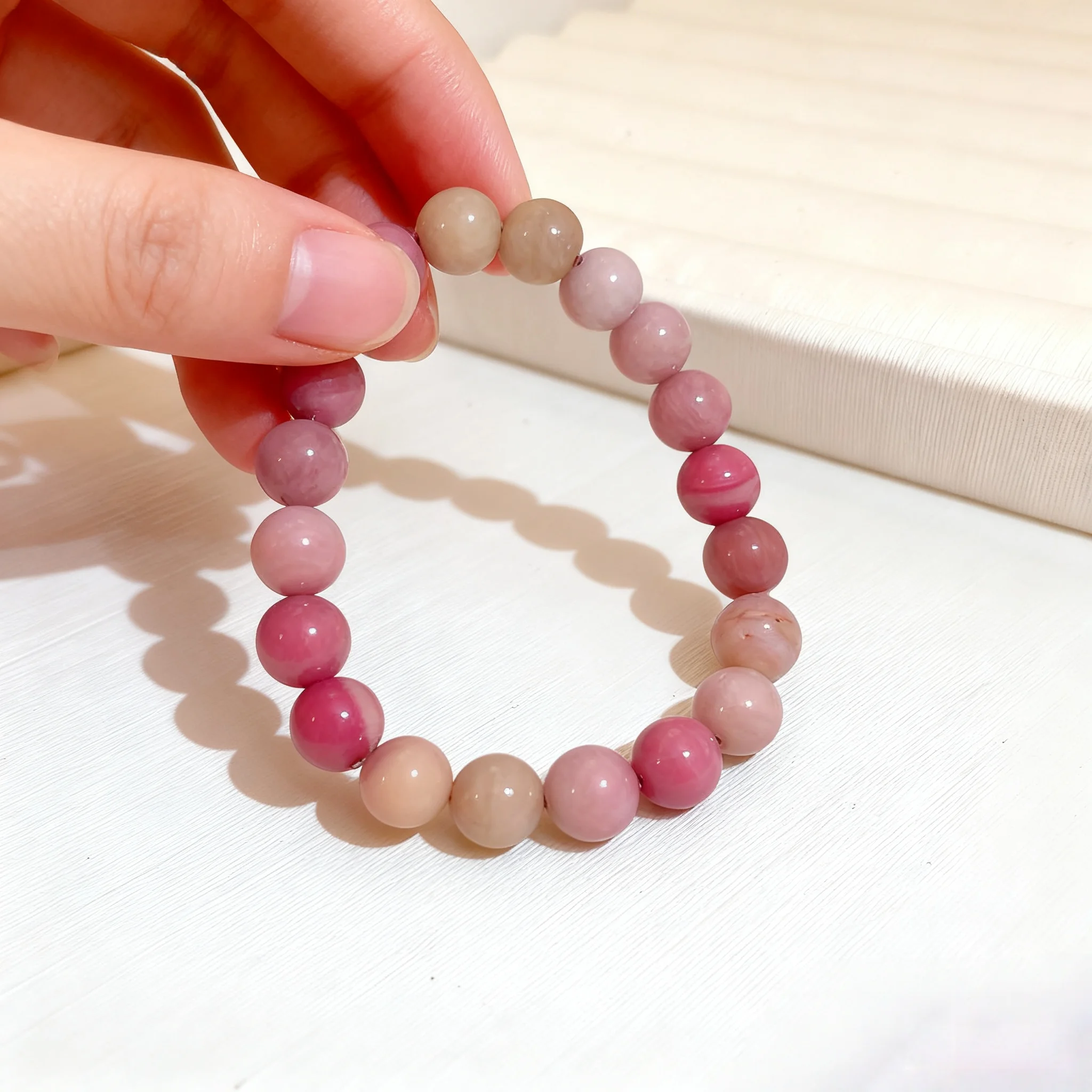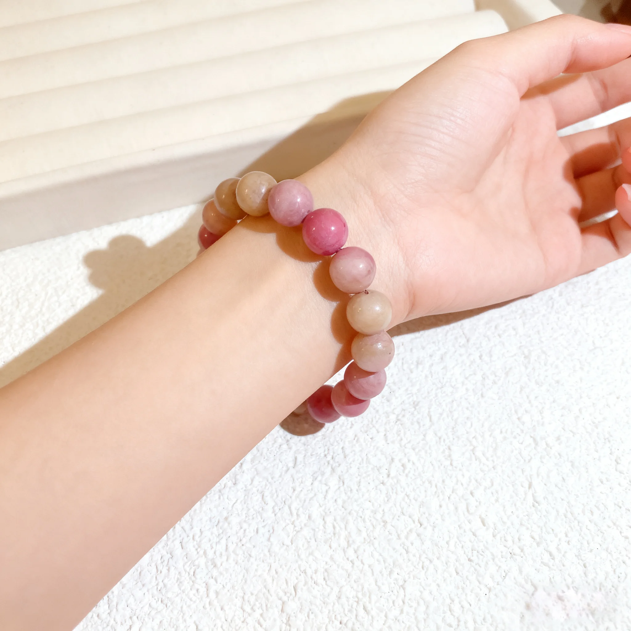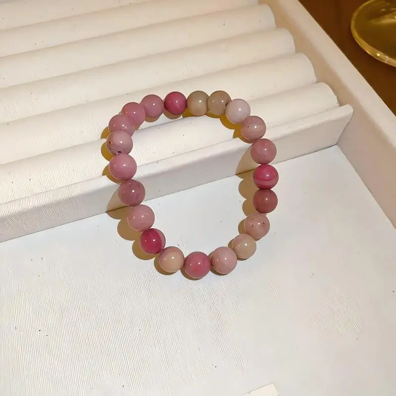 Natural Rhodochrosite Beaded Bracelet for Women Elegant Pink Gemstone Jewelry with Unique Patterns Ideal for Daily Wear Gifts