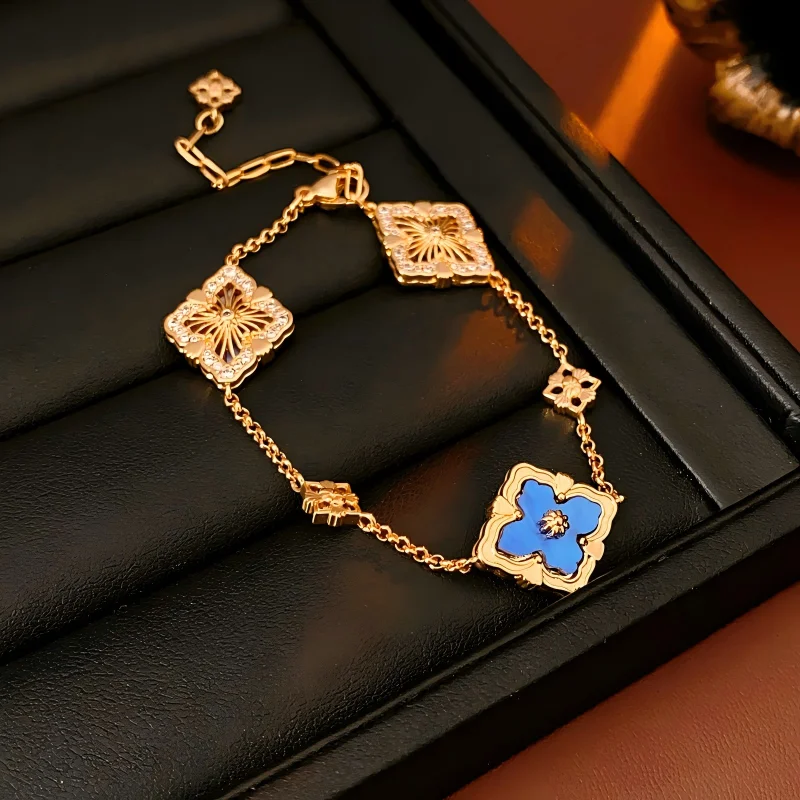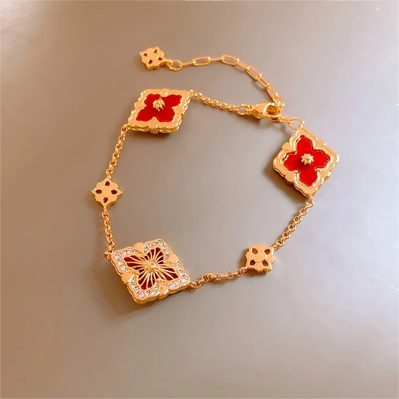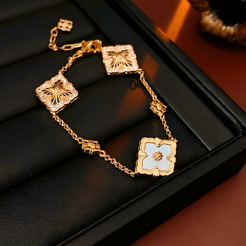 4 Four Leaf Clover Bracelets Gold Plated Copper Zircon Mother-of-pearl Resin Bracelet Jewelry Fancy Jewellery for Ladies Women