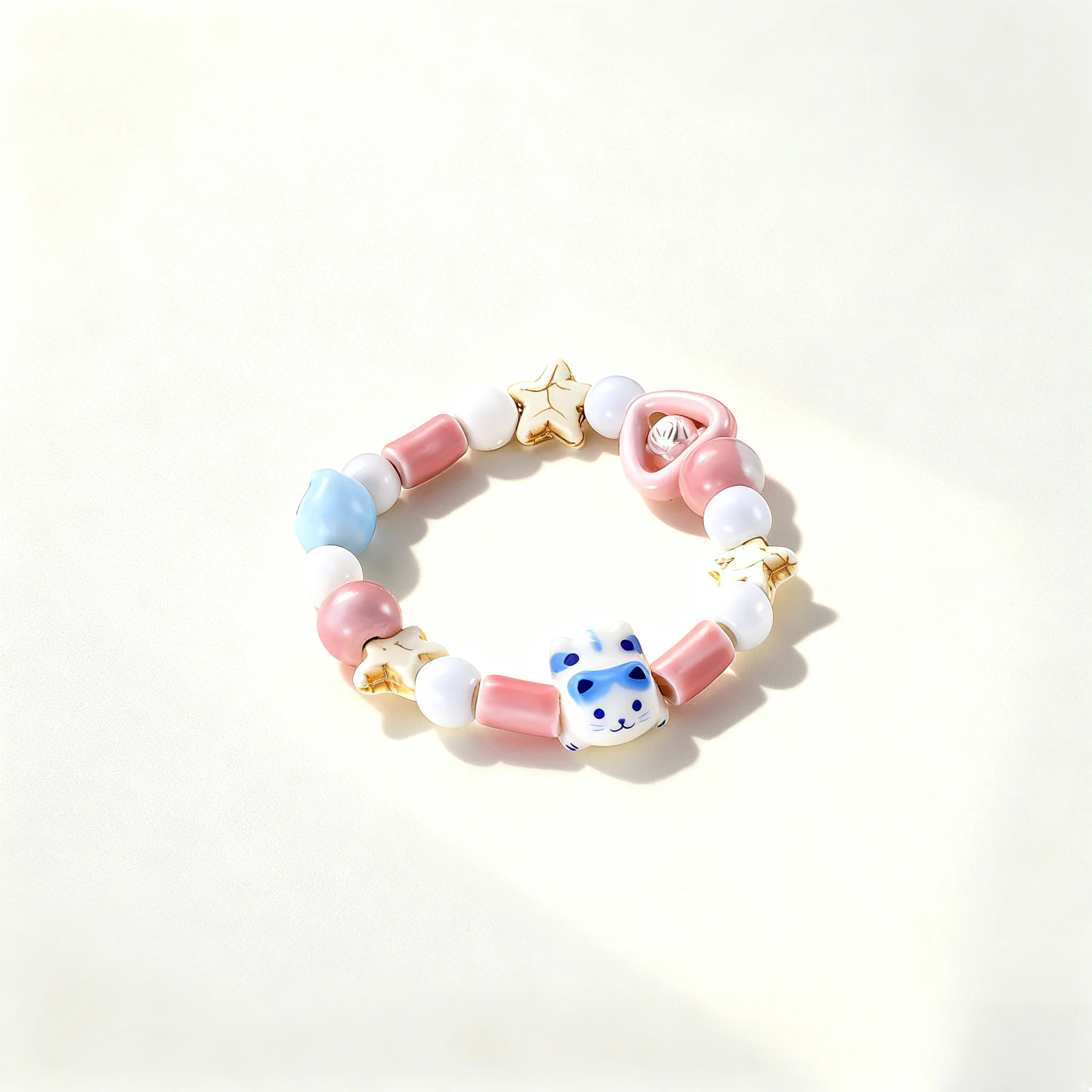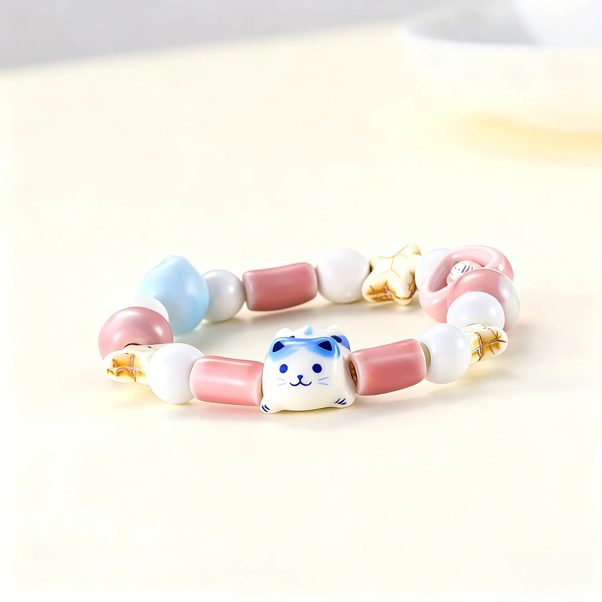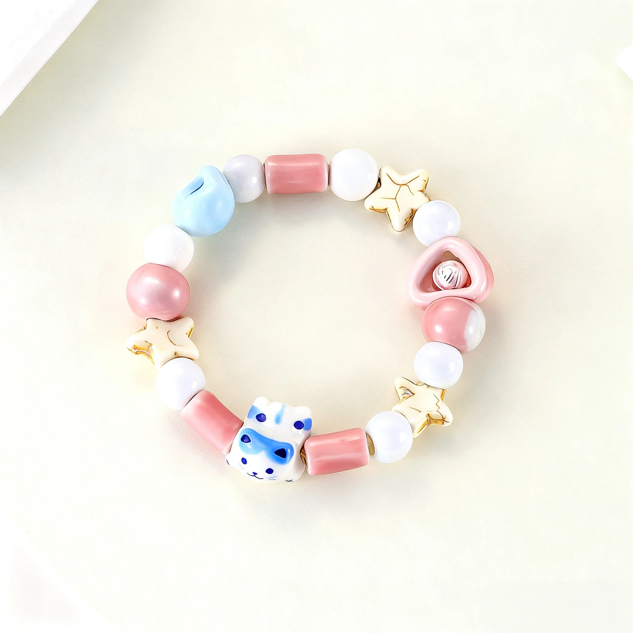Cute Cat Beaded Bracelet Colorful Cartoon Star Design Handmade Fashion Jewelry Girls Unique Kawaii Style Accessory Daily