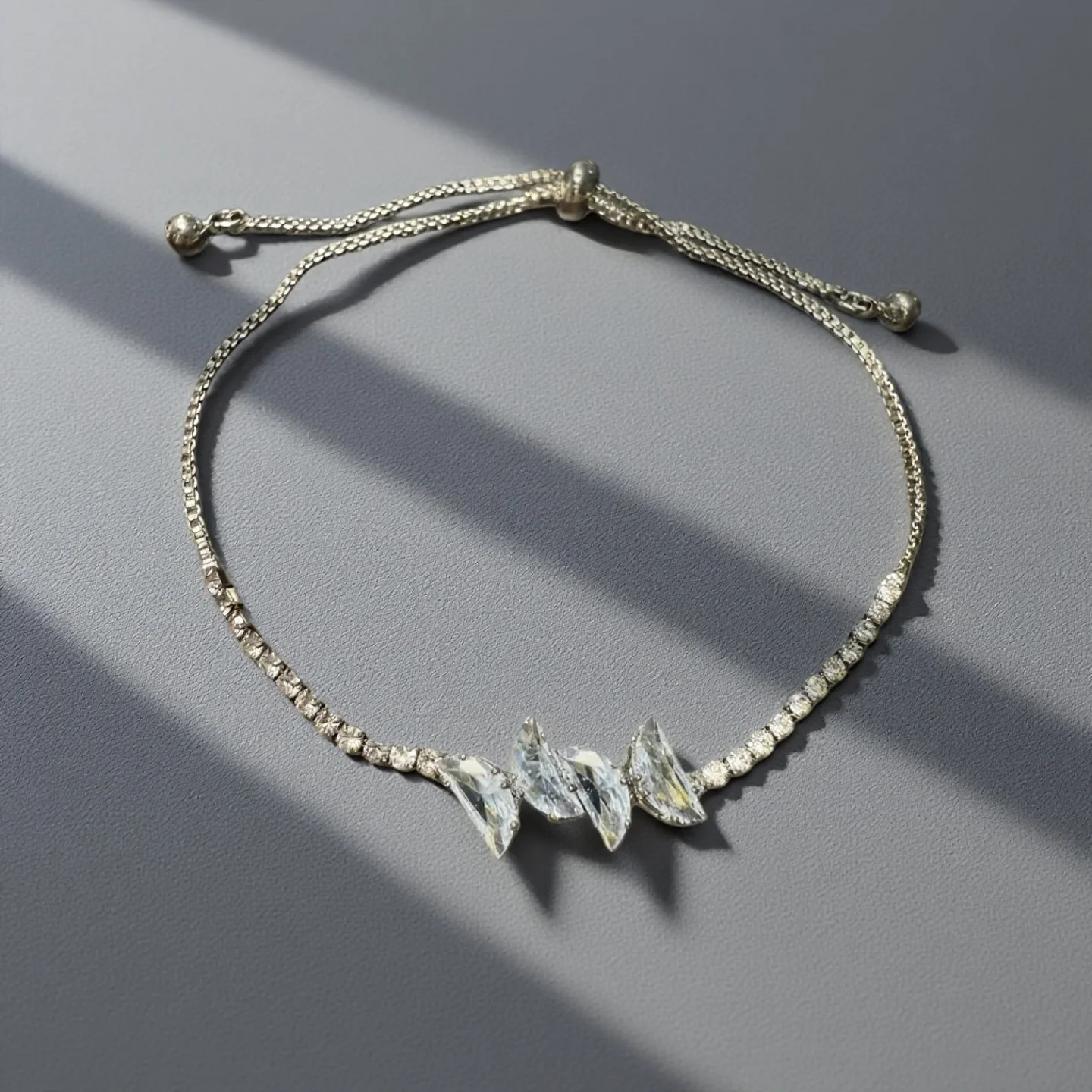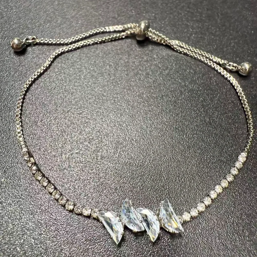 Luxury Zircon Bracelet for Women Silver Plated Adjustable Chain Bracelet with Geometric Crystal Design Elegant Party Jewelry