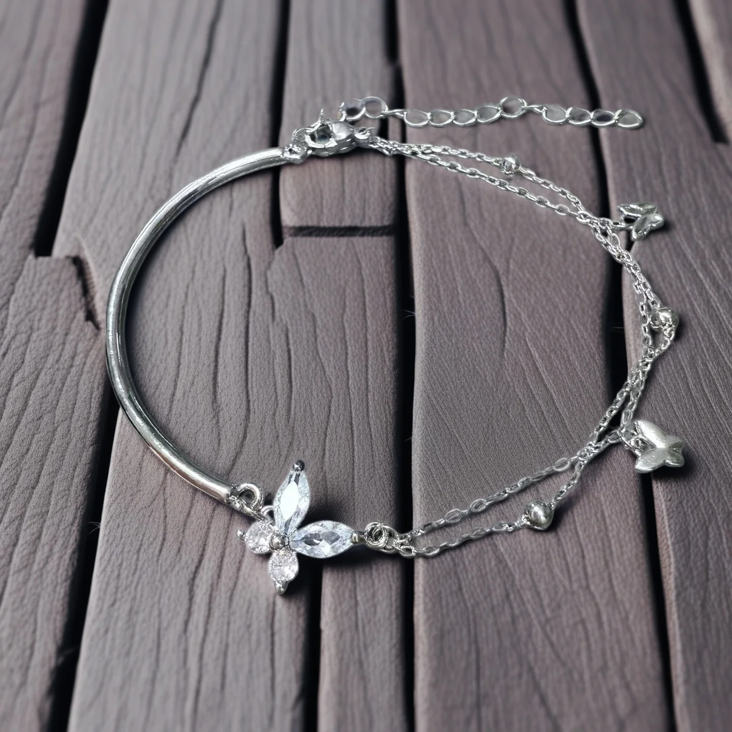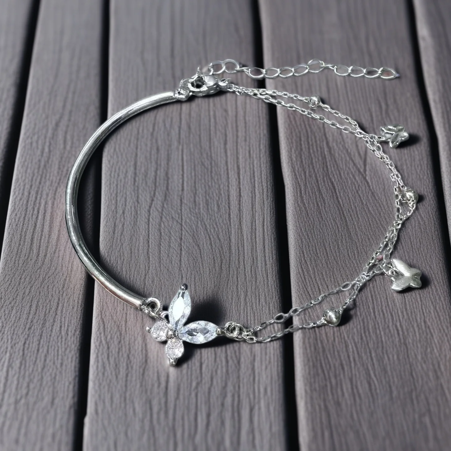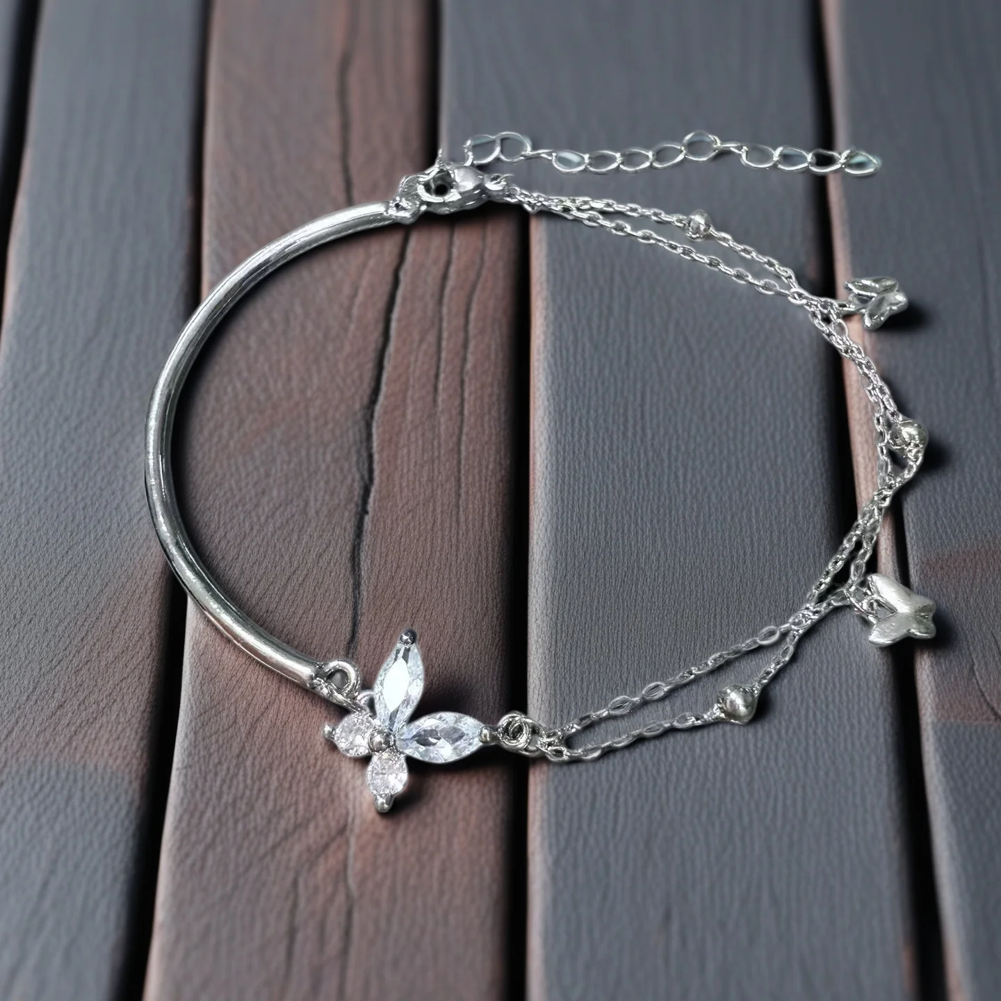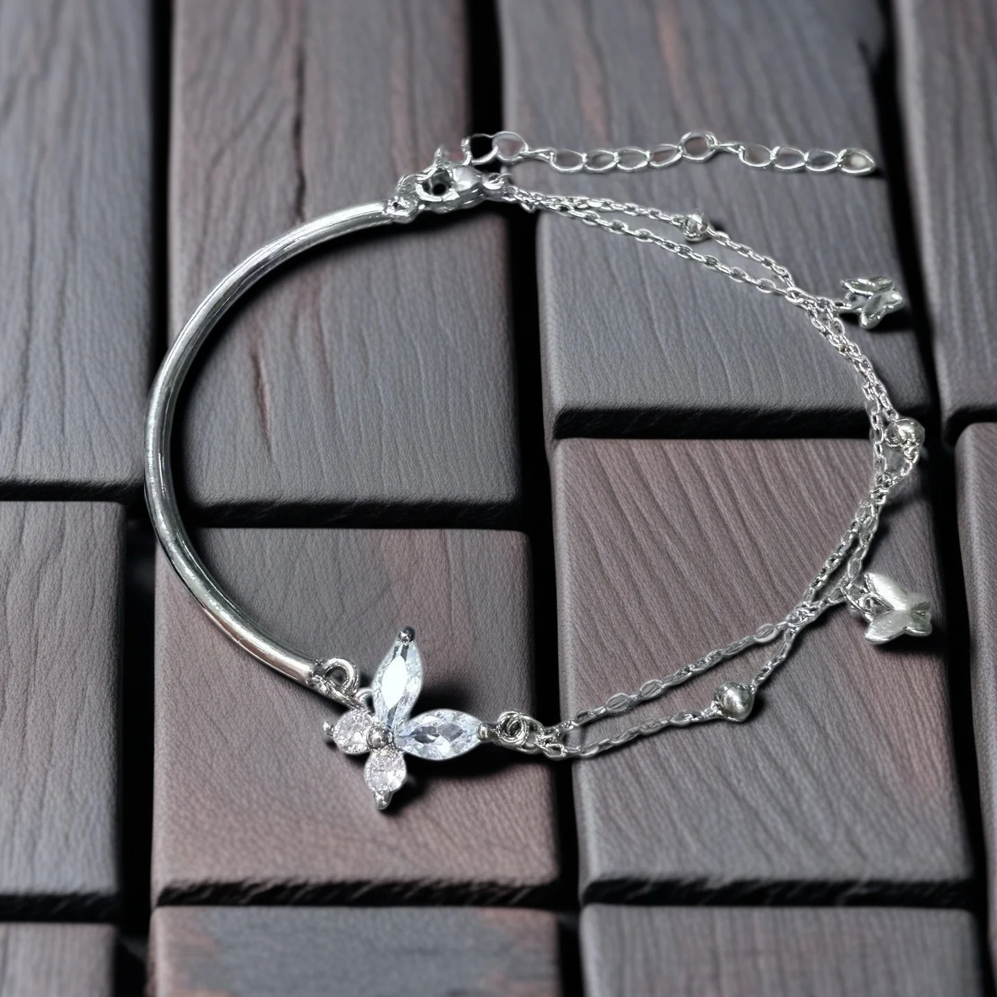 Elegant Silver Plated Butterfly Bracelet with Zircon Accents Double Layer Chain Design Fashionable Jewelry for Women Ideal Daily