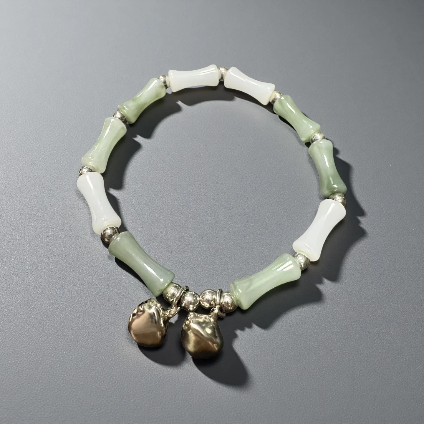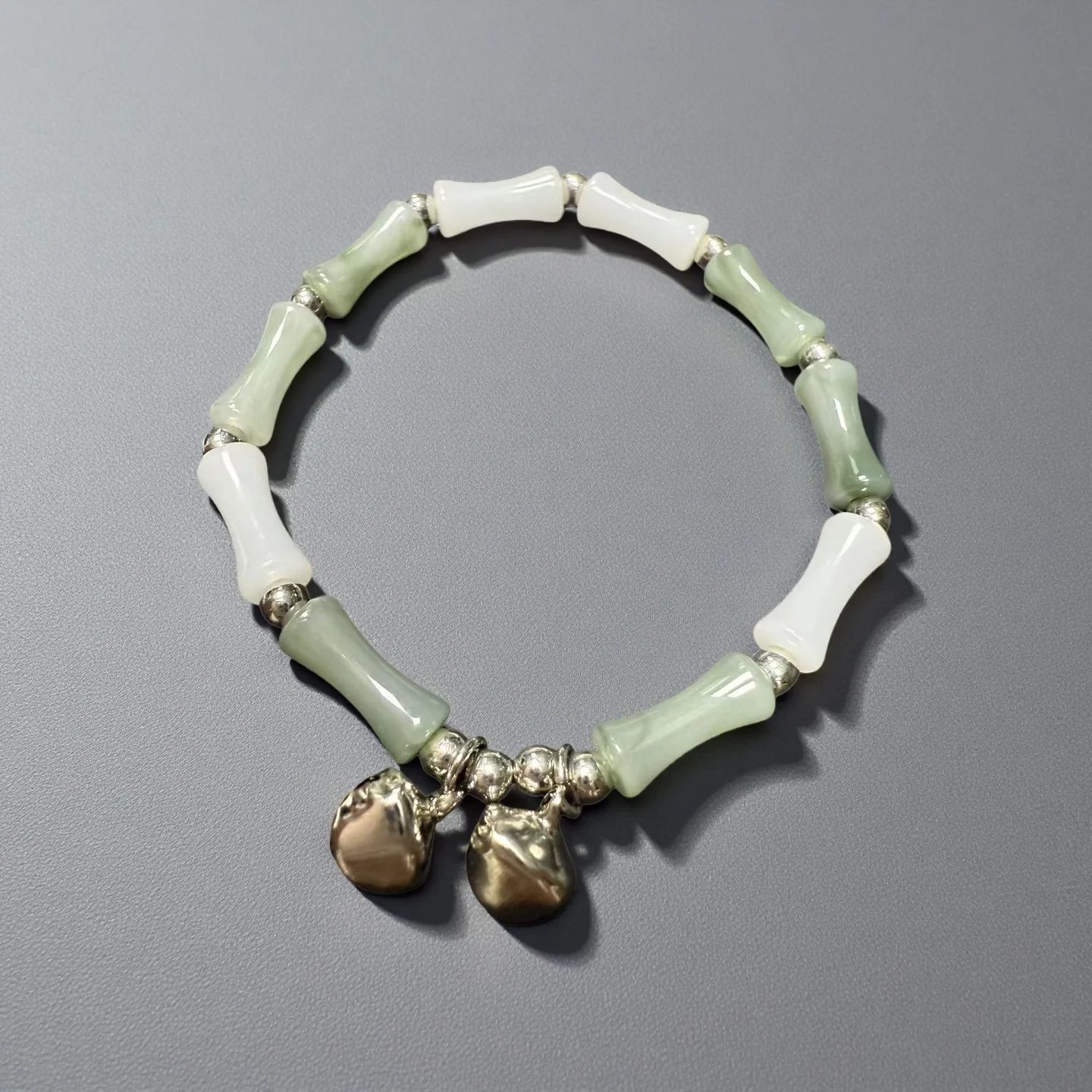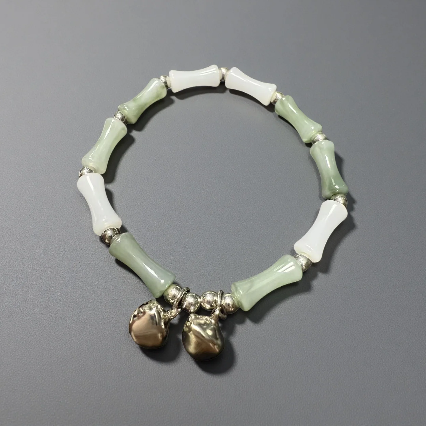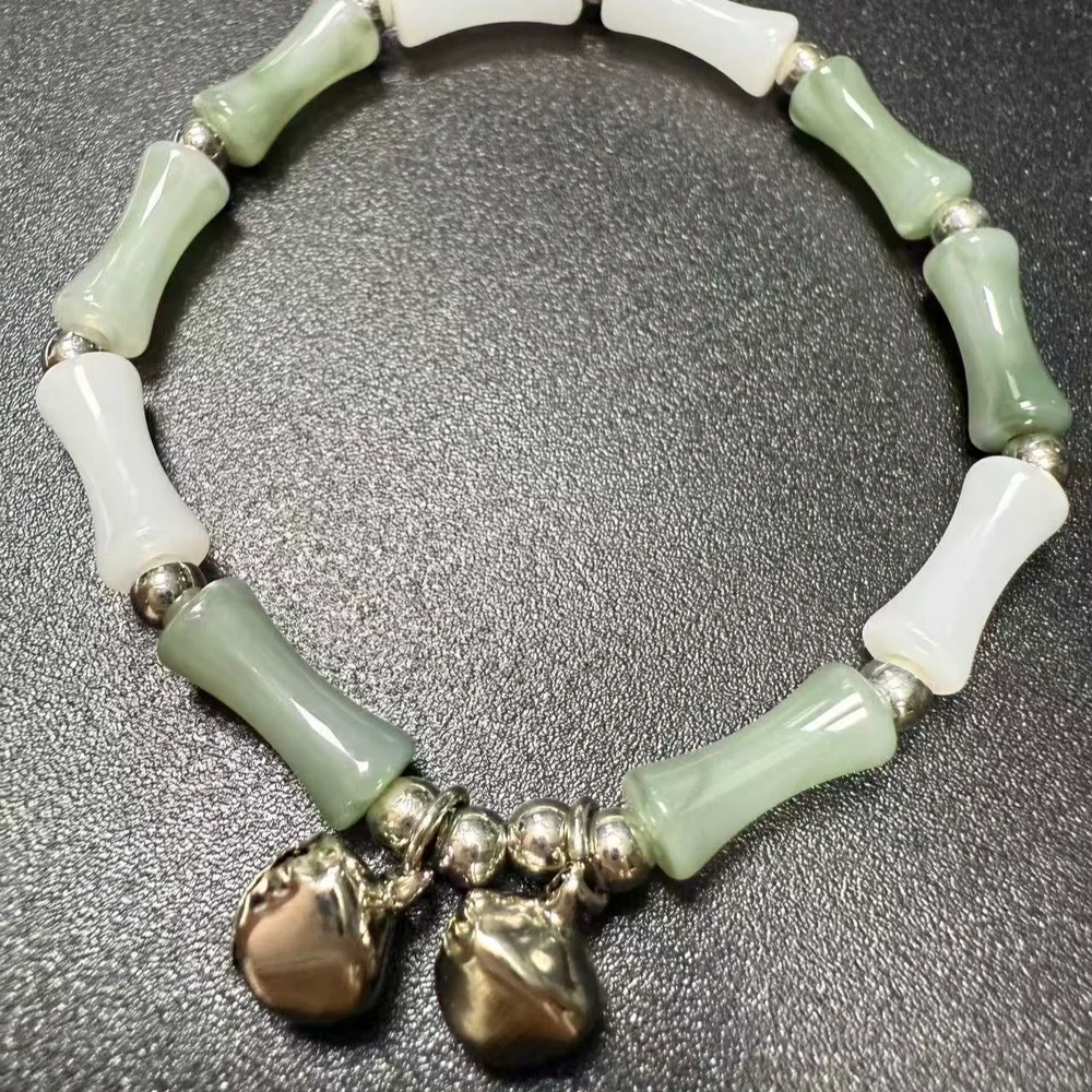 Elegant Bracelet with Silver Bell Charms Natural Green White Beads Traditional Chinese Style Jewelry for Women