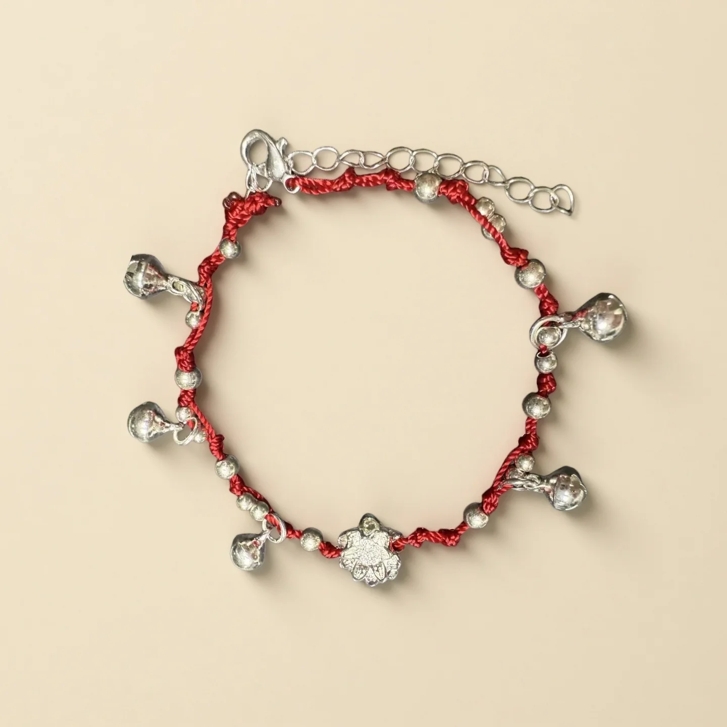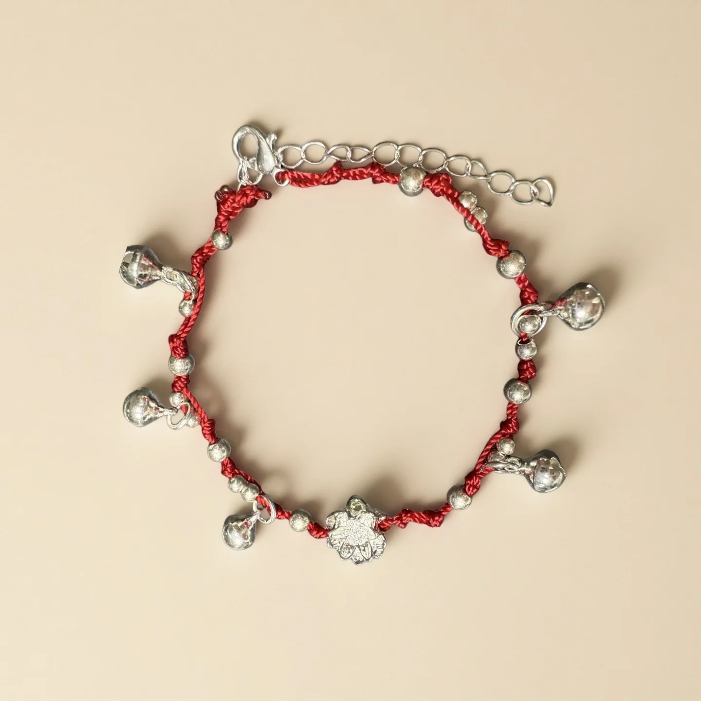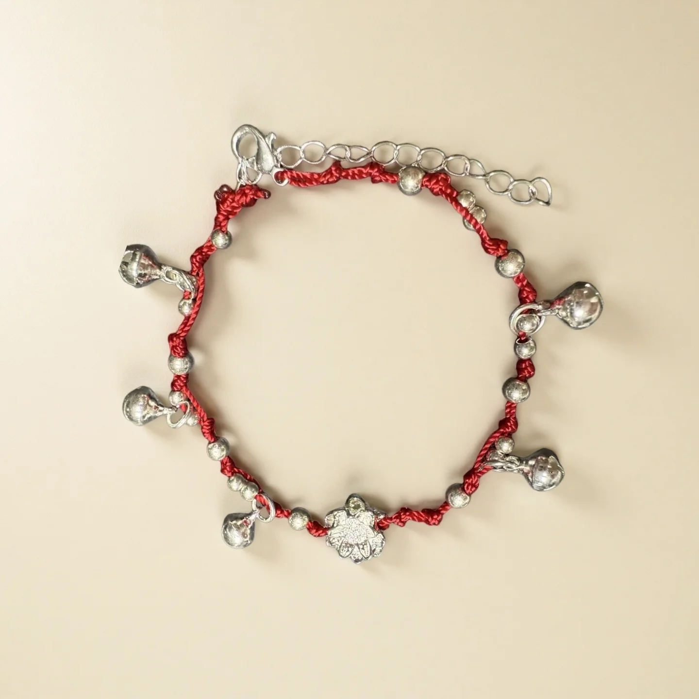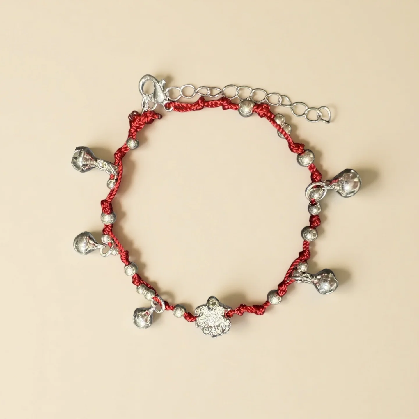 Traditional Red String Bracelet with Silver Bells Floral Charm Lucky Chinese Style Handmade Braided Bracelet for Women Unique