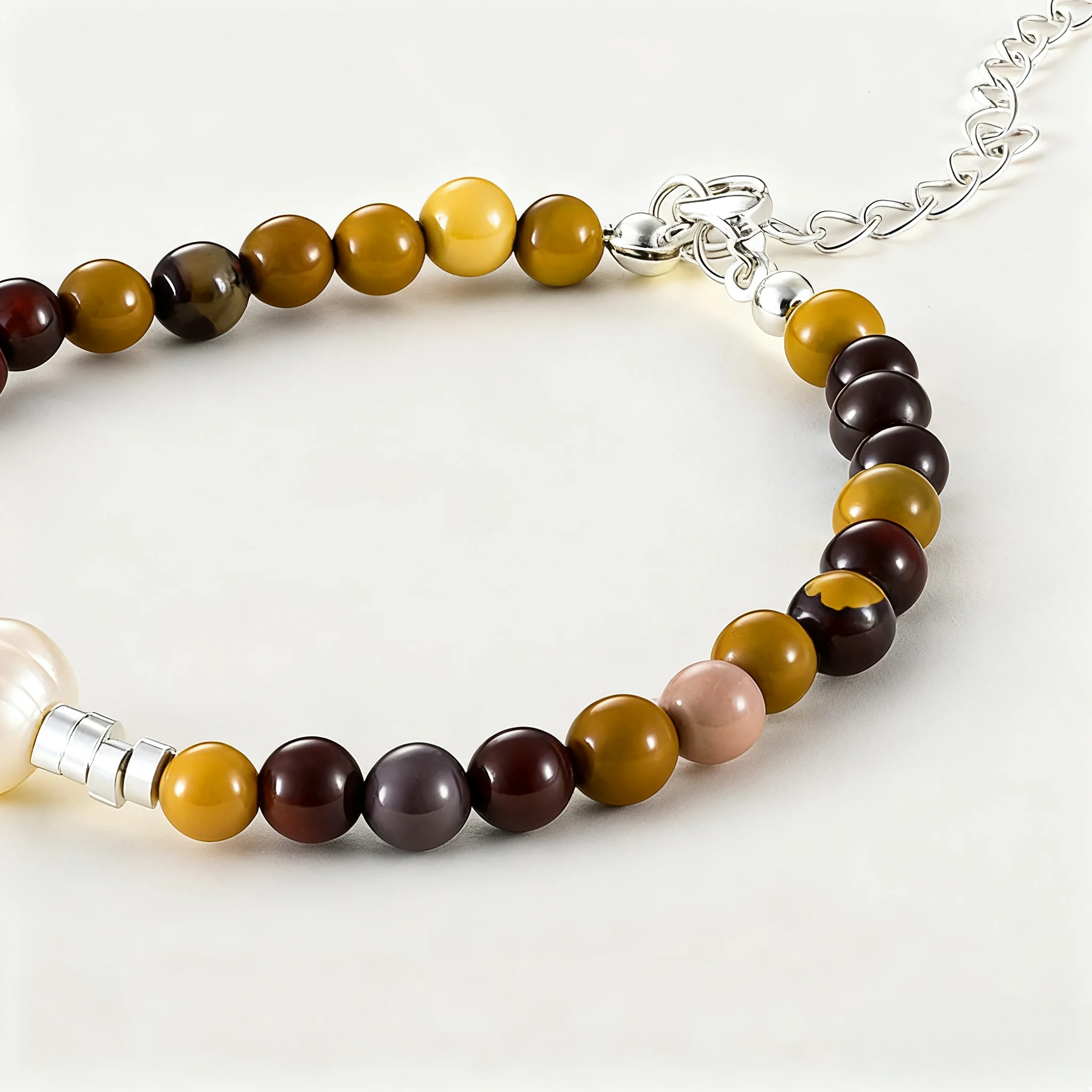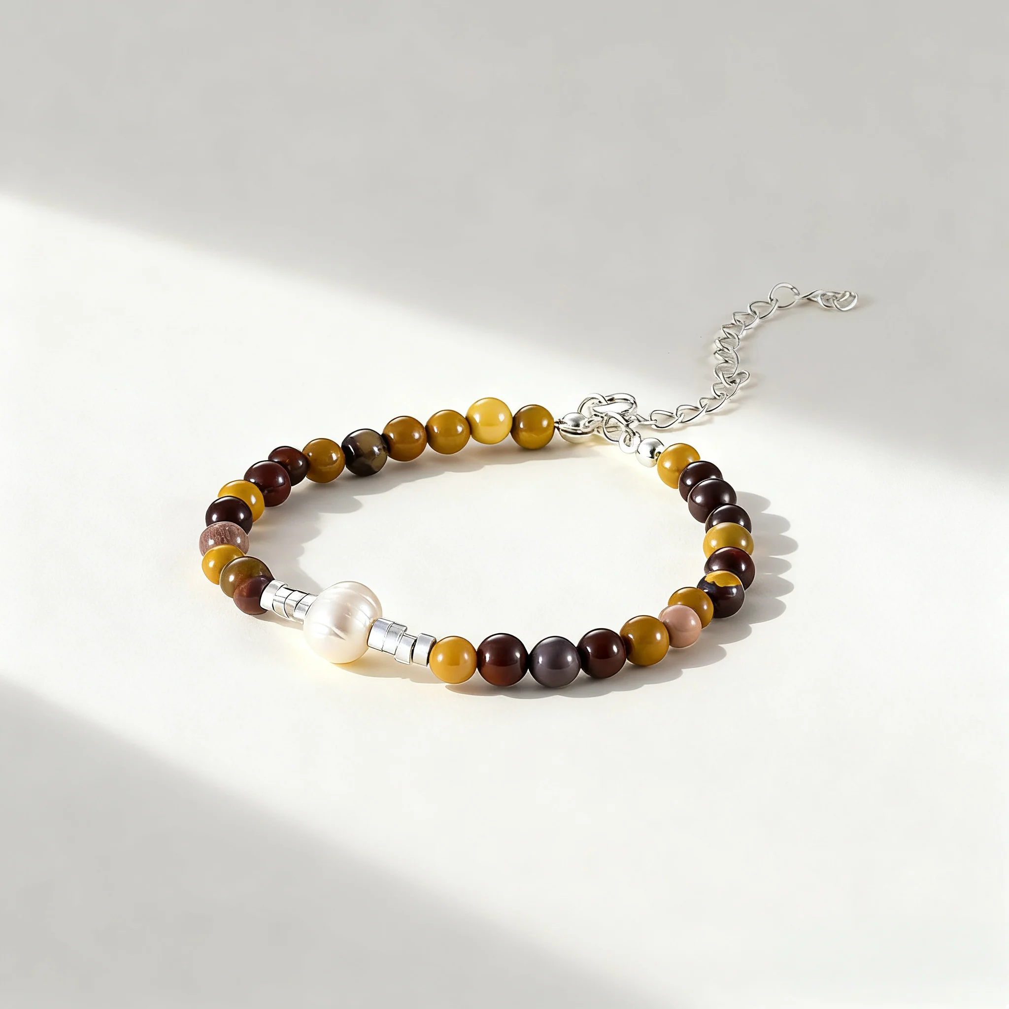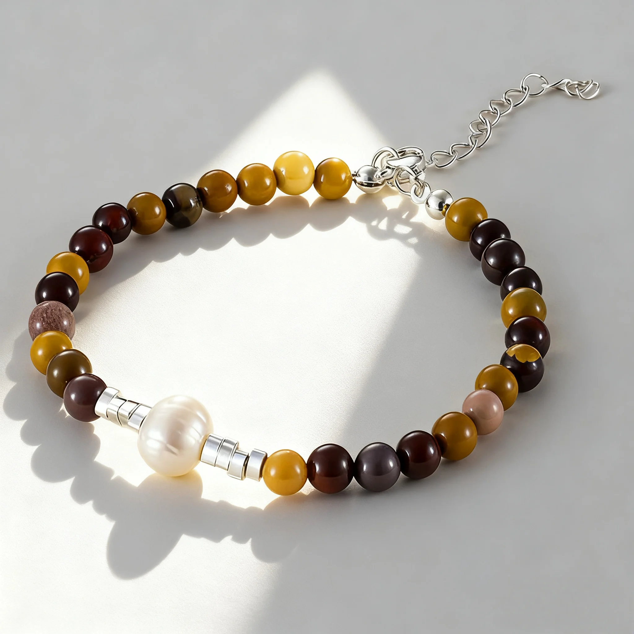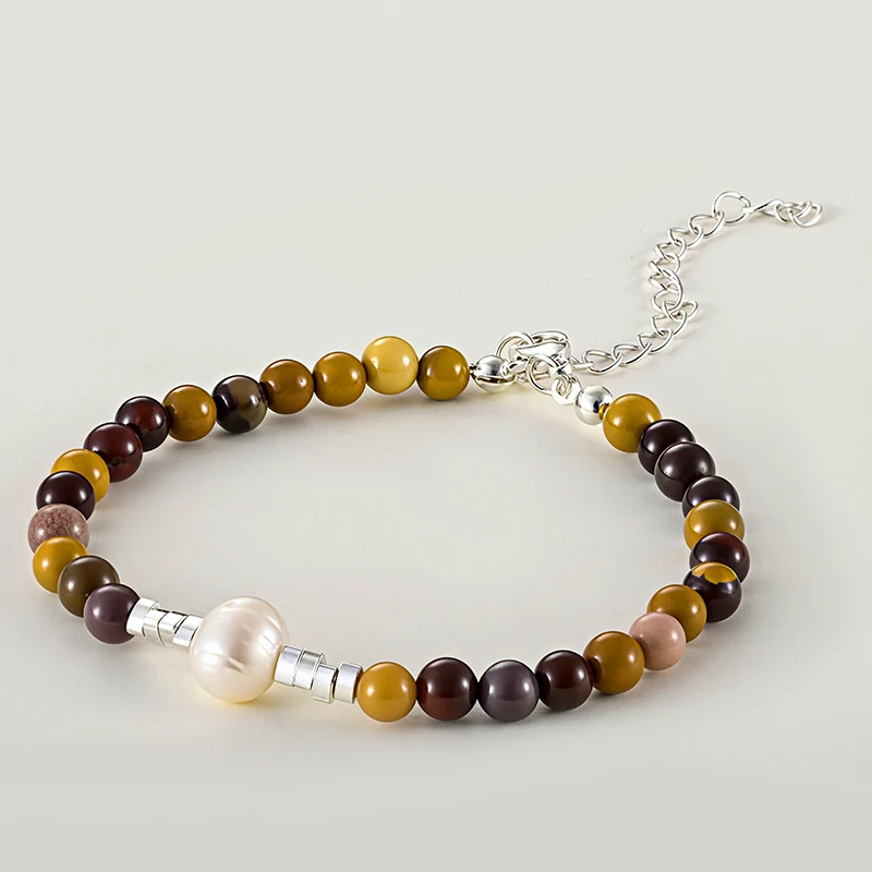 Natural Baroque Pearl Bracelet with Silver Accents Handmade Boho Jewelry for Women Unique Earth-Tone Beaded Design Gift