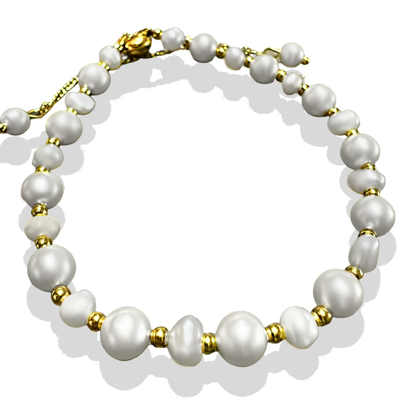New Waterproof Jewelry Natural Fresh Water Pearl Bracelet Gold Bead Bracelet Freshwater Pearl Stainless Steel 18k Plated Jewelry
