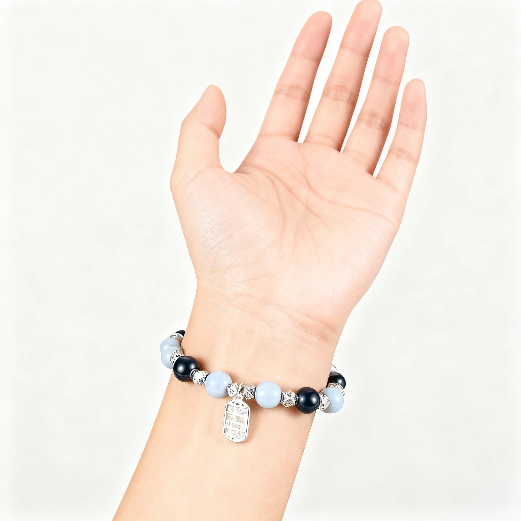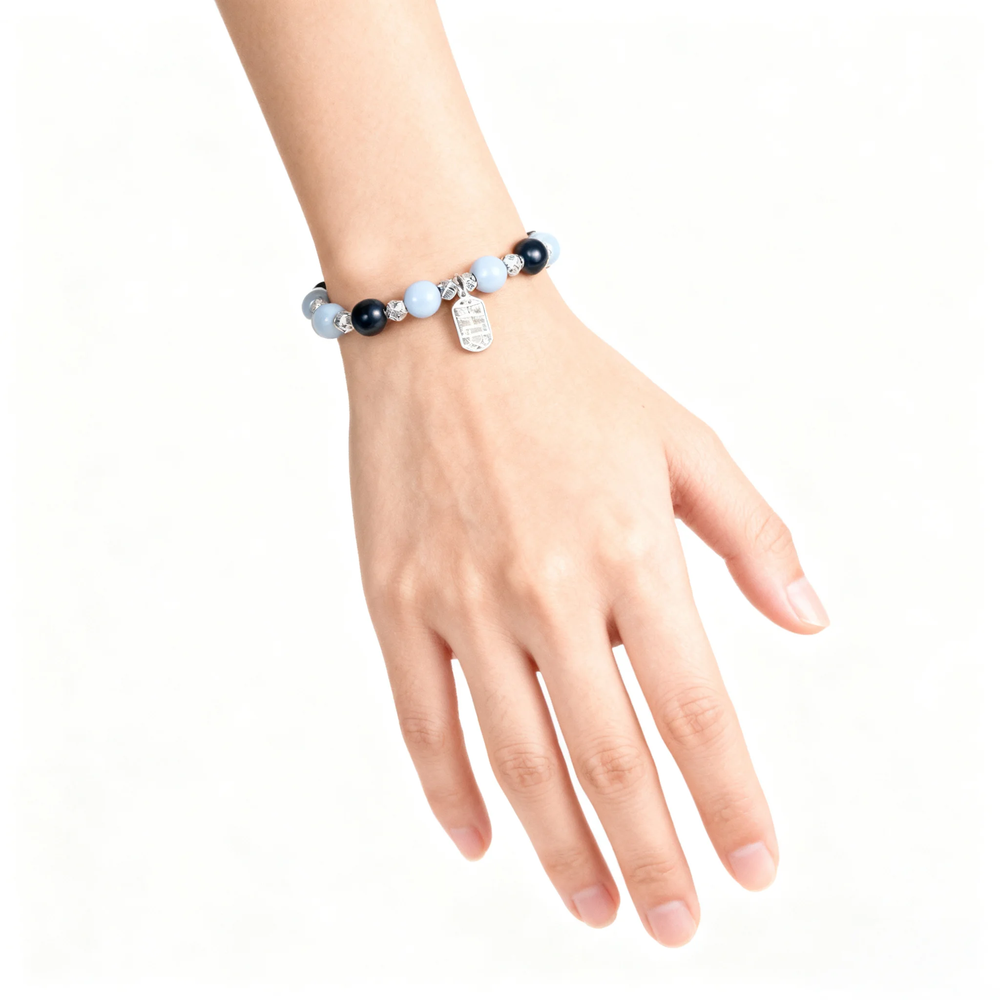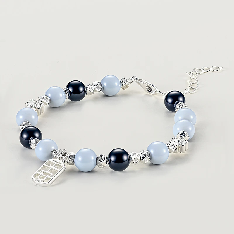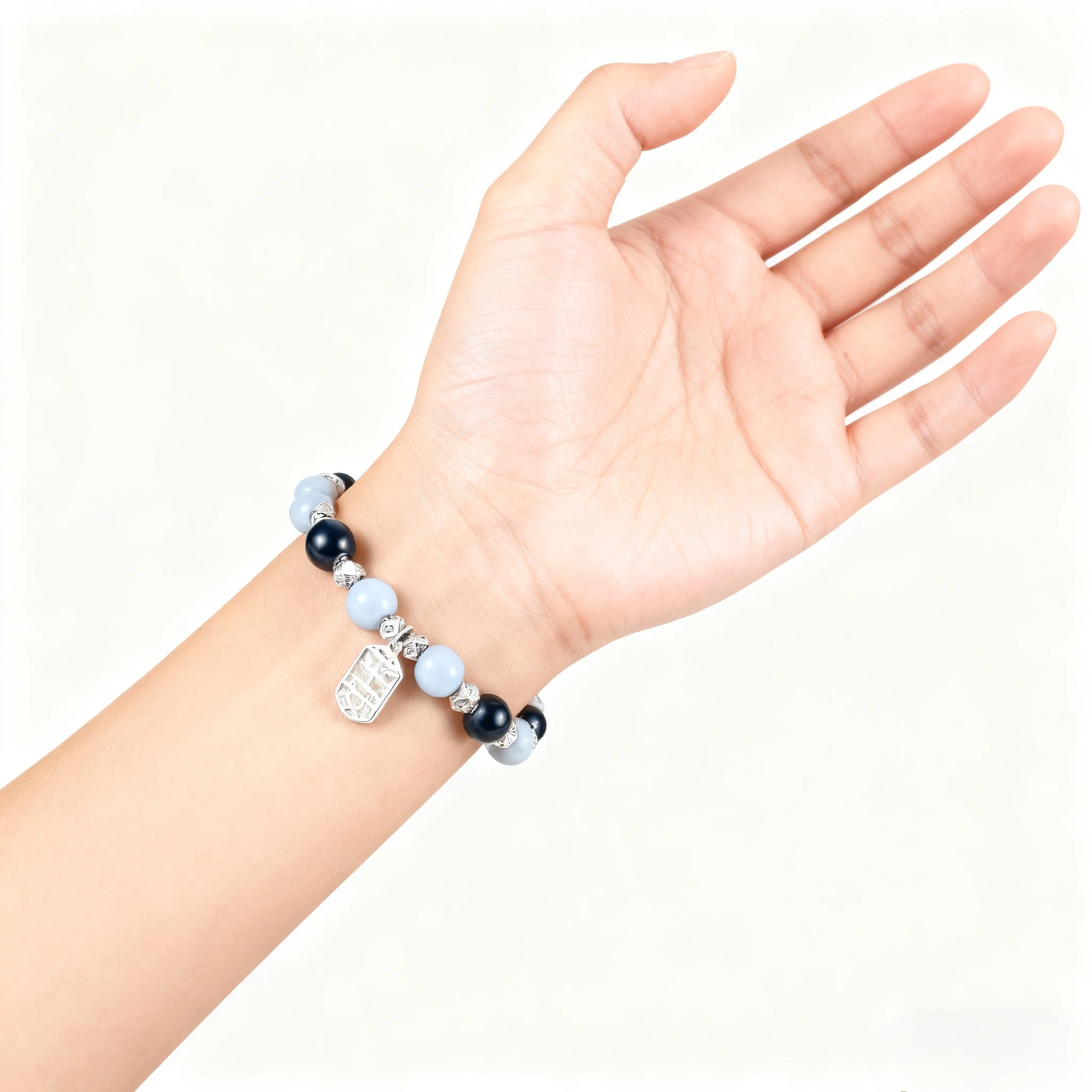Fashion Beaded Bracelet Women Black Light Blue Beads Silver Plated Charms Zircon Details Unique Geometric Pendant Trendy Jewelry