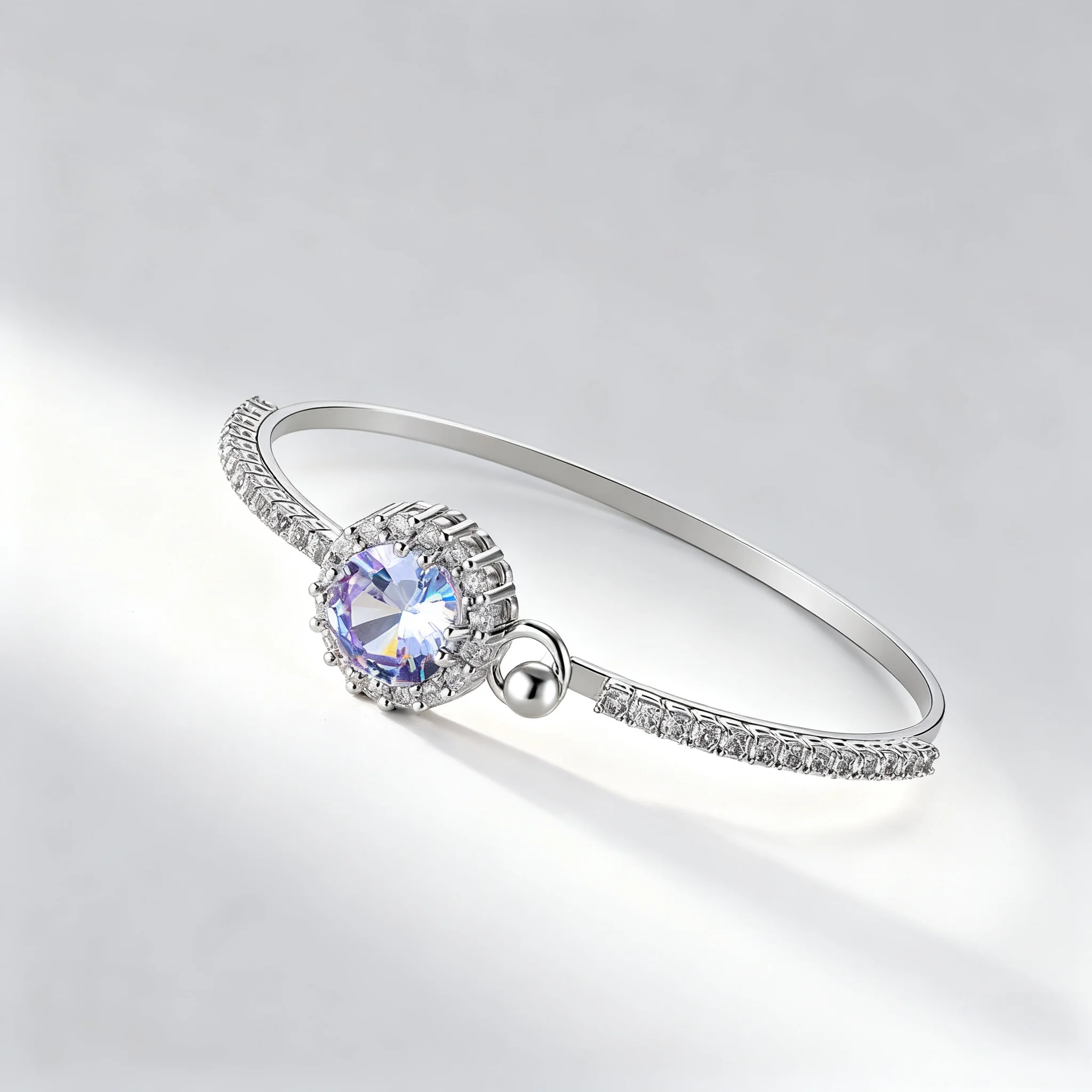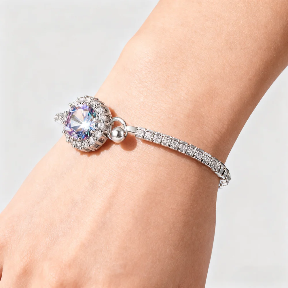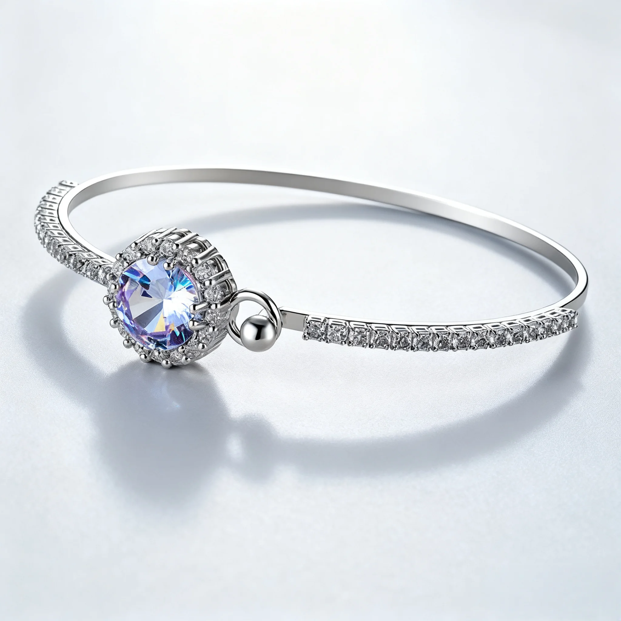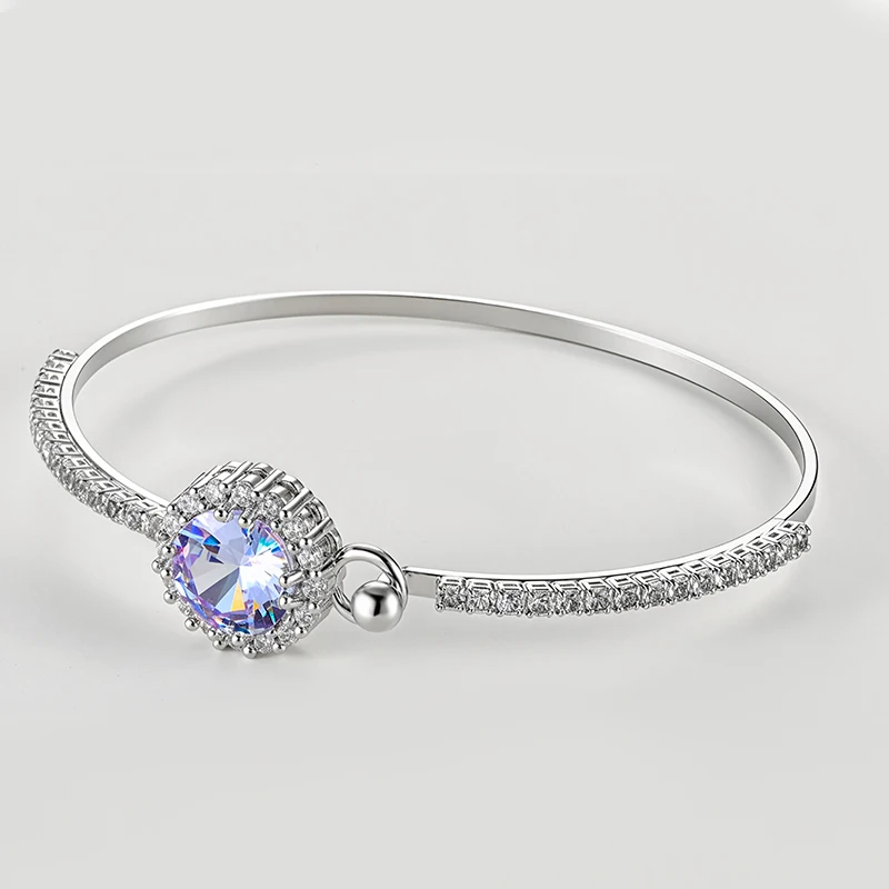 Luxury Cubic Zirconia Bangle for Women Silver Plated with Large Shiny CZ Stone Paved Crystal Elegant Adjustable Bracelet Wedding