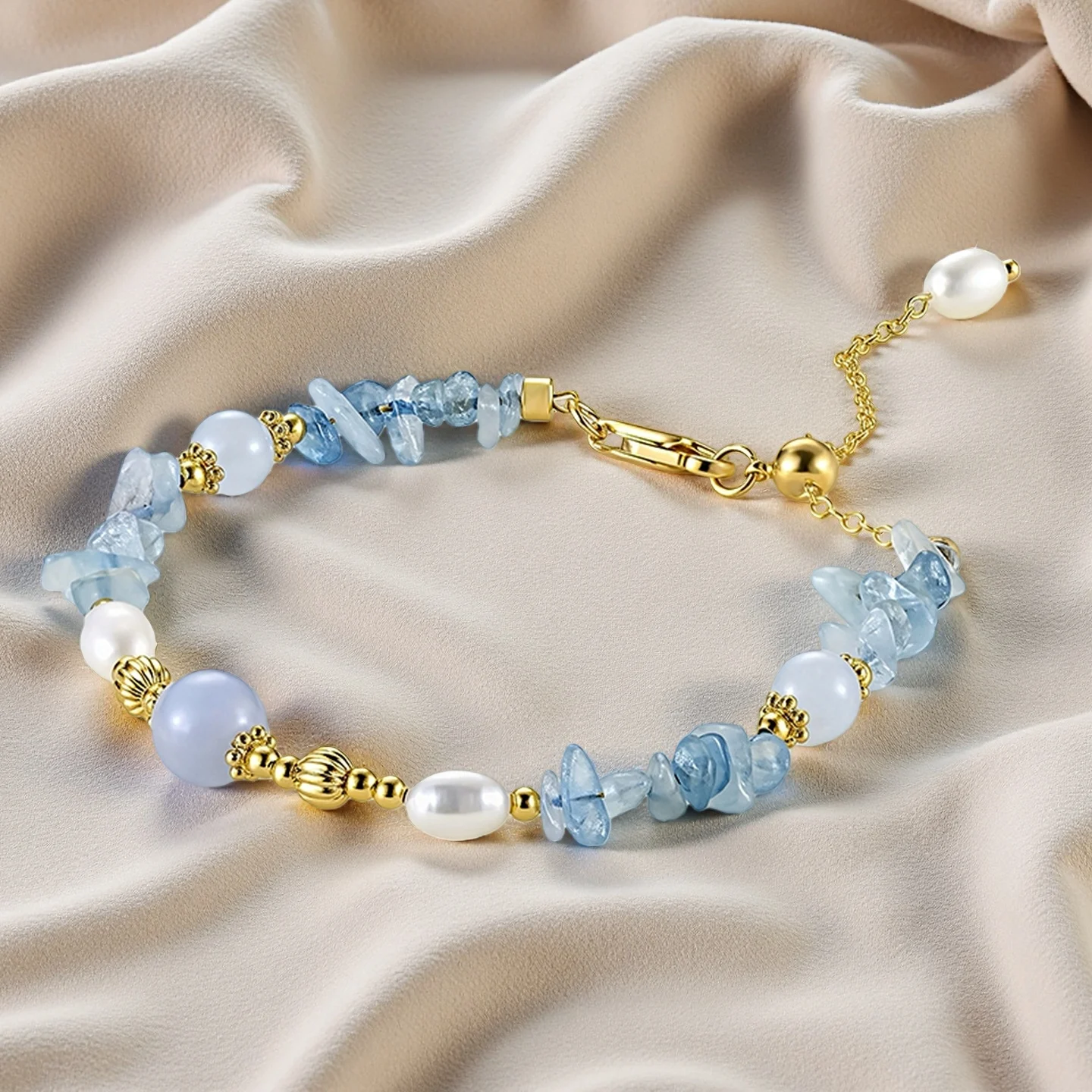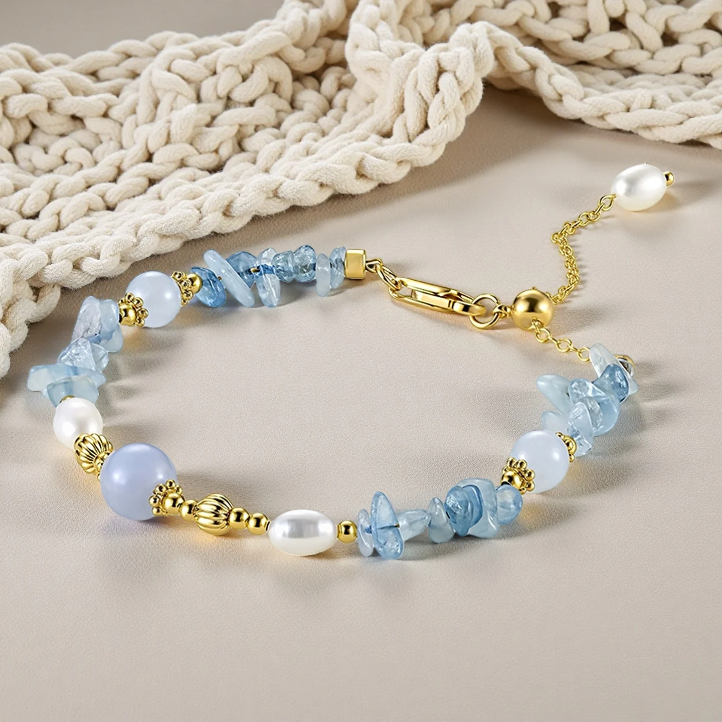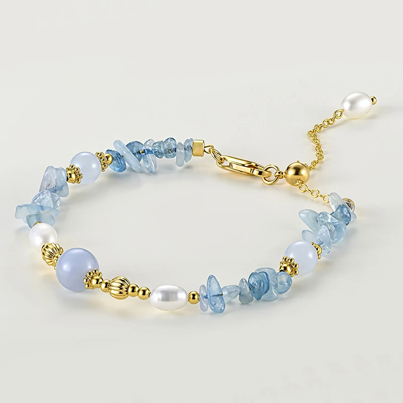 Muxcor Wholesale Factory Beaded Charm Copper Blue Stone Freshwater Pearl Fashion Chain & Link Bracelet