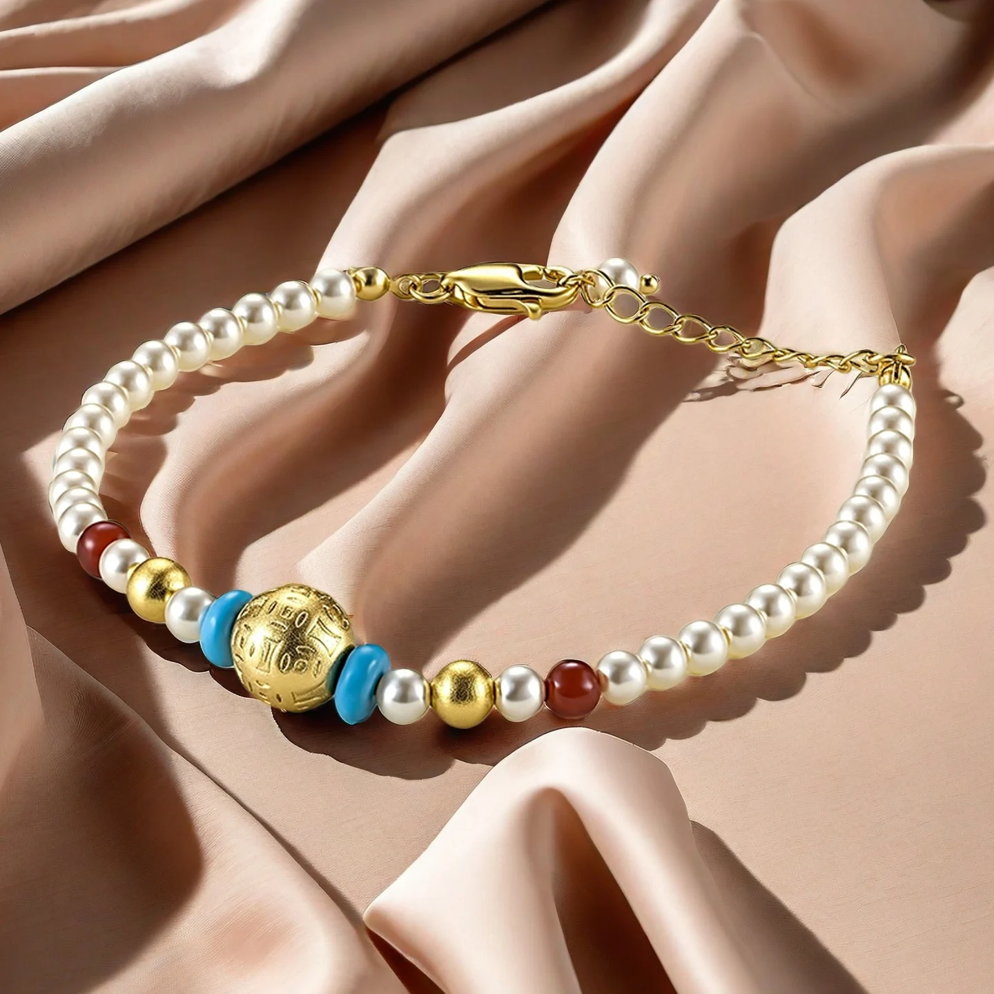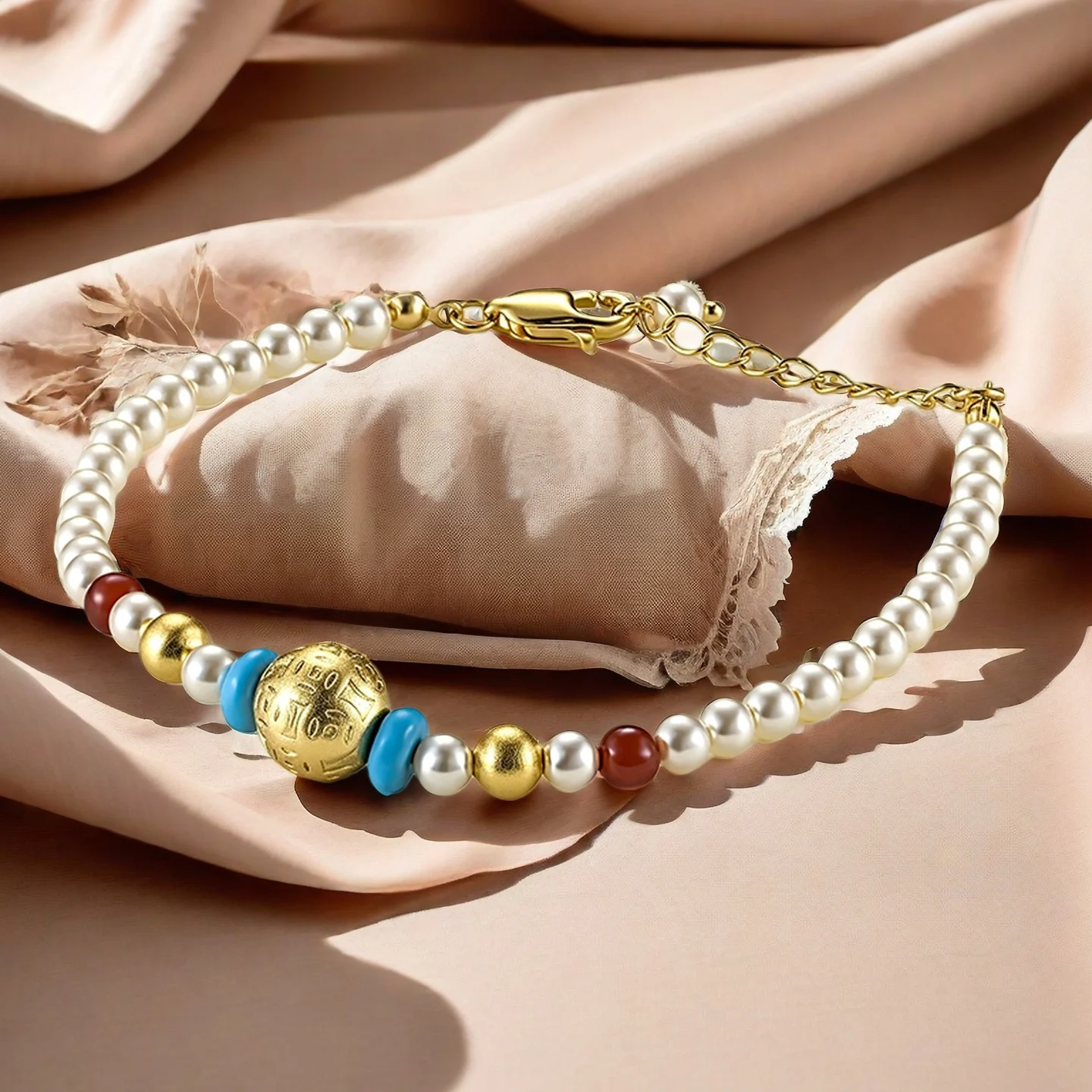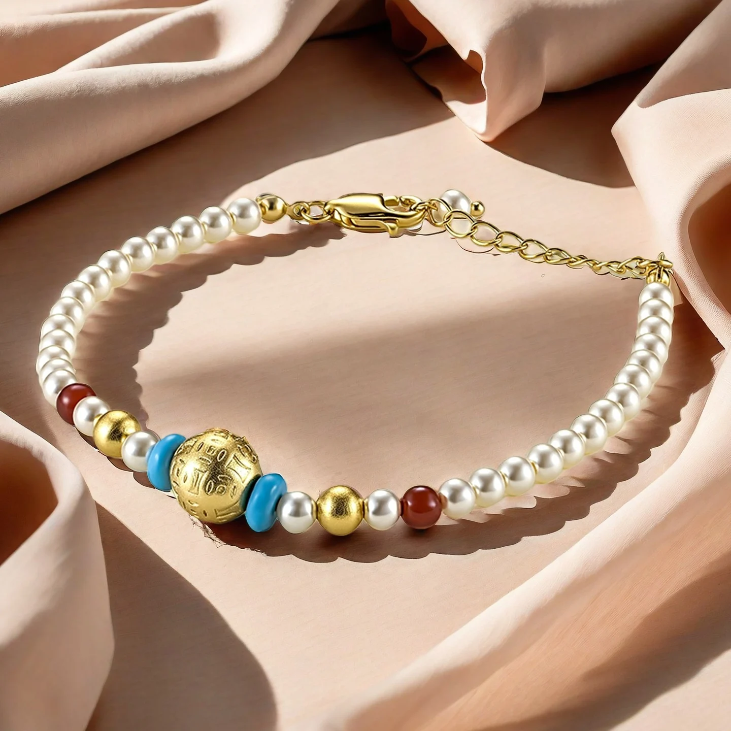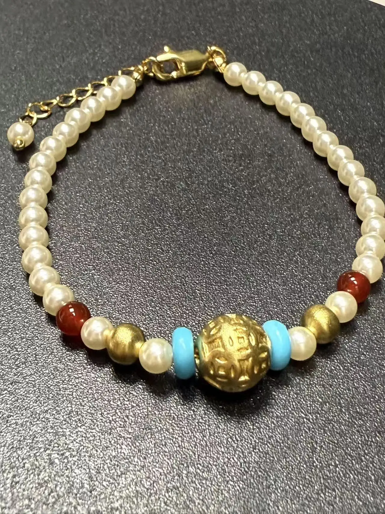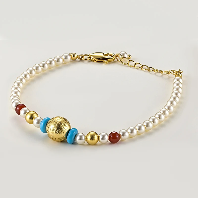 Muxcor High Quality Copper Pearl Resin Fashion Blue White Beaded Bracelet Retro and Modern Chinese Styles Wholesale