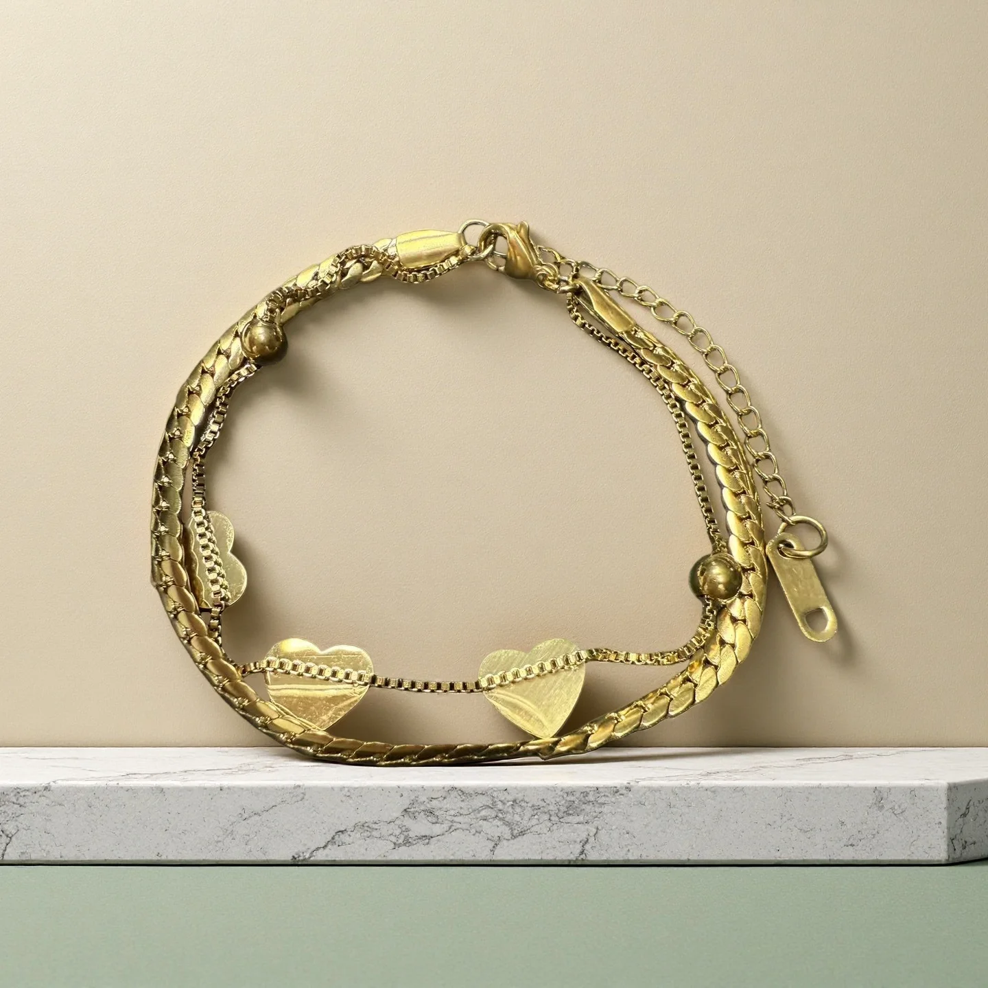 European Market Bestselling Heart Charm Bracelet Adjustable Chain with Multi Sized Hearts Hypoallergenic Jewelry Bulk Order Gift
